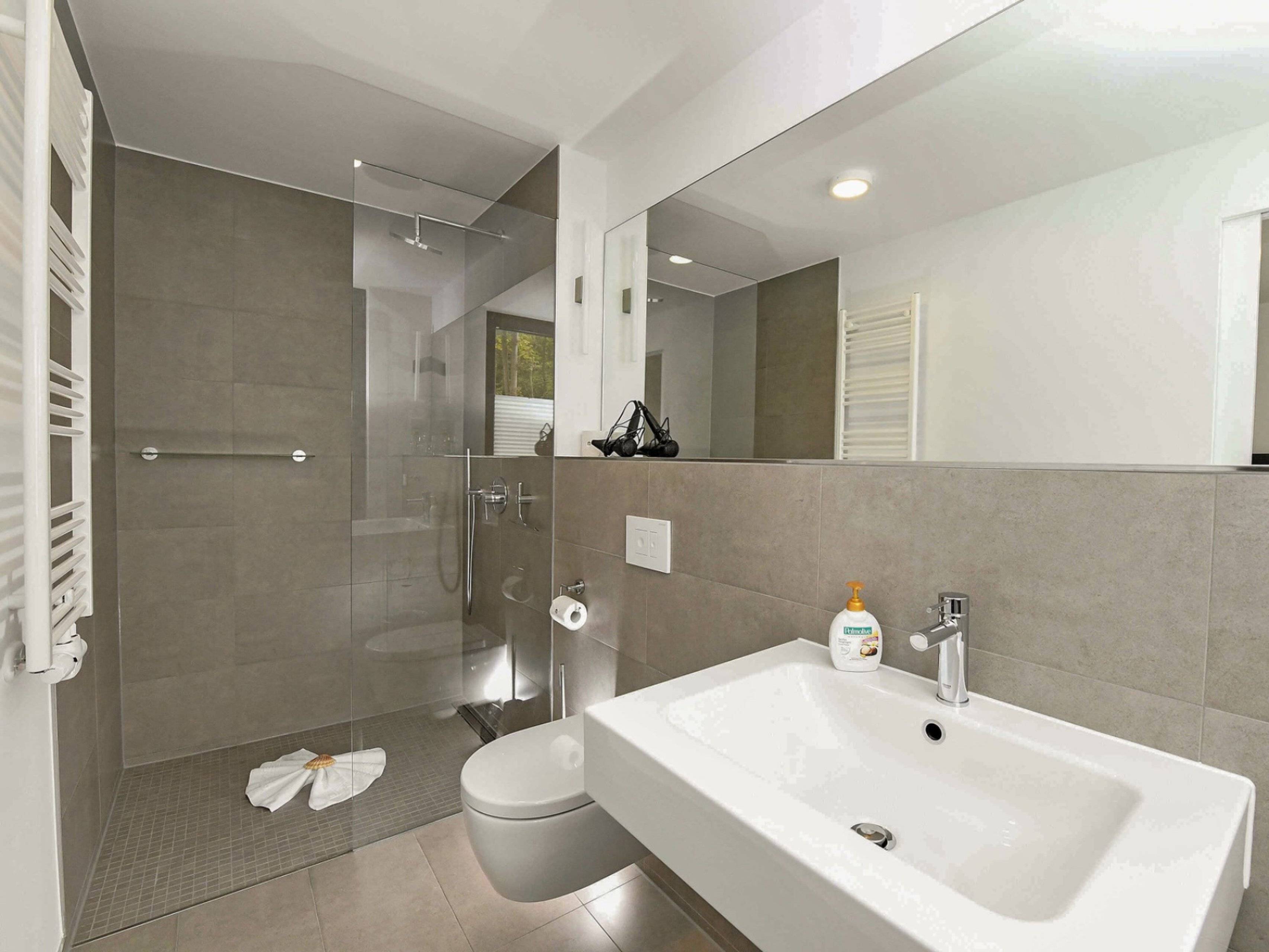 Fußbodenheizung Handtuchheizkörper Spiegel Walk- In- Dusche Waschbecken WC
