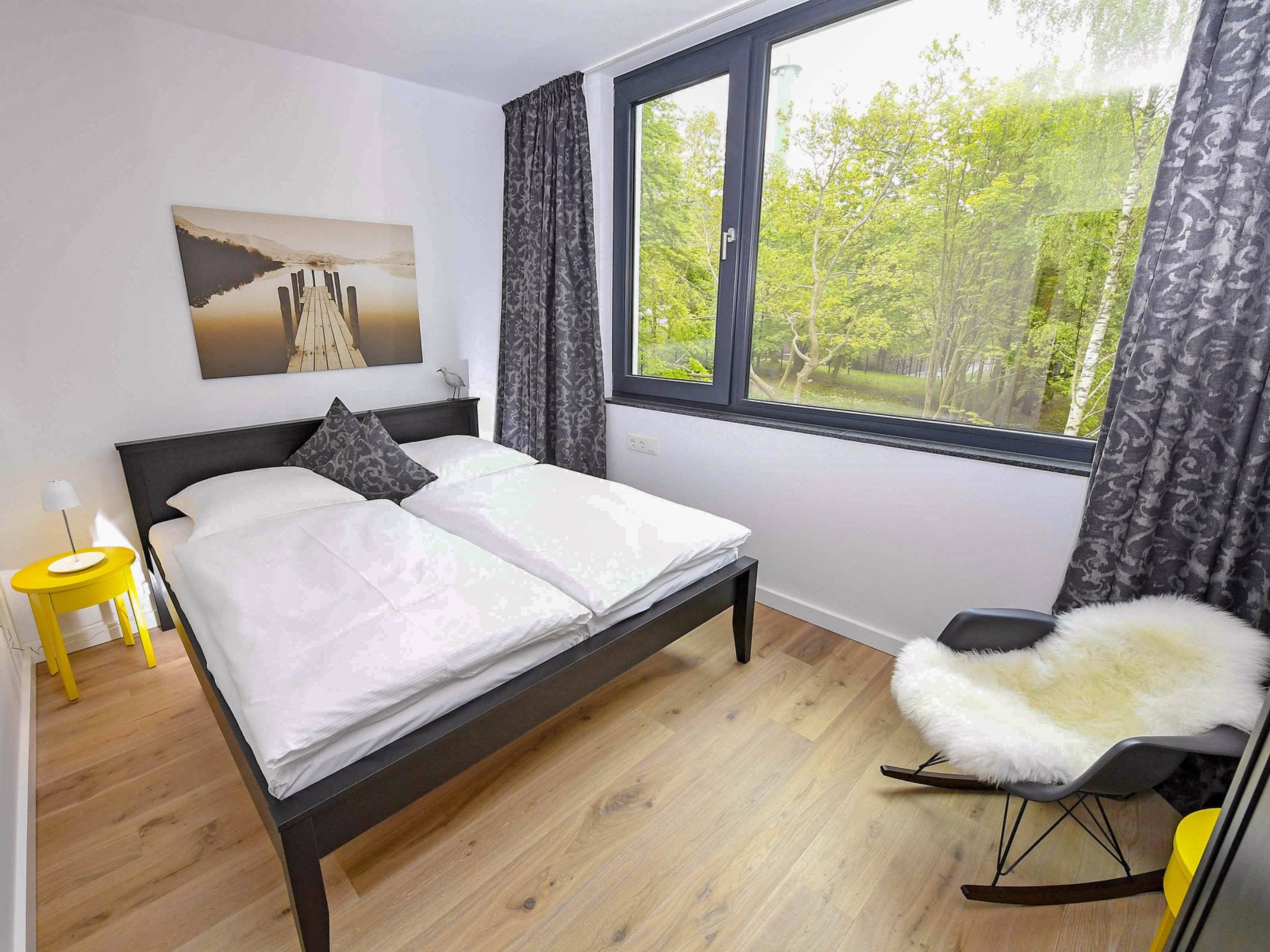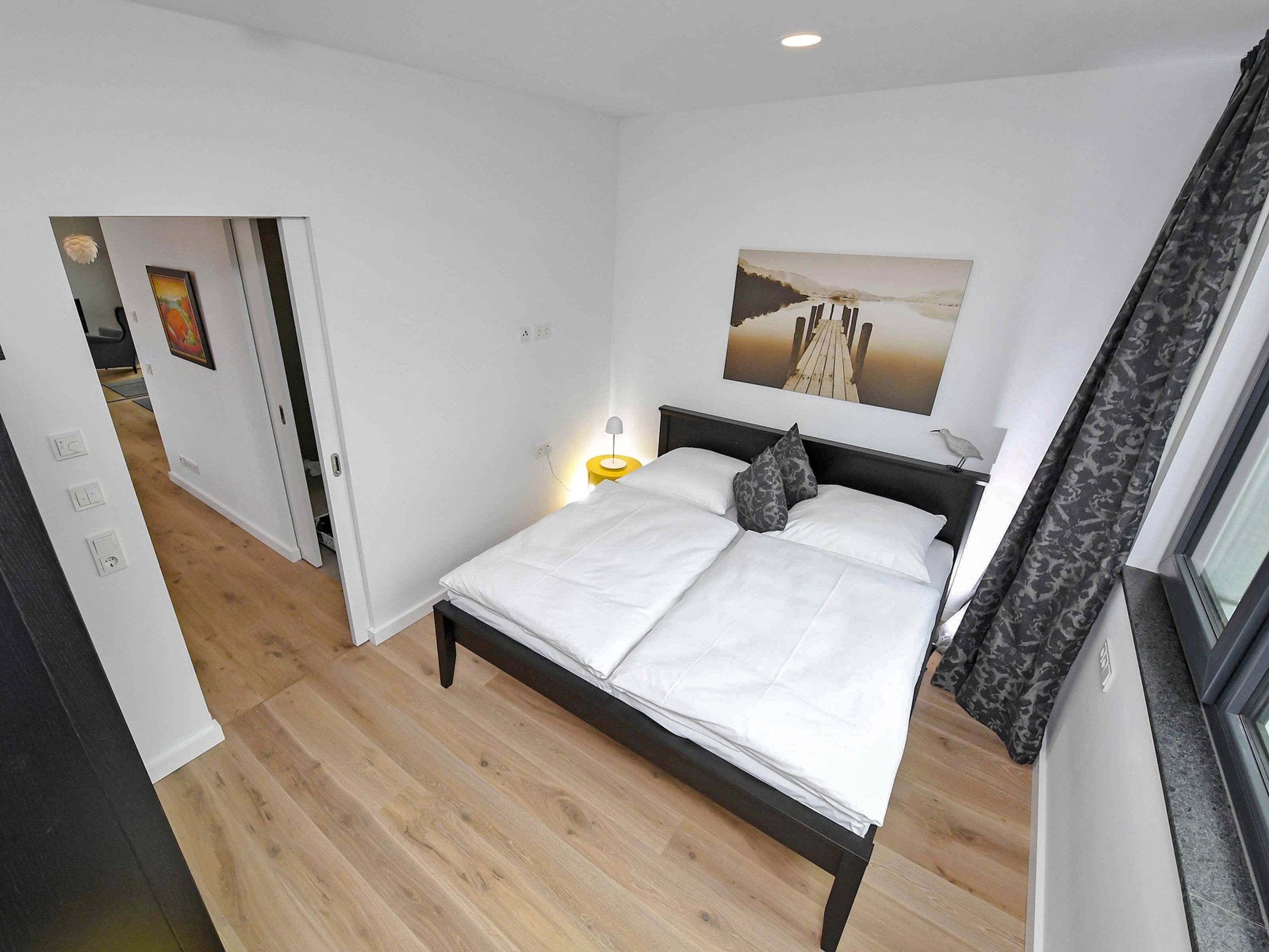 Doppelbett Fenster Fußbodenheizung Kleiderschrank Rauchmelder Vorhänge