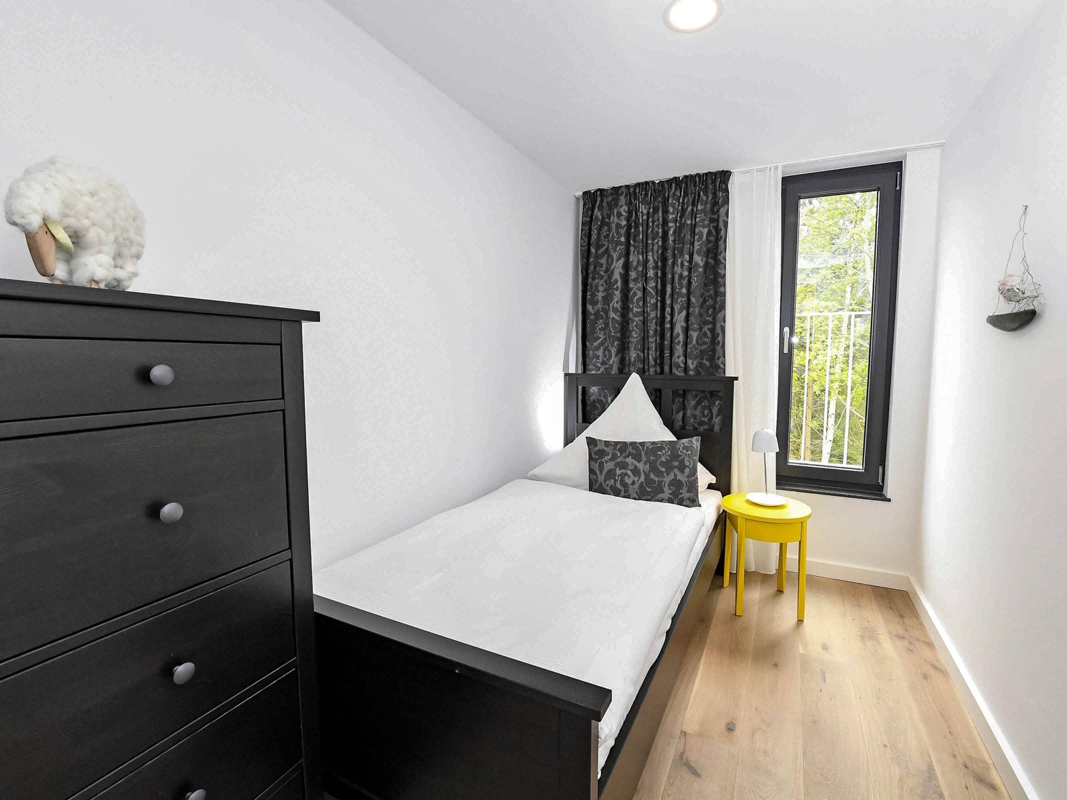 Einzelbett Fenster Fußbodenheizung Rauchmelder Vorhänge