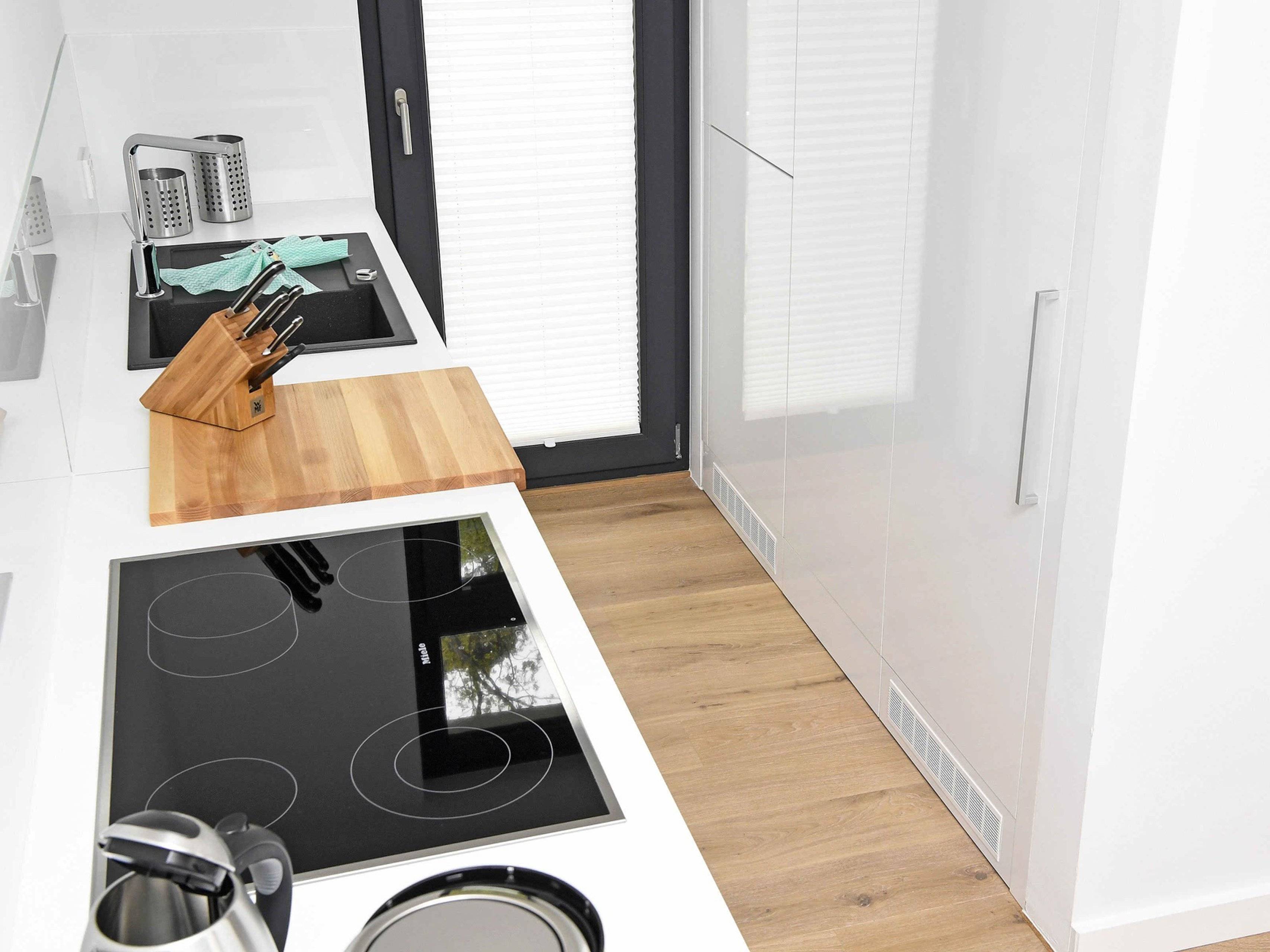 Backofen Cerankochfeld Esstisch Fenster Fußbodenheizung Gefrierfach Geschirr/ Besteck Geschirrspülmaschine Kaffeemaschine Küchenutensilien Kühlschrank Pfannen Stühle Toaster Töpfe Wasserkocher