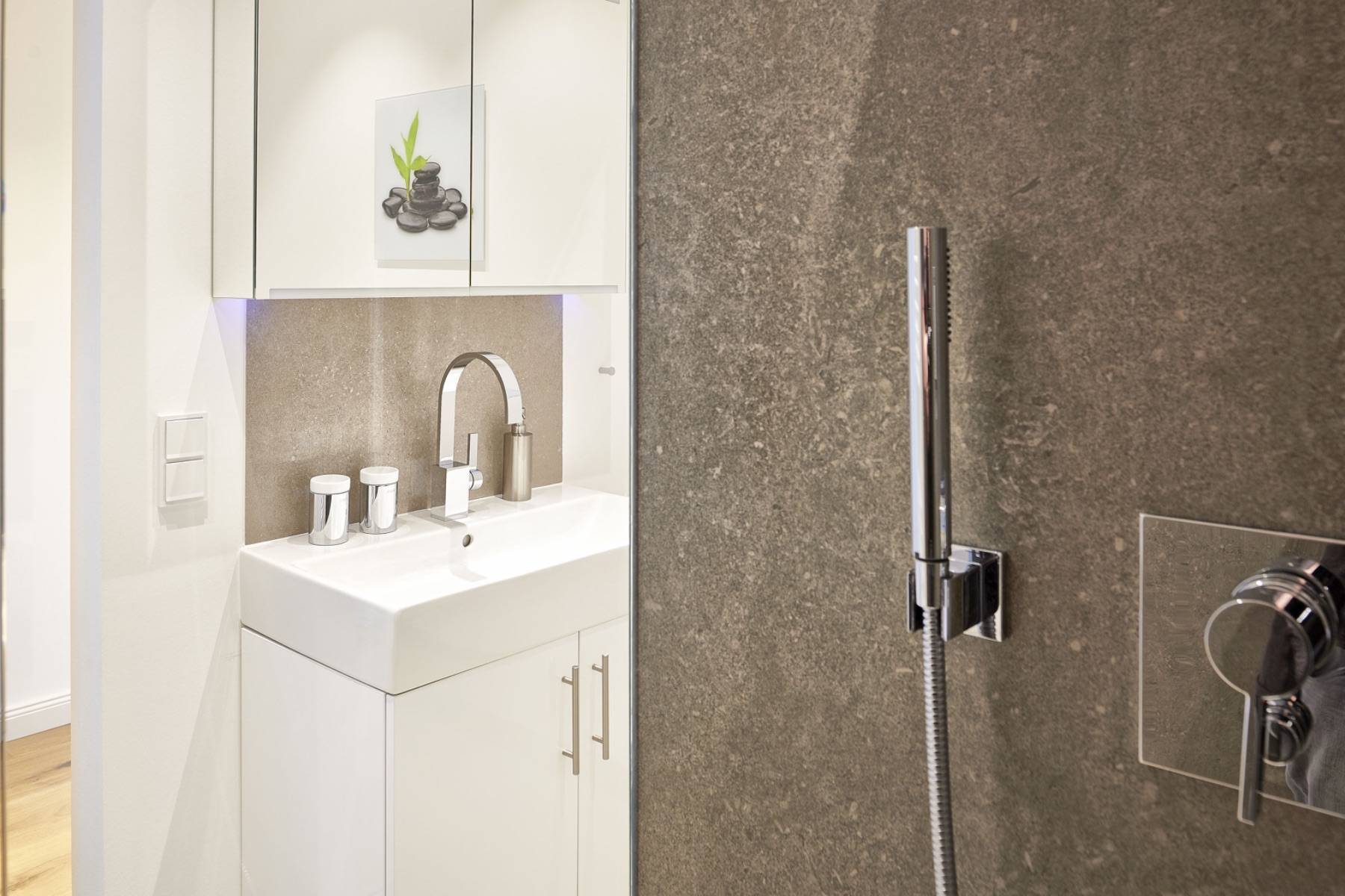 Dusche Fußbodenheizung Spiegel Waschbecken WC