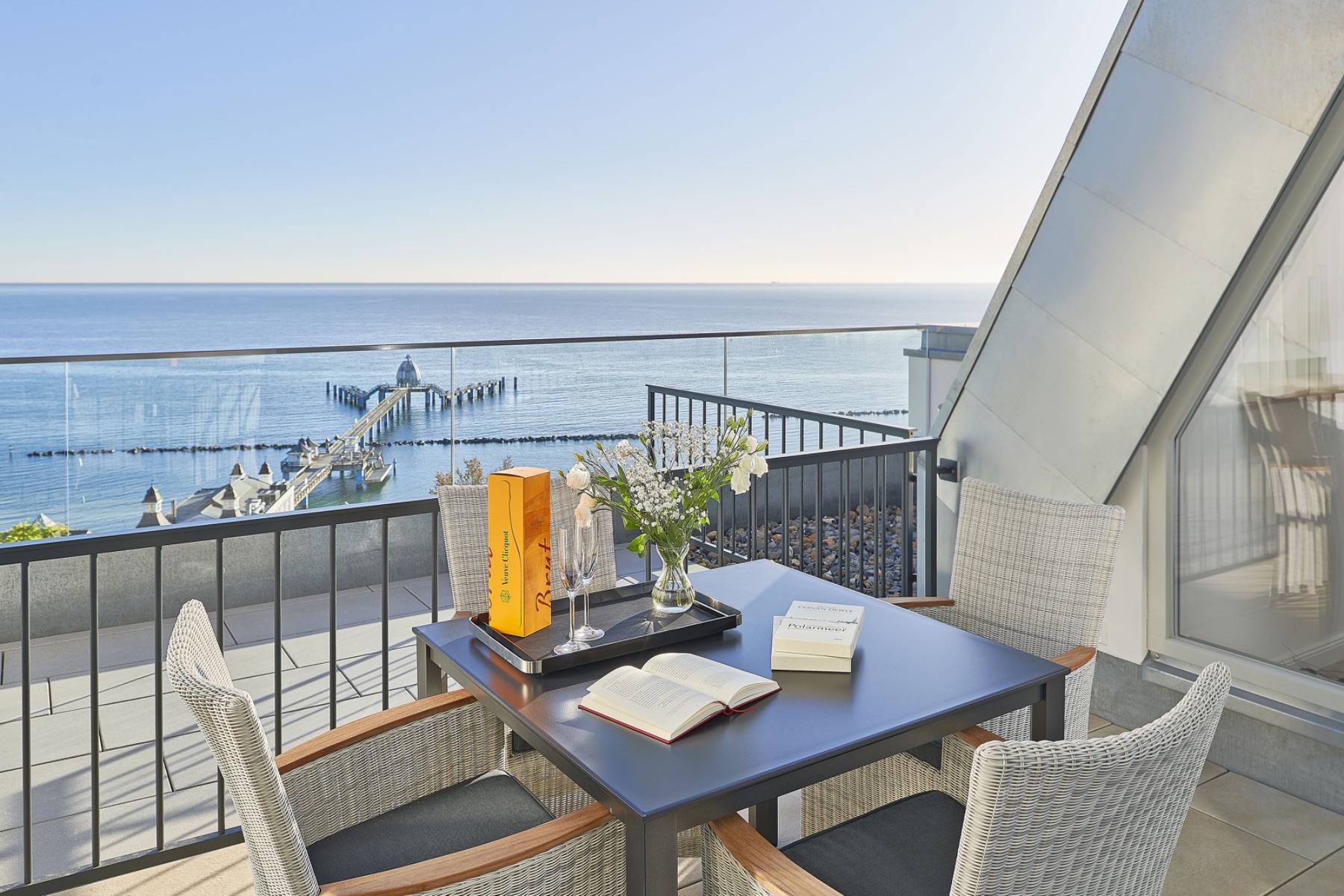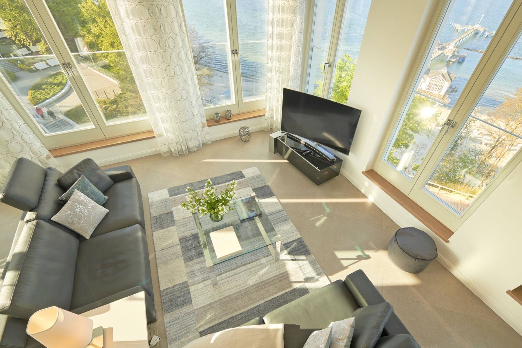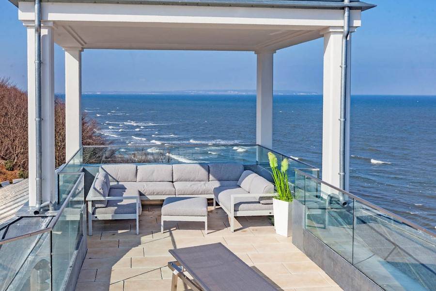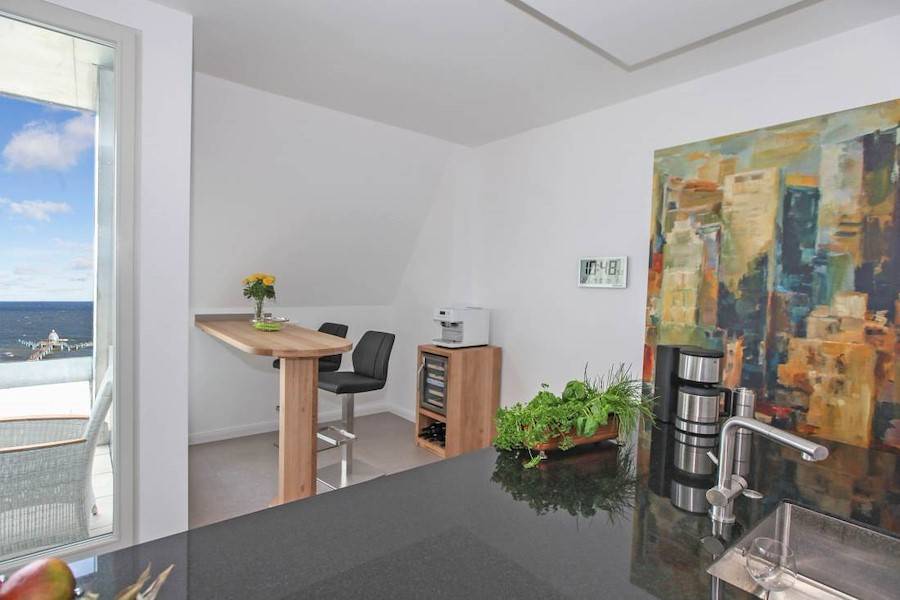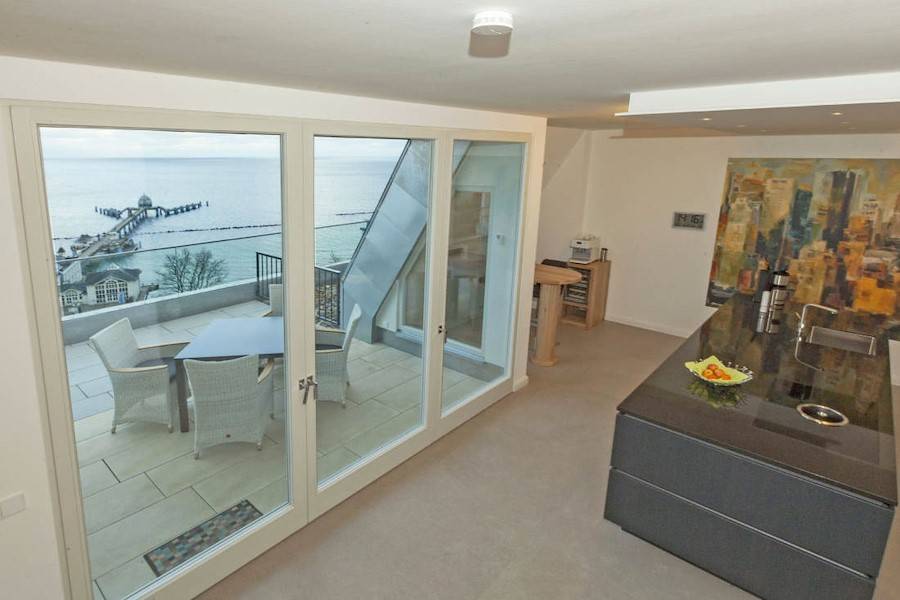 Doch unmittelbar davor, hoch oben auf der Steilküste, sorgt das Luxus Penthouse Meerblick in Sellin für Aufsehen.