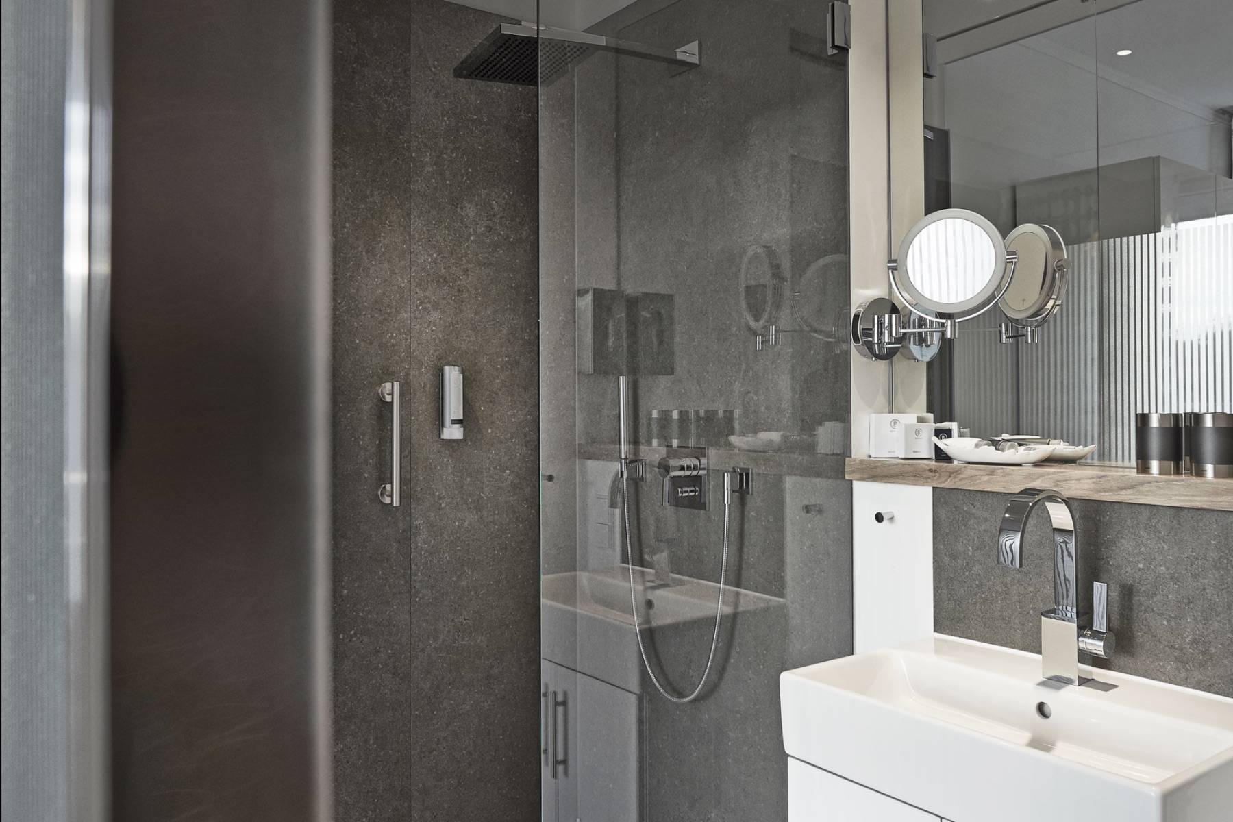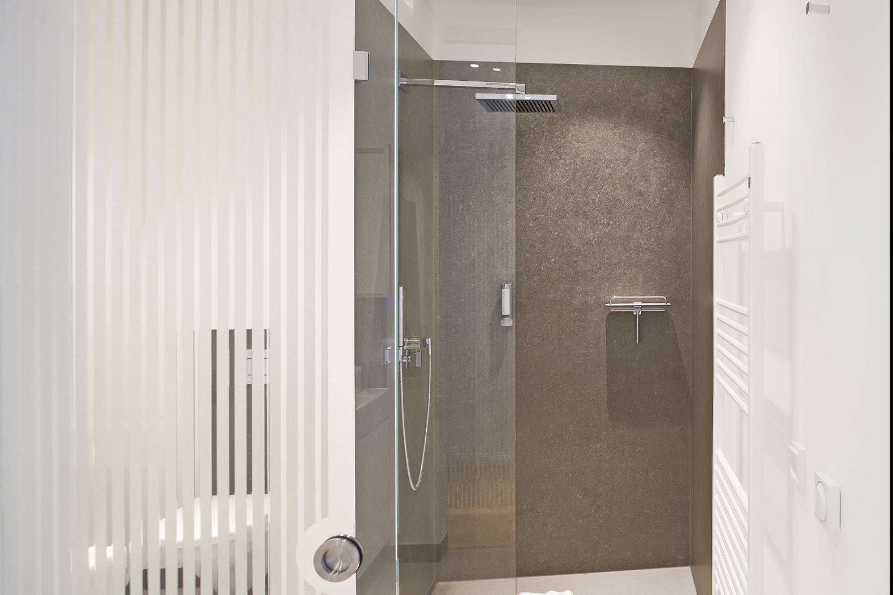 Dusche Fußbodenheizung Haartrockner Spiegel Waschbecken WC