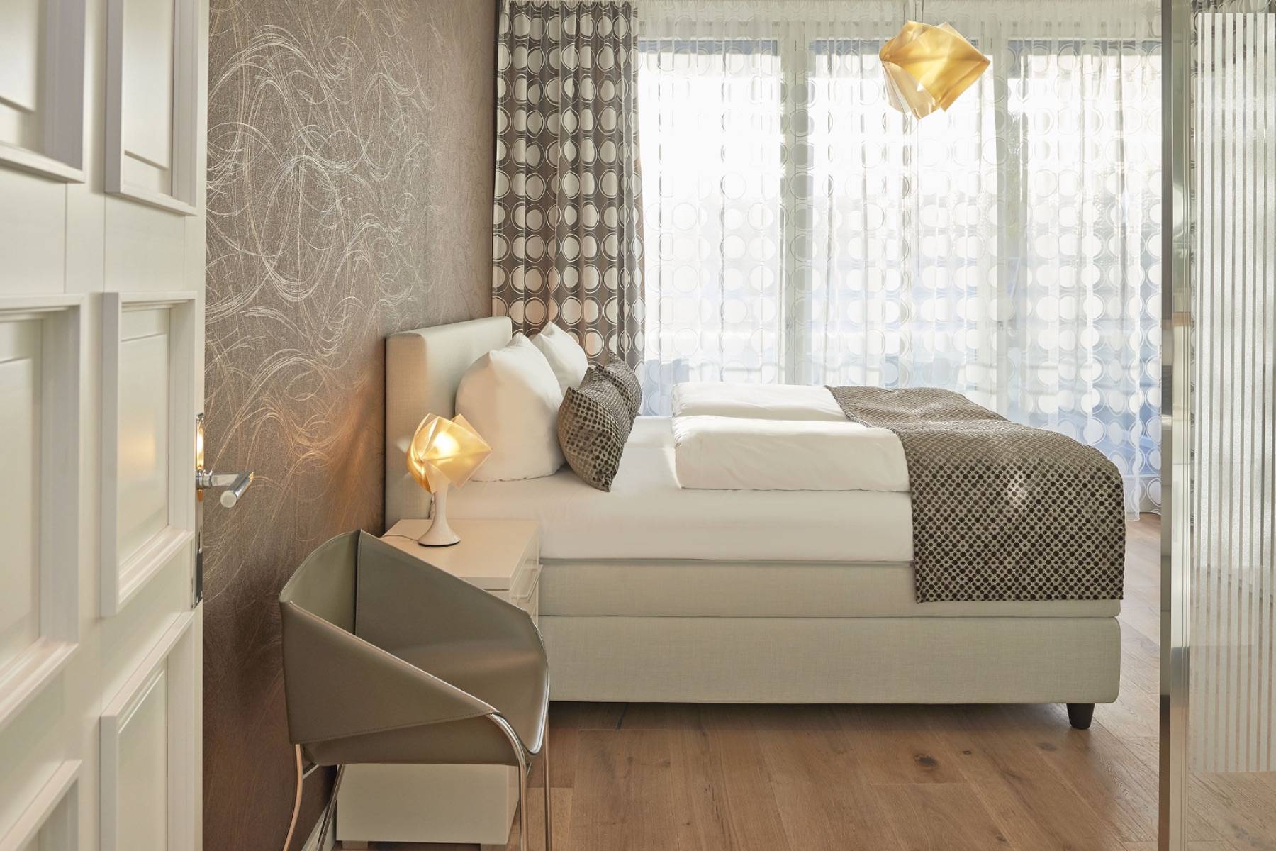 Doppelbett Fenster Fußbodenheizung Kleiderschrank Meerblick Vorhänge