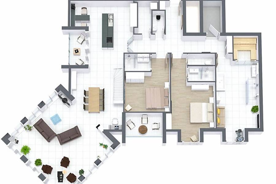 Betten: 6 • Schlafräume: 2 • Bäder: 2 • 214 m²