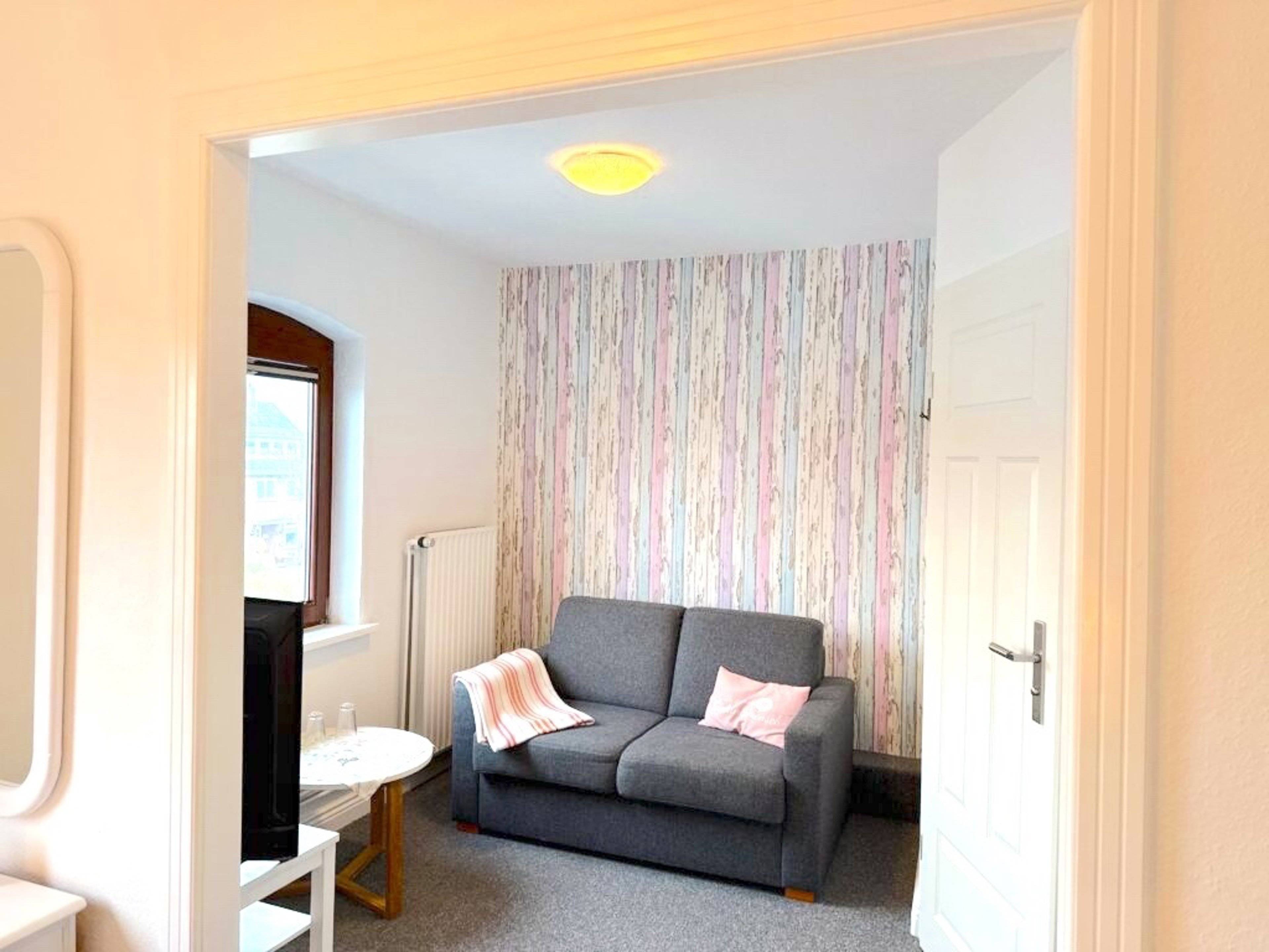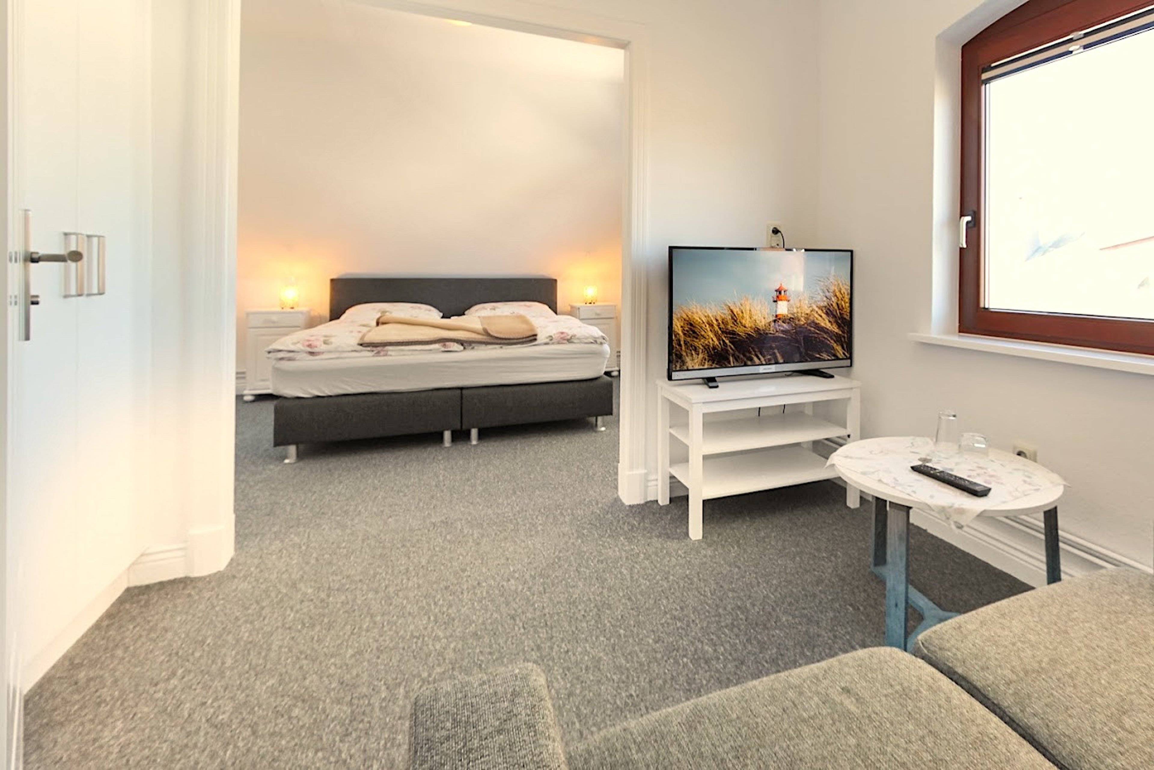Das Apartment Lütt 14 in Wenningstedt befindet sich in einer Pension und ist mit einem Doppelbett ausgestattet. Das separate Tageslichtbad ist hell, modern und mit einer Dusche versehen.