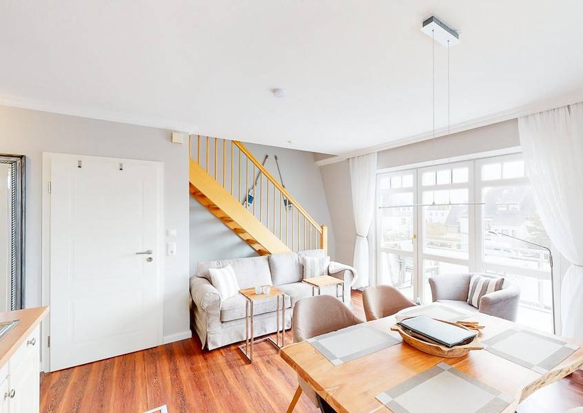 Die Wohnung wurde jüngst vollständig renoviert und erscheint in neuem Glanz. Modern, exquisit und komfortabel in heller Atmosphäre erstreckt sich die Wohnung über zwei Ebenen und beherbergt zwei Schlafzimmer mit großen Doppelbetten und ein modernes Badezimmer.