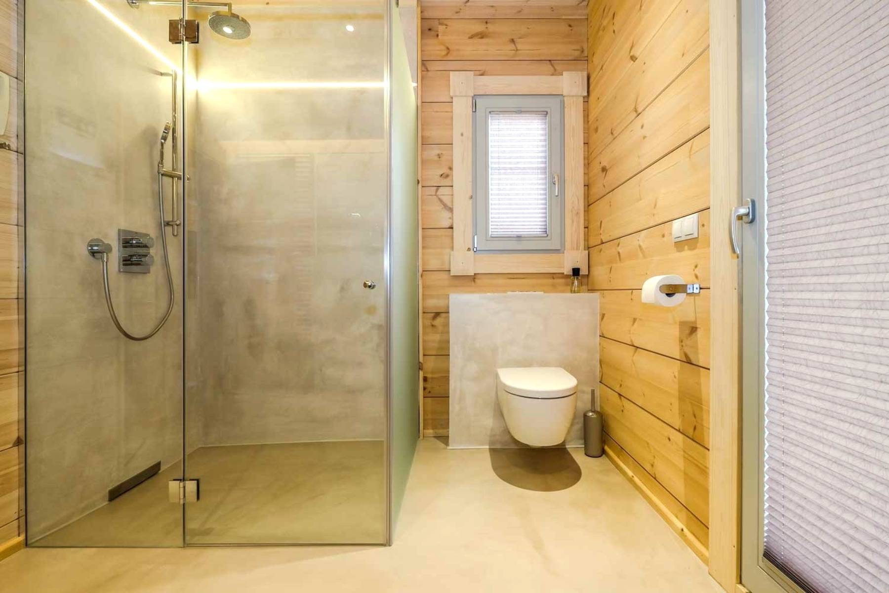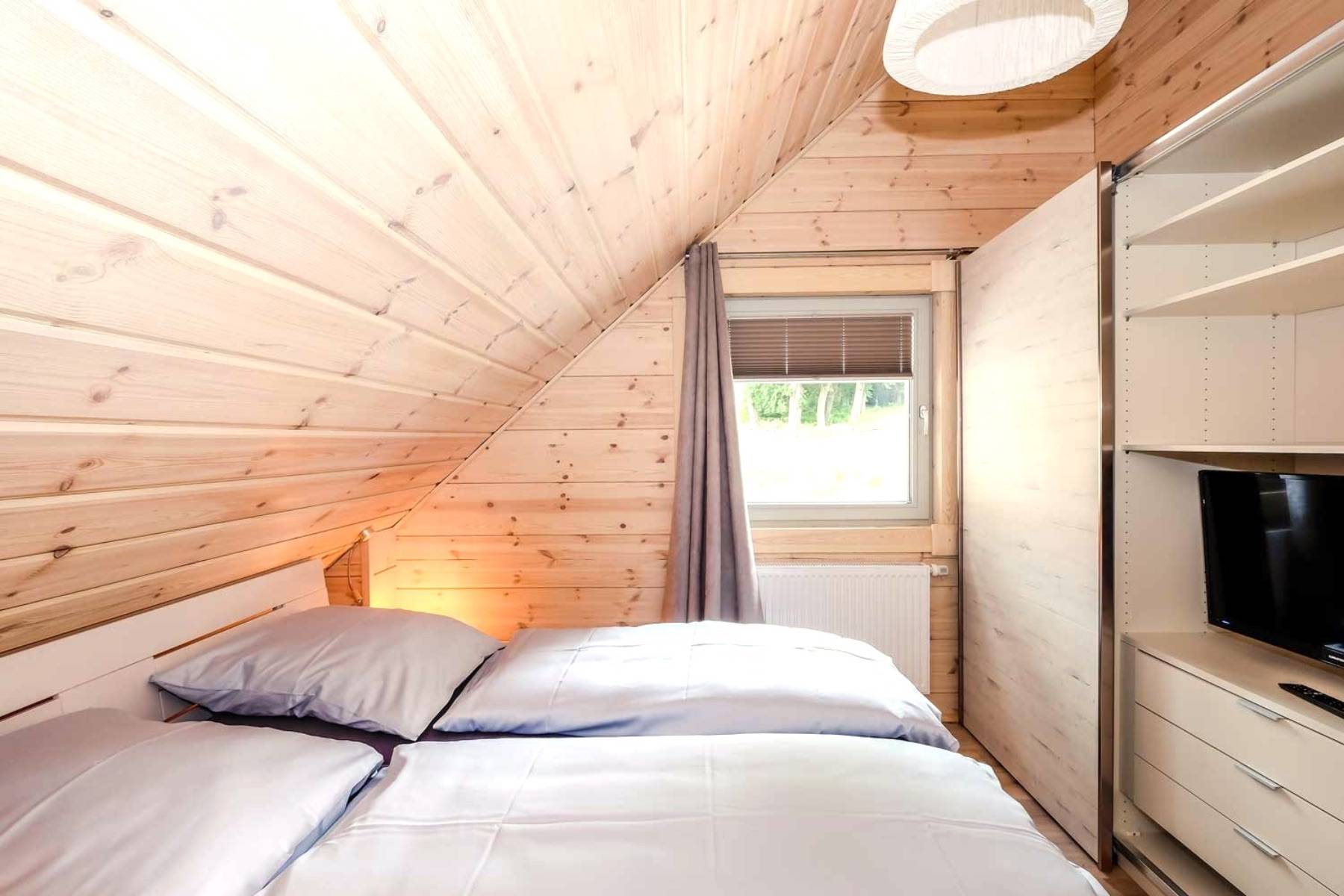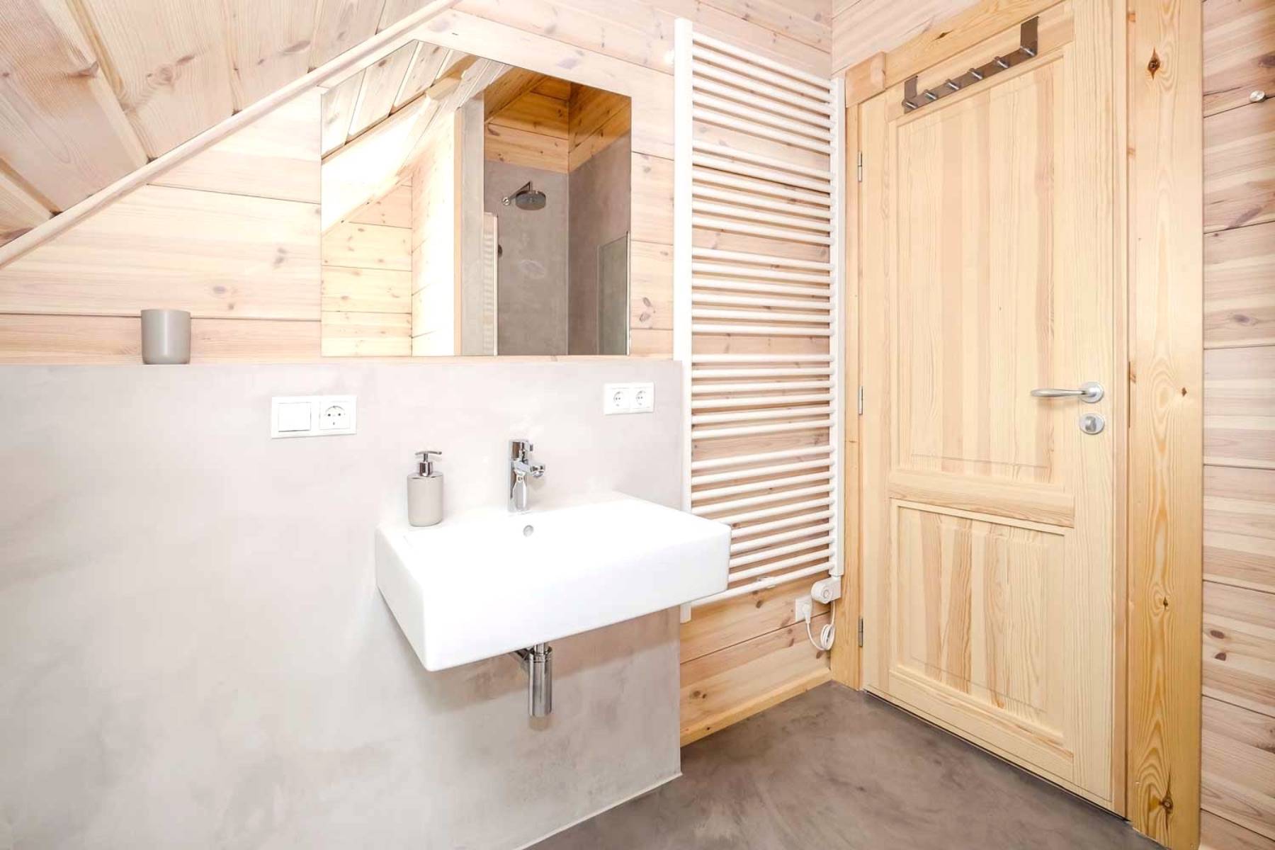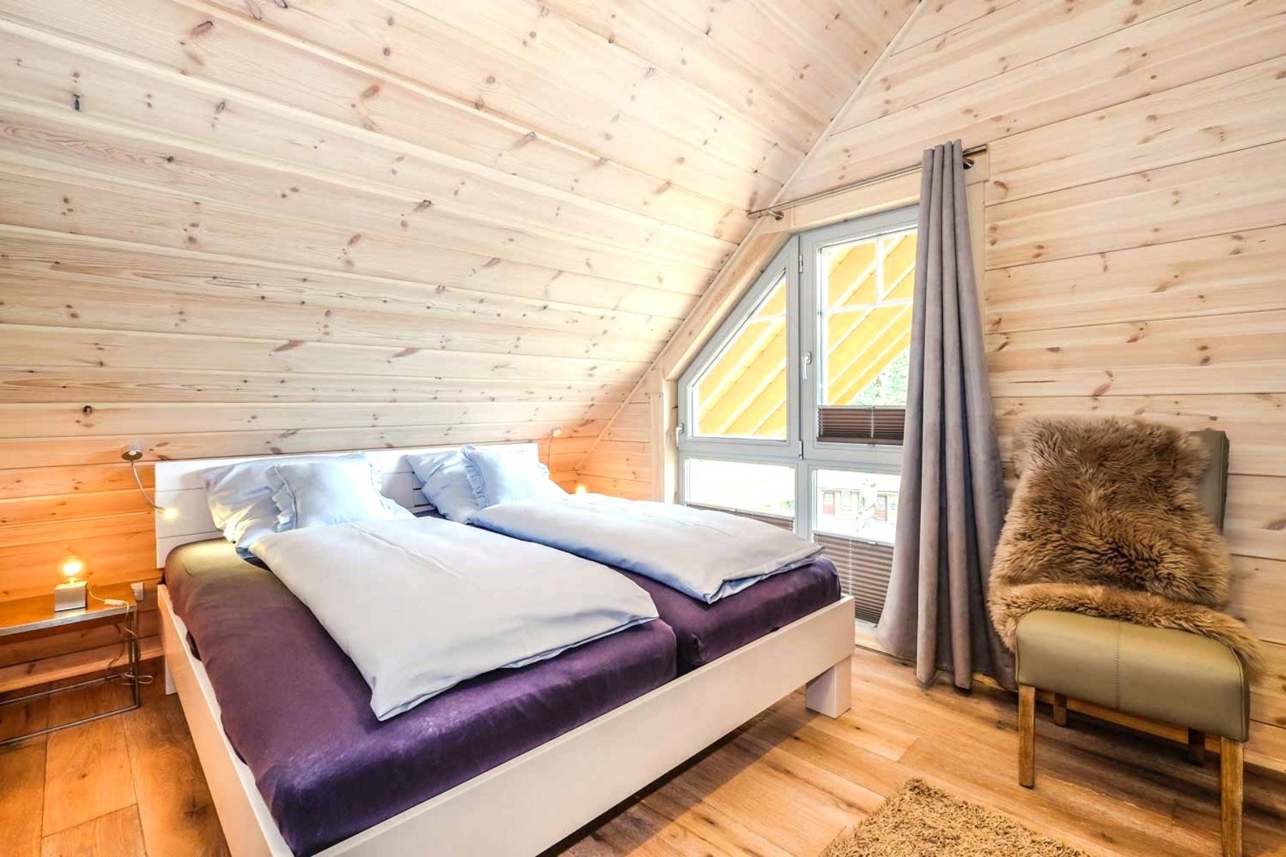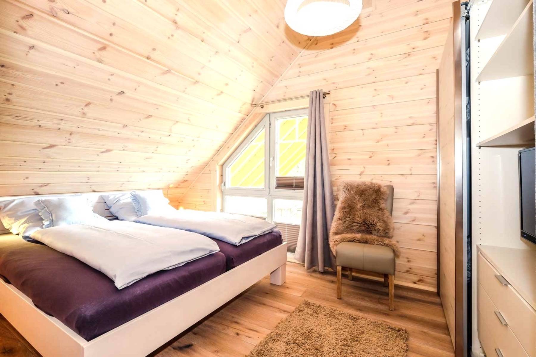 Die Lodge "Blickfang" bietet ausreichend Platz für maximal 6 Personen bei zusätzlicher Nutzung der Schlafcouch 8 Personen und ist modern und dennoch gemütlich eingerichtet. Im gesamten Erdgeschoß und den Bädern sorgt eine Gas-Zentral-Fußbodenheizung unter dem fugenlosen Design-Boden für wohlige Wärme.