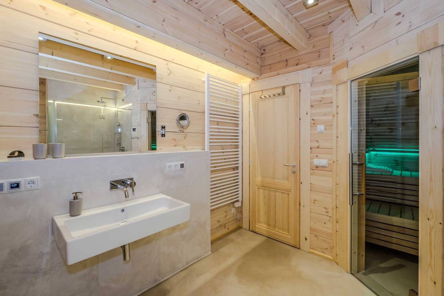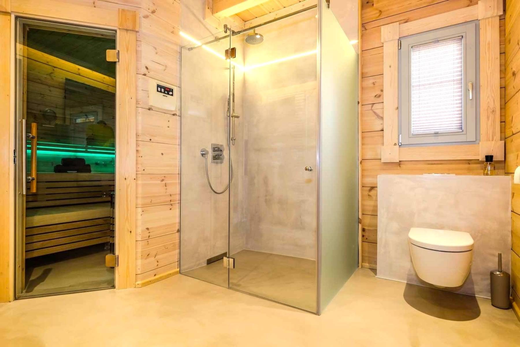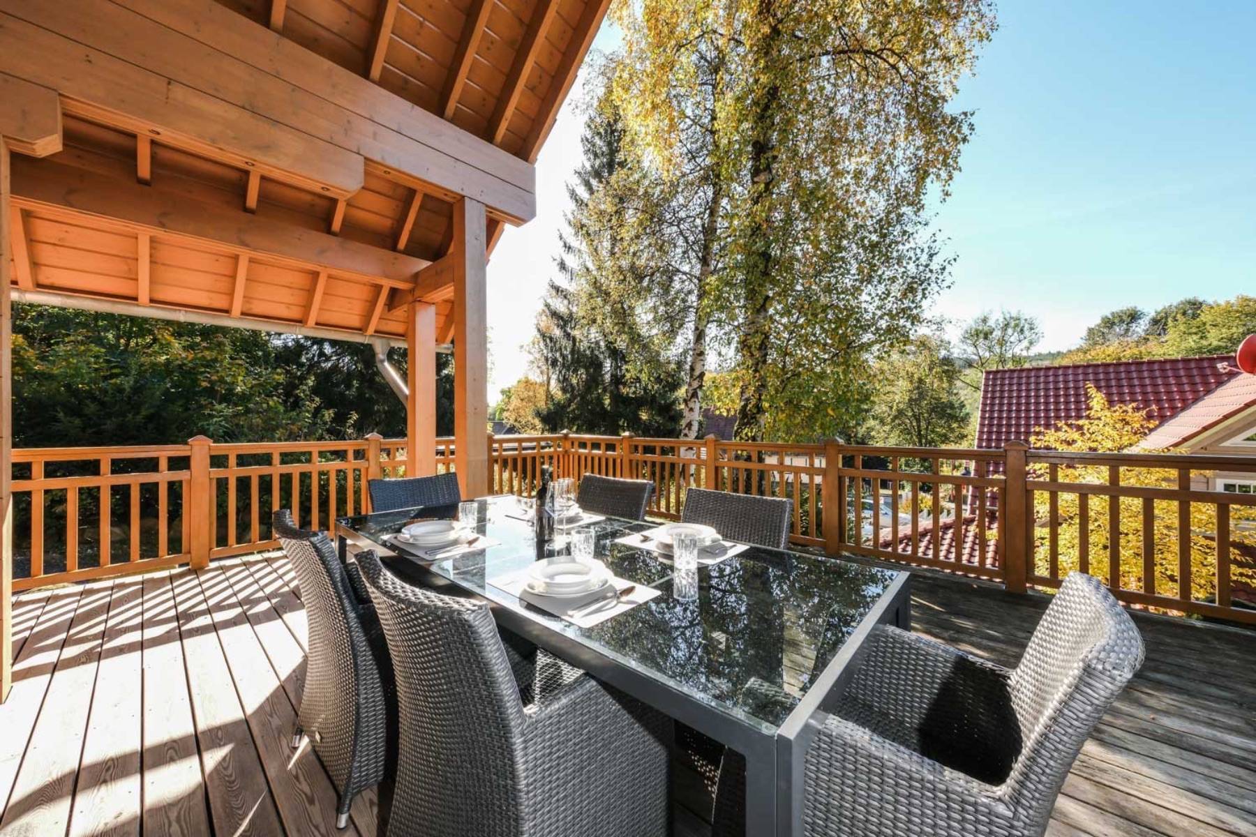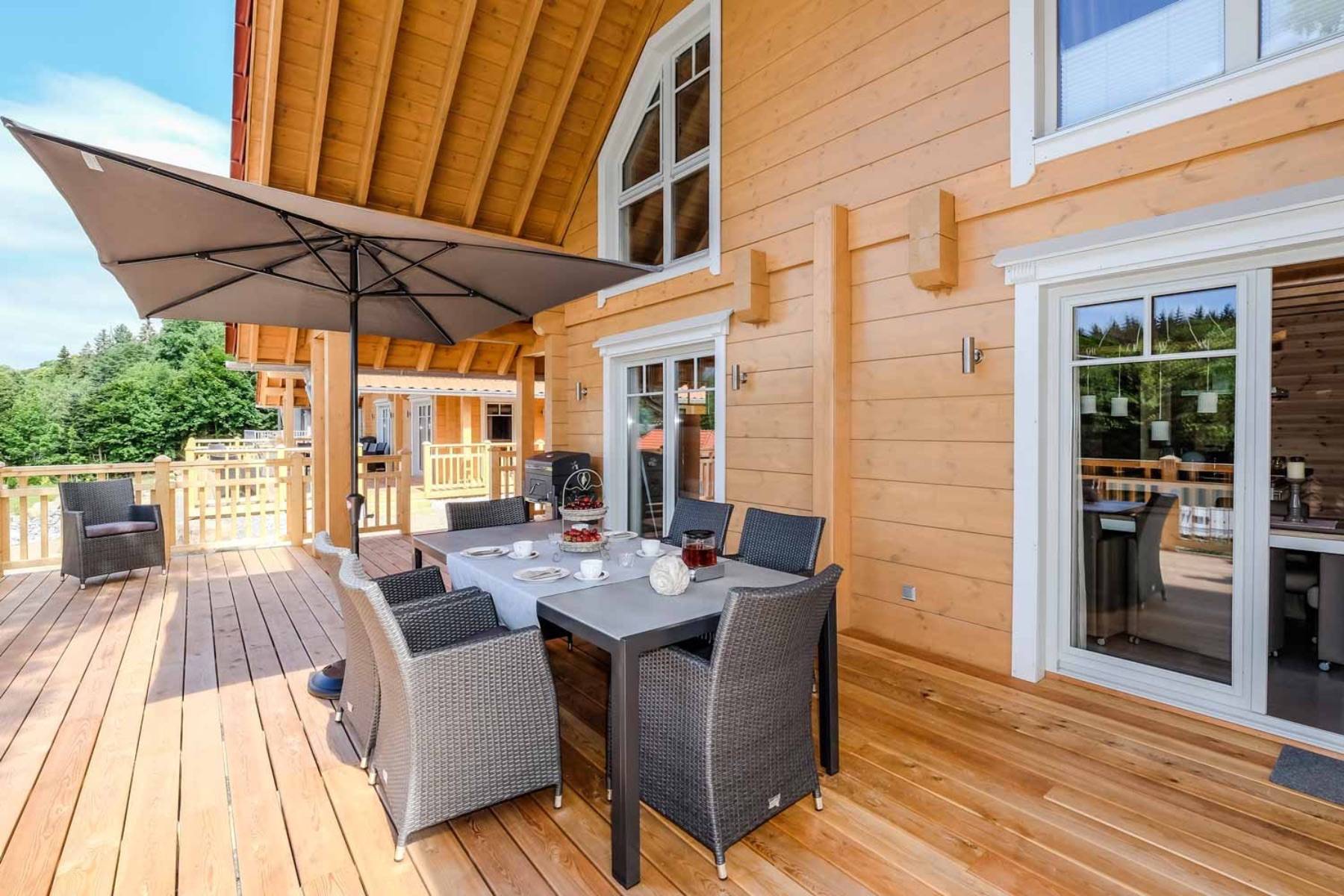 Das exklusive Blockhaus in traumhafter Hanglage besticht durch eine luxuriöse Ausstattung im angesagten Stilmix. Höchster Komfort: Sauna, 2 Bäder, Ofen, großer Terrasse u. Inselküche