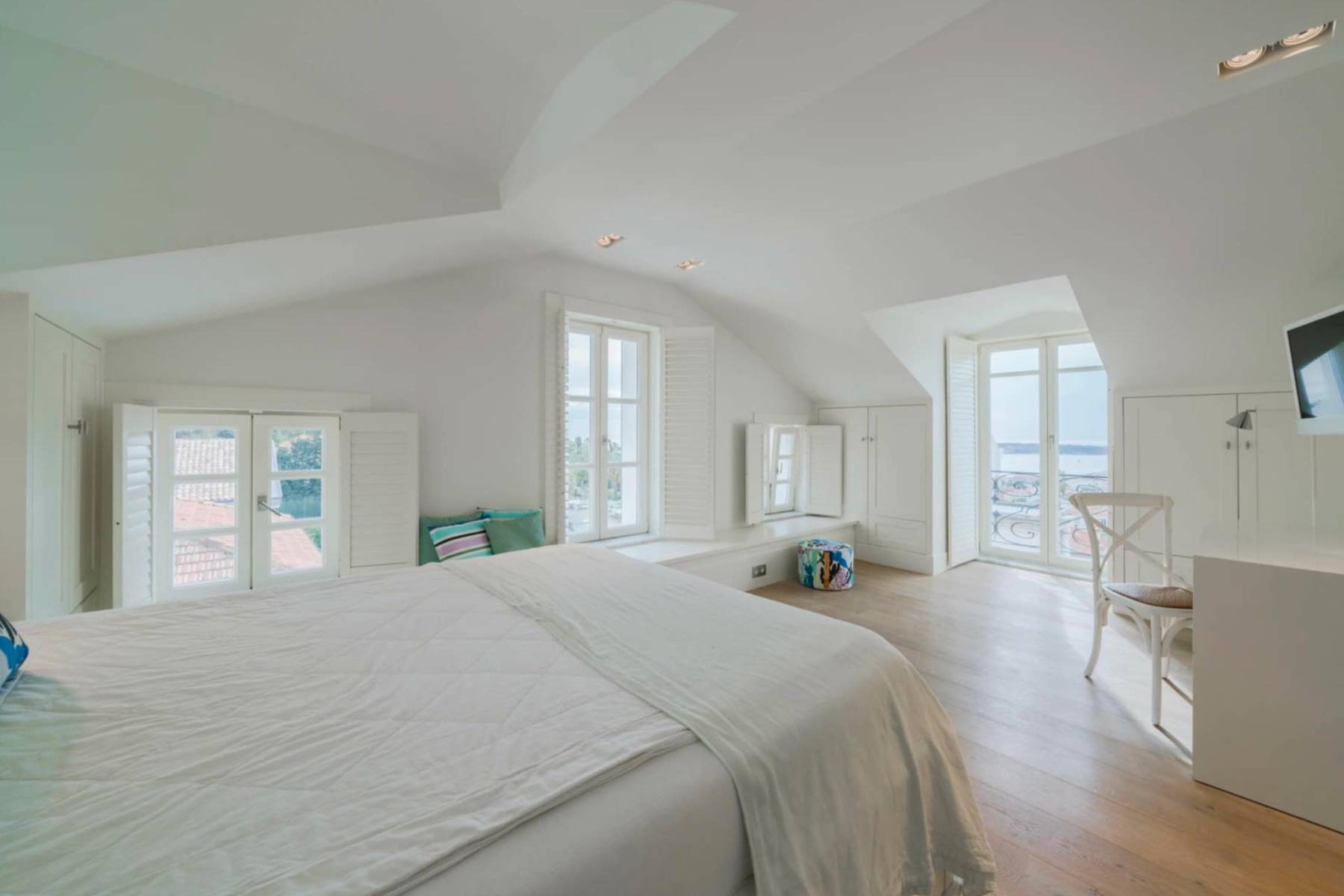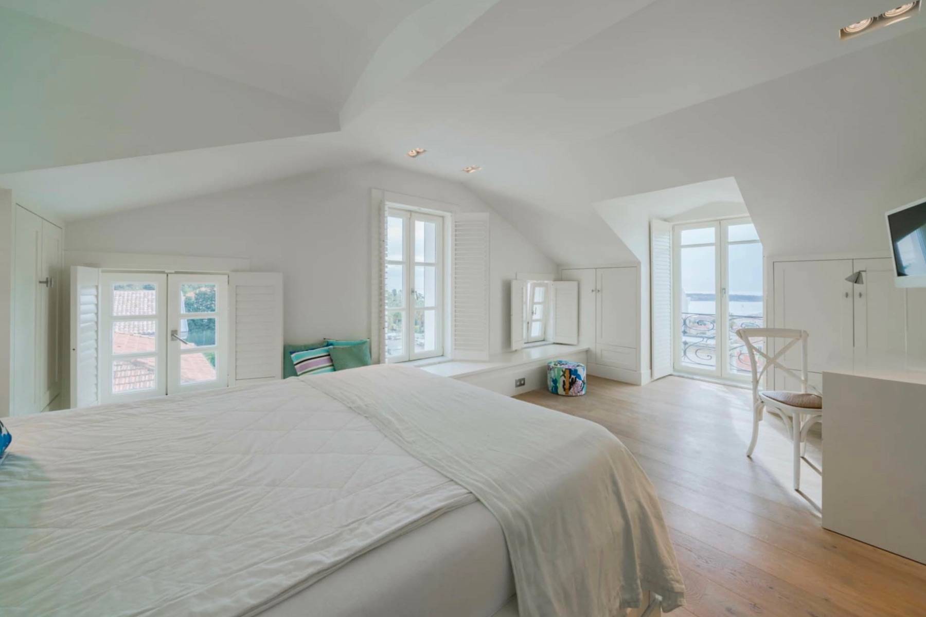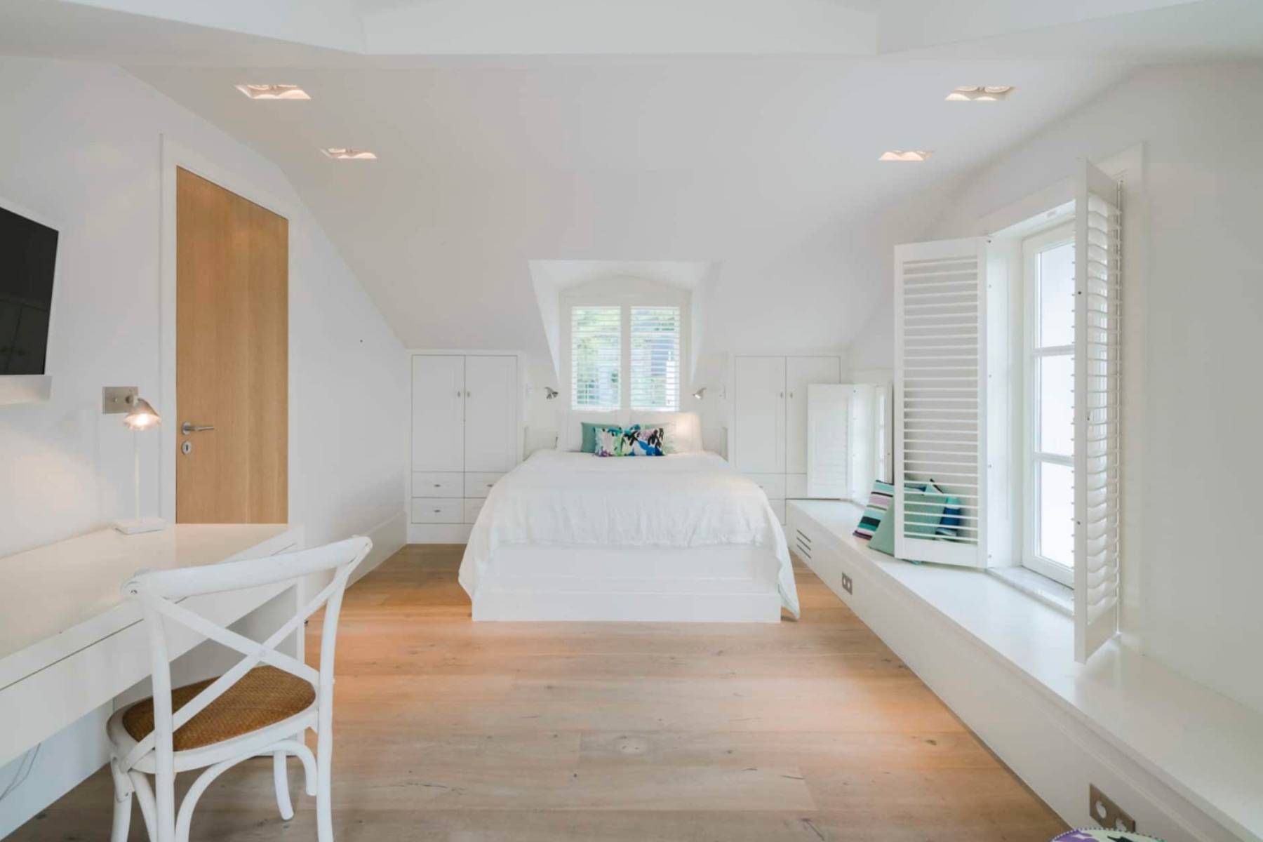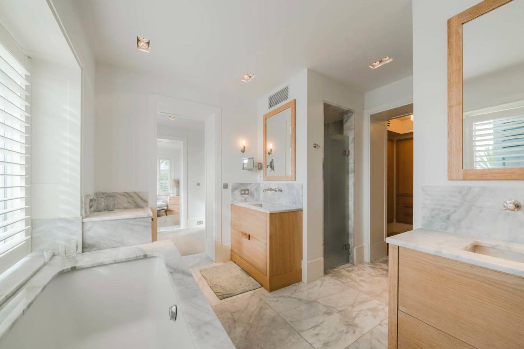 In den oberen Etagen befinden sich die modernen und hell eingerichteten 6 Schlafzimmer (das Hauptschlafzimmer hat einen eigenen begehbaren Kleiderschrank) und große Badezimmer, die mit einer Toilette, einer Dusche und einer separaten Badewanne ausgestattet sind.