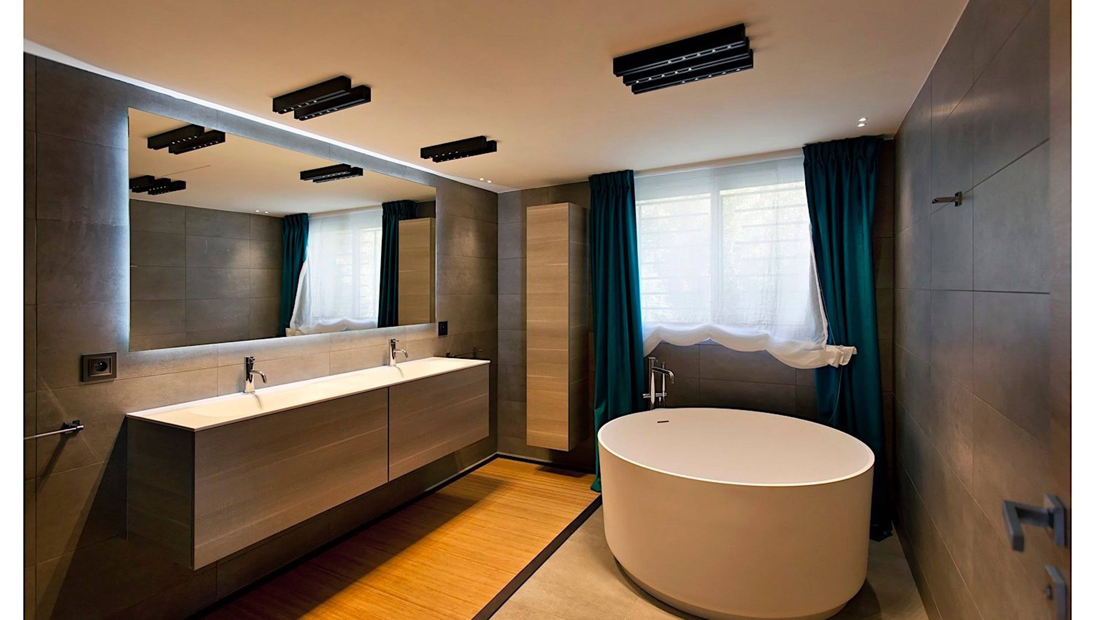 - Geräumiges und stilvoll eingerichtetes Schlafzimmer mit Doppelbett (160 cm breites Kingsize-Bett) mit eigenem Balkon mit Meerblick, großem Ankleidezimmer, Sitzecke und Schreibtisch, Badezimmer mit separater Badewanne und Dusche sowie separatem WC, TV und Klimaanlage.