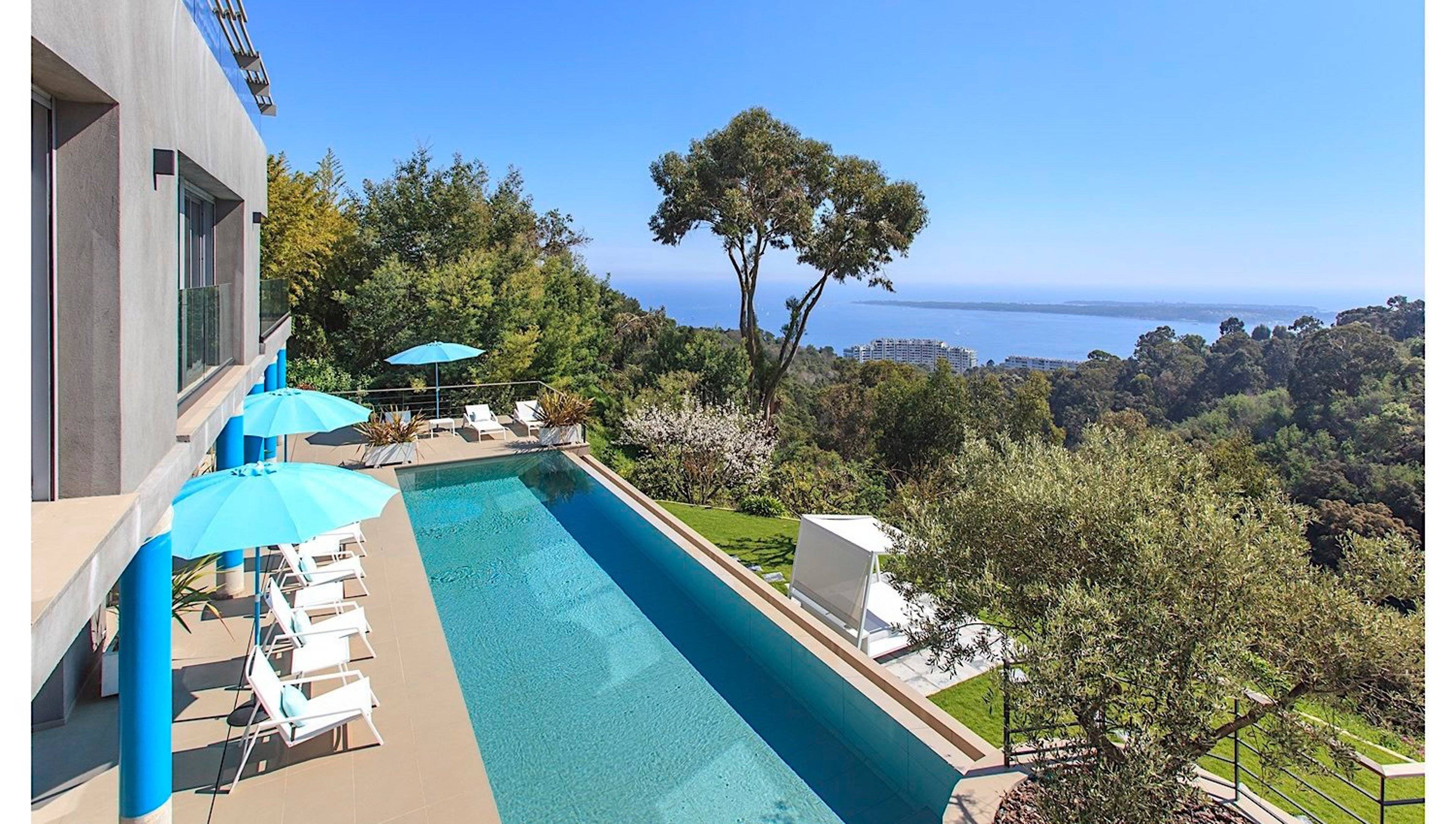 Die fantastische Luxus Villa Perseus befindet sich in einer sehr ruhigen Gegend auf den Hügeln von Cannes mit atemberaubendem Blick auf das Meer.