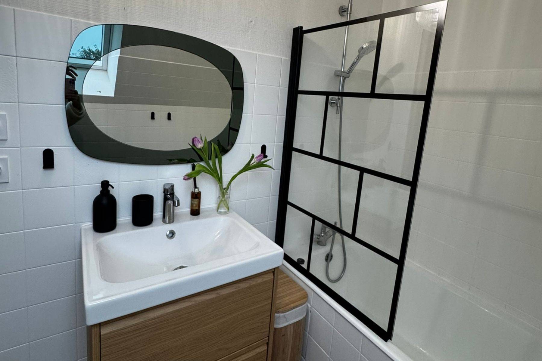 Badewanne Fenster Haartrockner Handtuch Heizung Spiegel Waschbecken WC