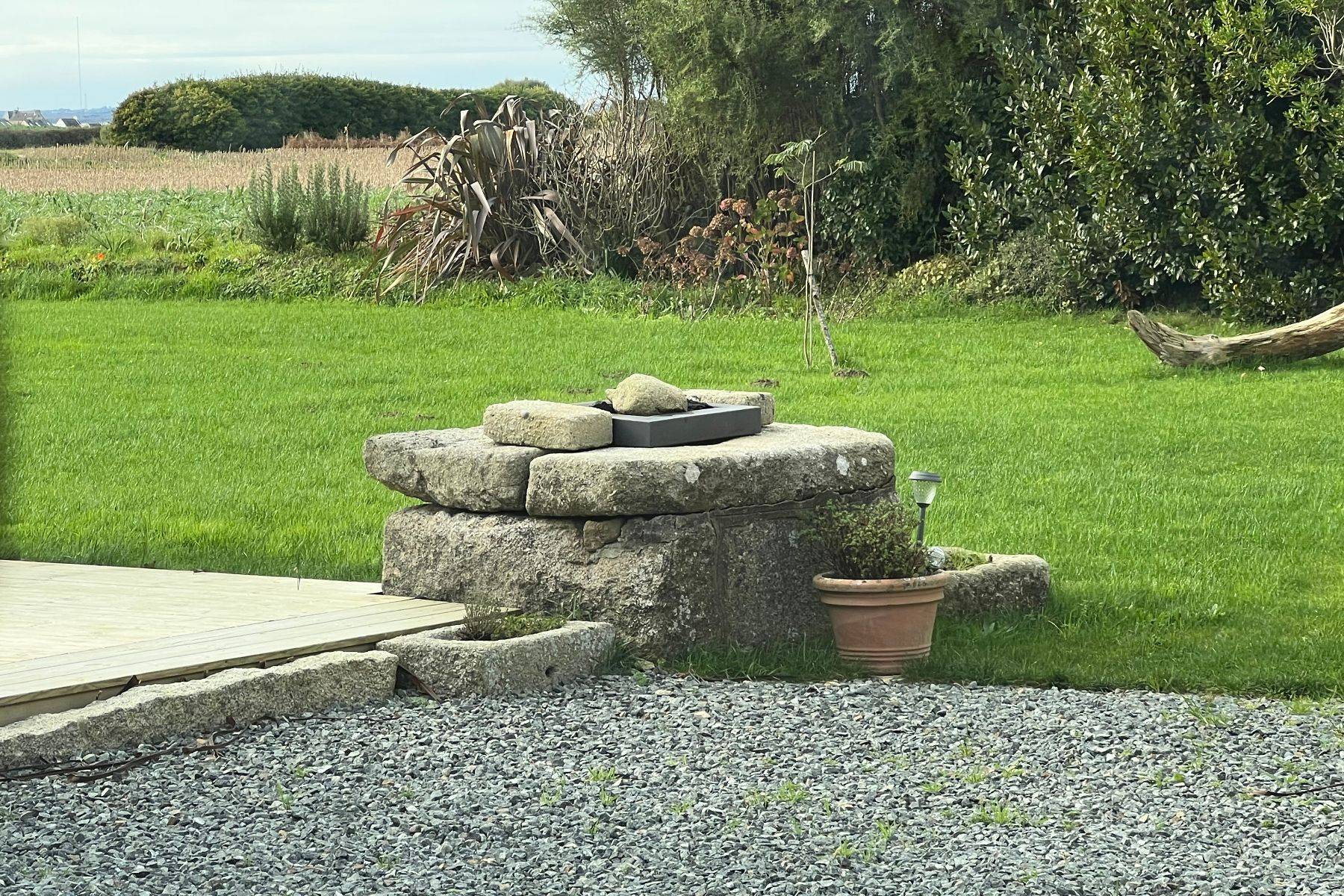Die traditionelle Bauweise ist typisch bretonisch und beeindruckend und der Garten ist riesig (2500 m²) und läd zu vielen sportlich Aktivitäten ein und die Familienhunde haben riesigen Auslauf (der Garten ist allerdings nicht eingezäunt).