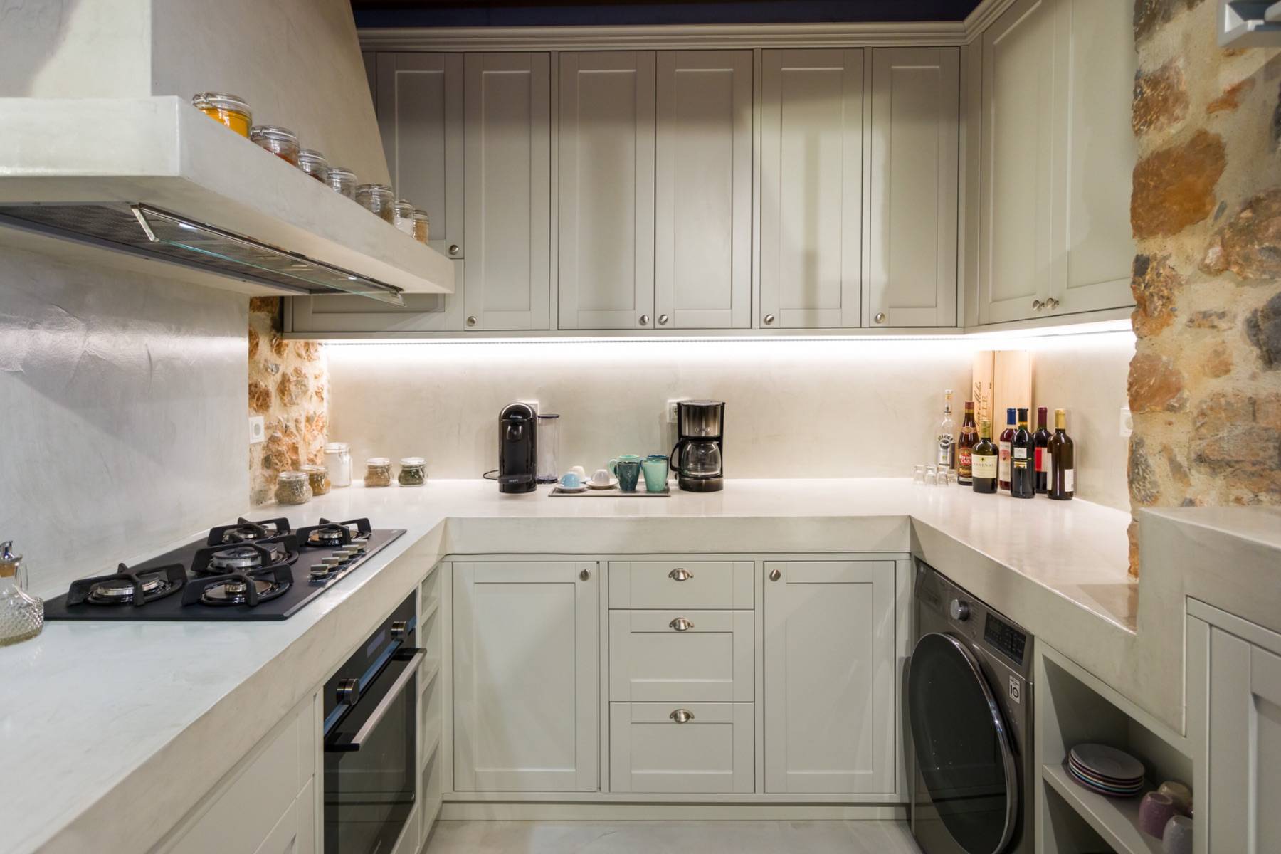 Die gut ausgestattete Küche verfügt über einen Gasherd, einen Elektroofen, eine Mikrowelle, einen Geschirrspüler, eine Kaffeemaschine - mit Nespresso-Filter -, einen großen Kühlschrank und eine Waschmaschine mit Trockner in einem Gerät.