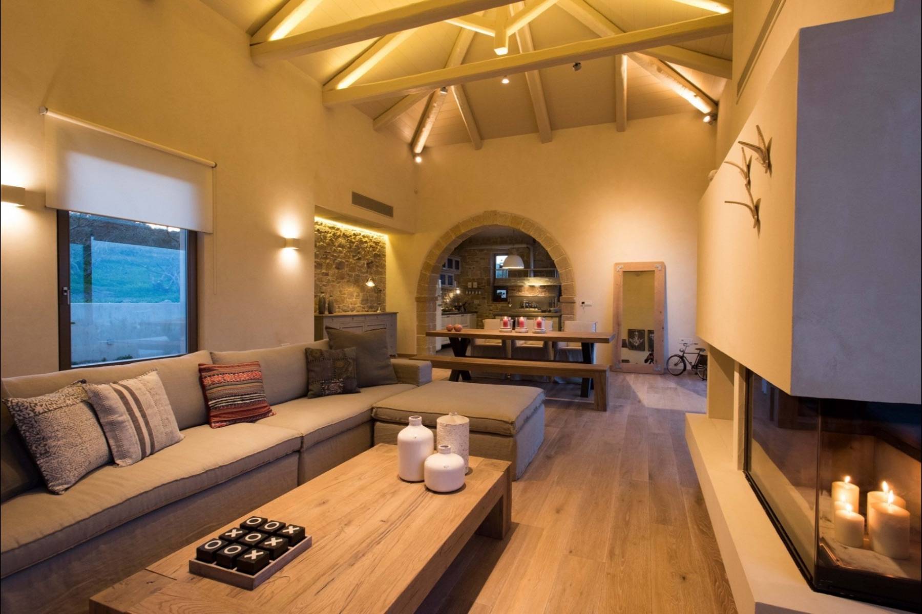 Dieses Ferienhaus versprüht Ruhe und Wärme, dank der sorgfältig ausgewählten Farben und Materialien. Der Wohnbereich beeindruckt durch seine freiliegenden Holzbalken und einer Raumhöhe von ca. 4,5 Metern viel Freiraum und lässt den Blick durch die große Fensterfront auf das Wesentliche zu: das Meer!
