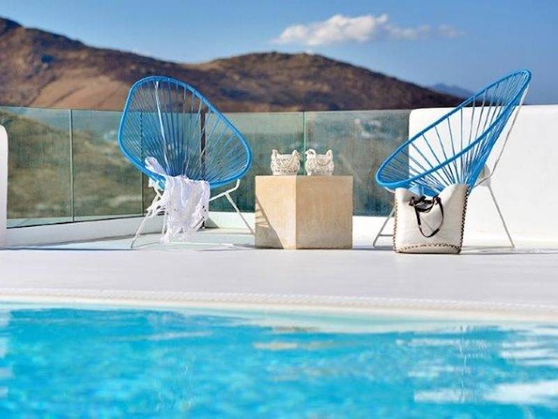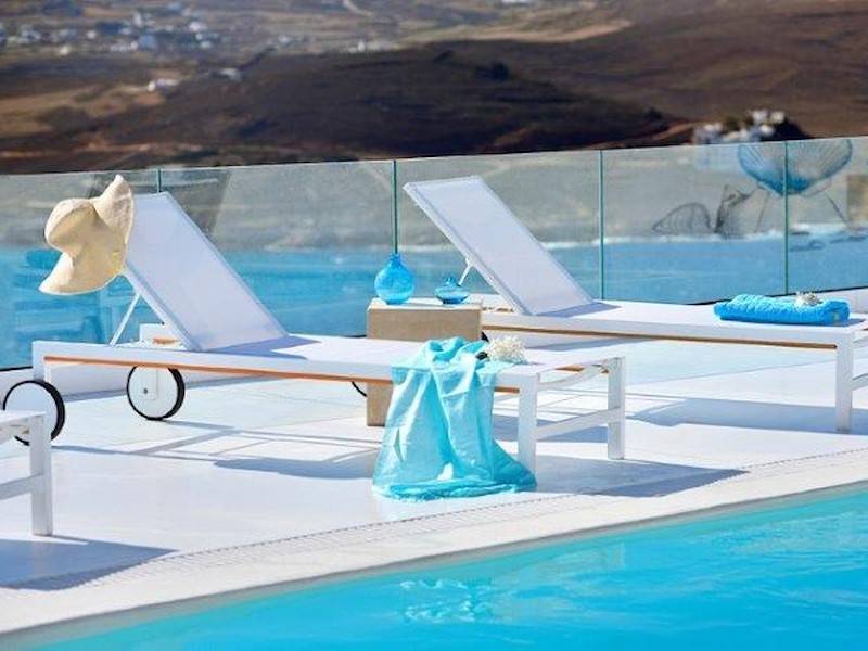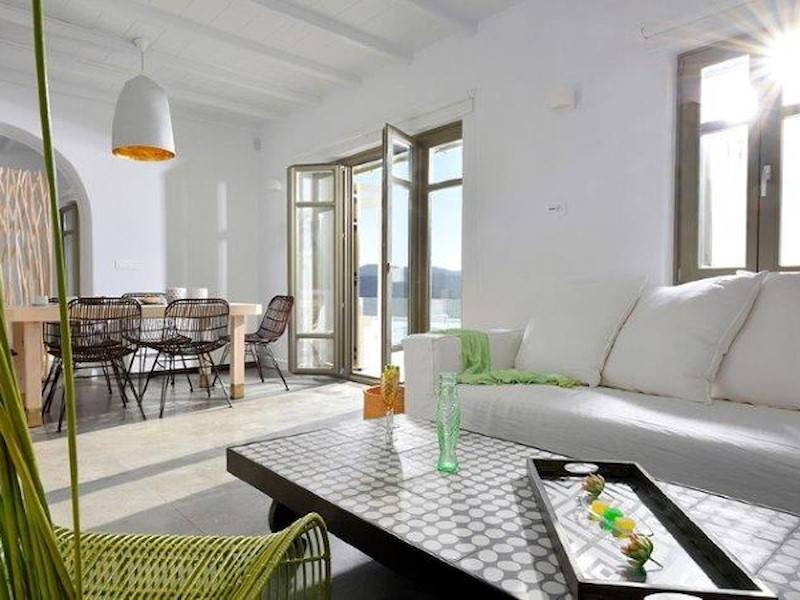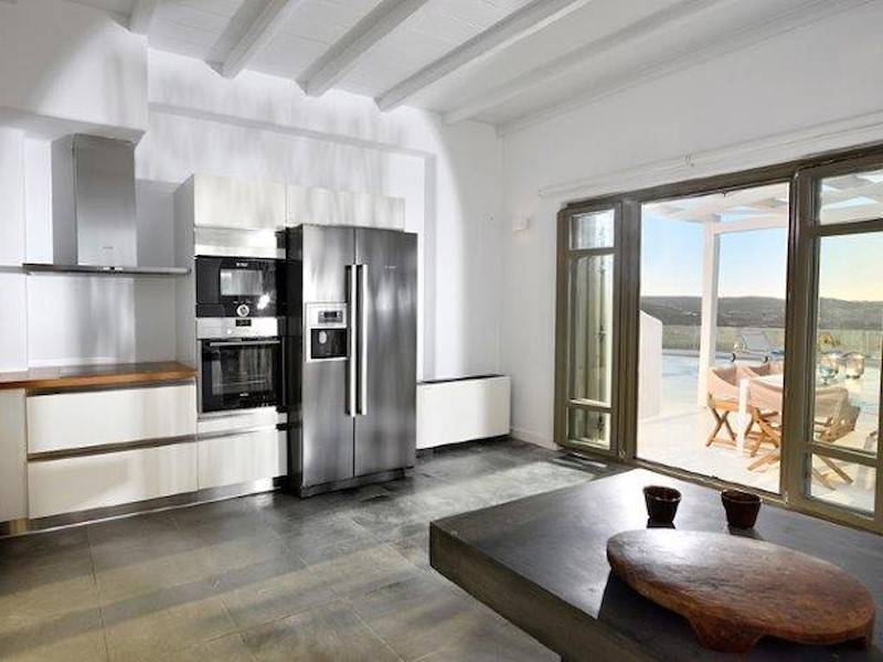 Die Villa befindet sich zusammen mit einigen anderen Villen an einem sicheren Ort in der Nähe einer wunderschönen Bucht im Norden von Mykonos, in der Nähe des trendigen Strandes Ftelia. Die Kombination des typisch griechischen Baustils der schneeweißen Villa mit ihren hellblauen Fensterläden, dem modernen, eleganten Dekor, der weitläufigen Terrasse und dem großen Infinity-Pool mit beeindruckendem Blick über die Insel und die Ägäis: alles ideale Zutaten für die perfekter griechischer Sonnenurlaub.