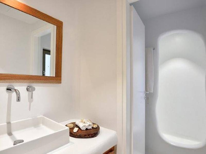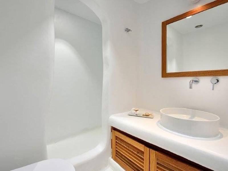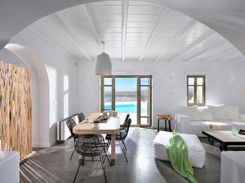 Die Villa Ark auf der Insel Mykonos hat eine Wohnfläche von 180 m² und befindet sich auf einem ca. 300m² großen Grundstück. Im Erdgeschoss der Villa befindet sich das geräumige und äußerst attraktiv eingerichtete Wohnzimmer mit Esszimmer, einer voll ausgestatteten offenen Küche und einer Gästetoilette . Von allen Wohnbereichen aus haben Sie durch Schiebetüren Zugang zu den offenen Terrassen und der sonnenverwöhnten Terrasse, einem schattigen Essbereich, dem Infinity-Pool, dem Whirlpool (auf der Insel Mykonos einzigartig!), ein Lagerhaus und einem privaten Parkplatz.