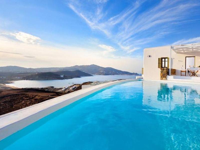 Diese großartige Villa liegt oben auf einem Berg und ermöglicht einen fantastischen Blick über die beeindruckende Küste und das blaue ägäische Meer.