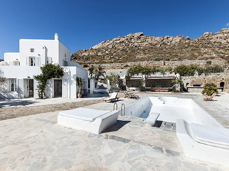 Der spektakuläre private Pool ist von einer Natursteinterrasse mit bequemen Sonnenliegen, ungenutztem Naturgelände und einem atemberaubenden Blick auf die Ägäis umgeben: alles Zutaten für die perfekte Oase!