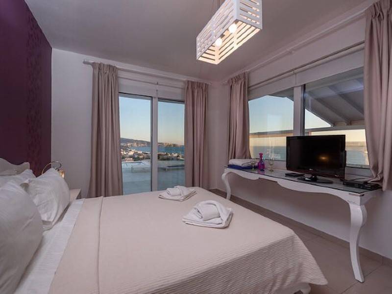 Villa Ella bietet drei geräumige Schlafzimmer, eins ist im Erdgeschoß Barrierefrei, mit den Premiumprodukten von COCO-Mat`s 3-Lagen-Betten (1.60 m x 2.00 m), jeweils 4 angenehm weiche und anschmiegsame Kopfkissen in verschiedenen Härtegraden, angrenzend jeweils die geräumigen Ensuite Duschbäder , mit Regentropfendusche und Handbrause, Doppelwaschbecken, Kosmetikspiegel, Tageslicht, Flatscreen SAT-TV, drei eigene Balkone, W-LAN im Wohnbereich und im Aussenbereich , flüster Klimaanlagen , Zentralheizung, große Panorama Schiebetüren mit Moskito Screen,
