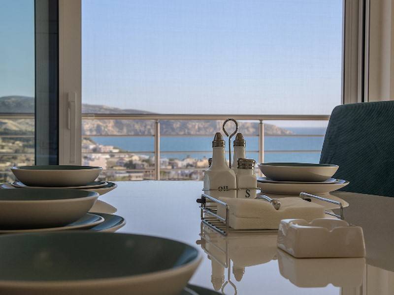 Große Wohnküche mit Gastro-Kühlschrank aus Edelstahl, Kaffeemaschine, Espressomaschine von Illy, Mikrowelle,Toaster, elektrische Saftpresse, Pitsos Backofen und Cerankochfeld, Sie finden alle erdenklichen Annehmlichkeiten in dem Ferienhaus Villa Ella.