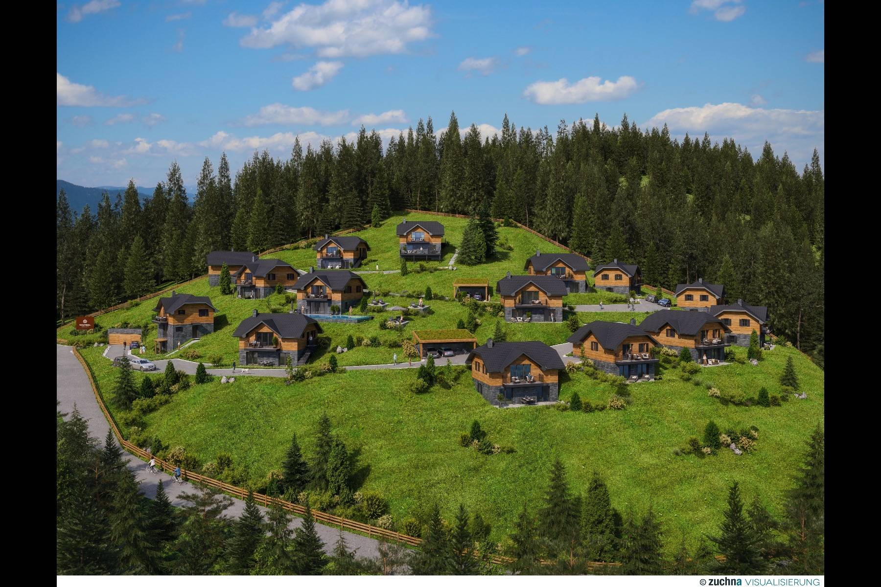 Insgesamt gibt es 11 Bergchalets für je 4 Personen. Demnach sind die Chalets auch perfekt für größere Gruppen für bis zu 44 Personen.