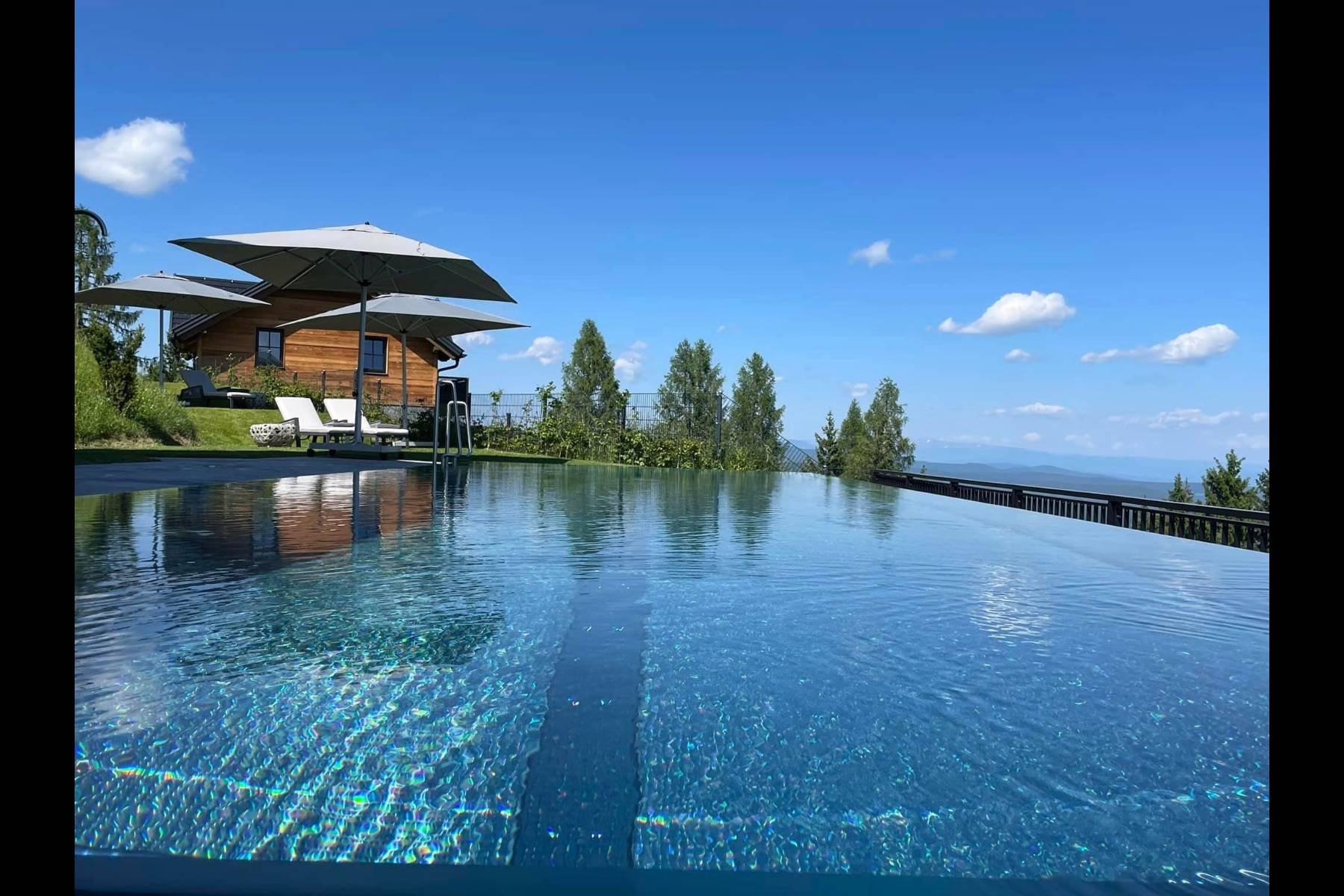 Das Beste kommt (nicht immer) zum Schluss: Ein Resorteigenes Wellness- und Fitness- Haus steht unseren Gästen kostenlos zur Verfügung. Hier kann man ausgiebig entspannen, sich im Fitnessraum fit halten, oder im ganzjährig beheizten Infinity- Pool schwimmen und dabei den phänomenalen Panoramablick über die Alpenlandschaft schweifen lassen. Auf optionalen Wunsch kann man sich einer Teil- oder Ganzkörpermassage in Tiefenentspannung versetzen lassen. Der ideale Urlaub in Kärnten.