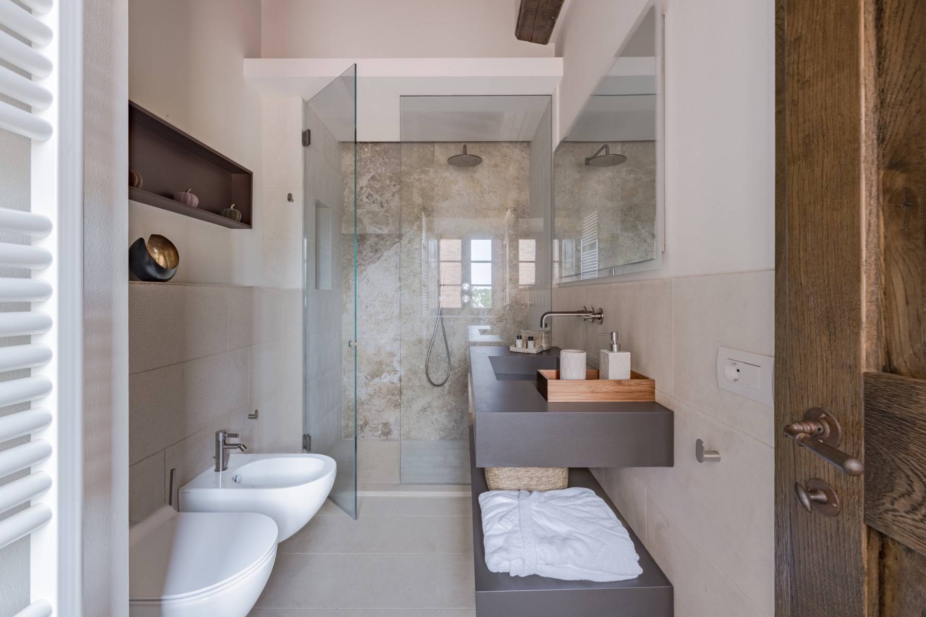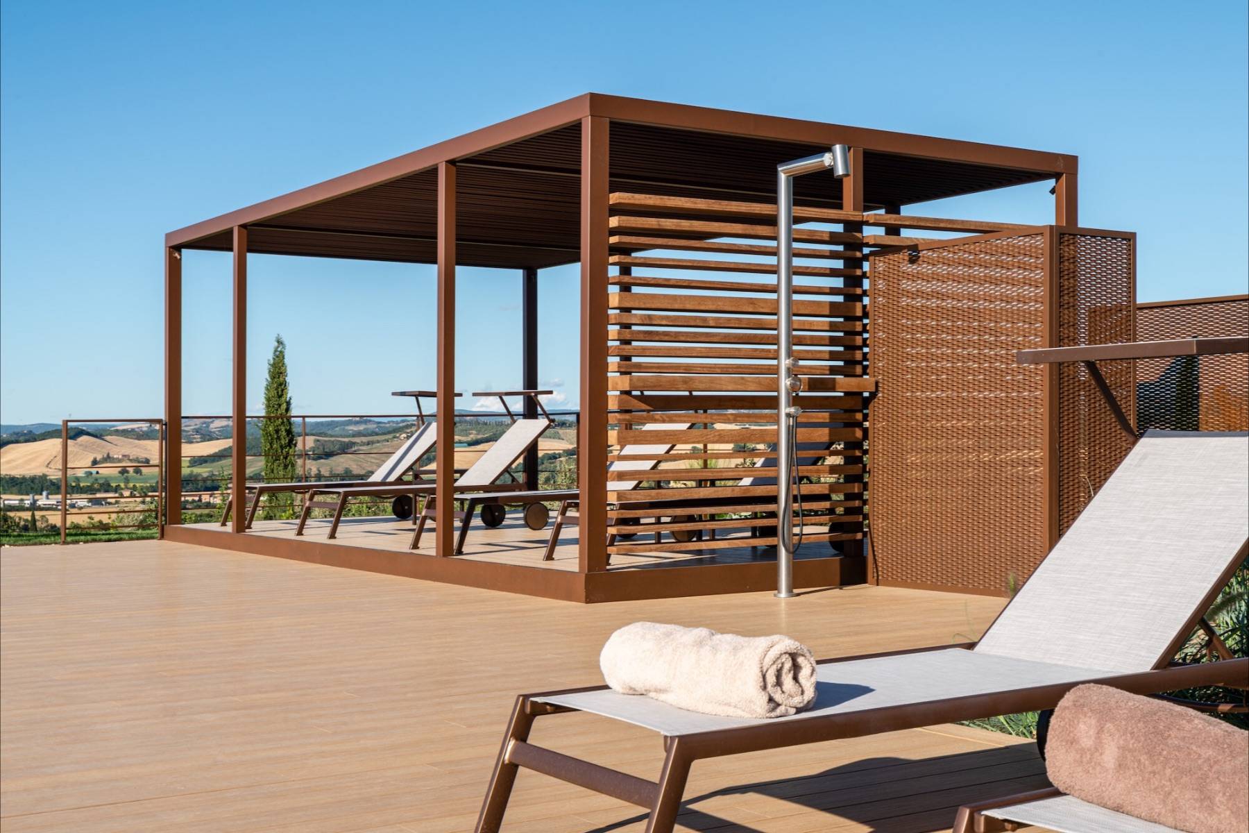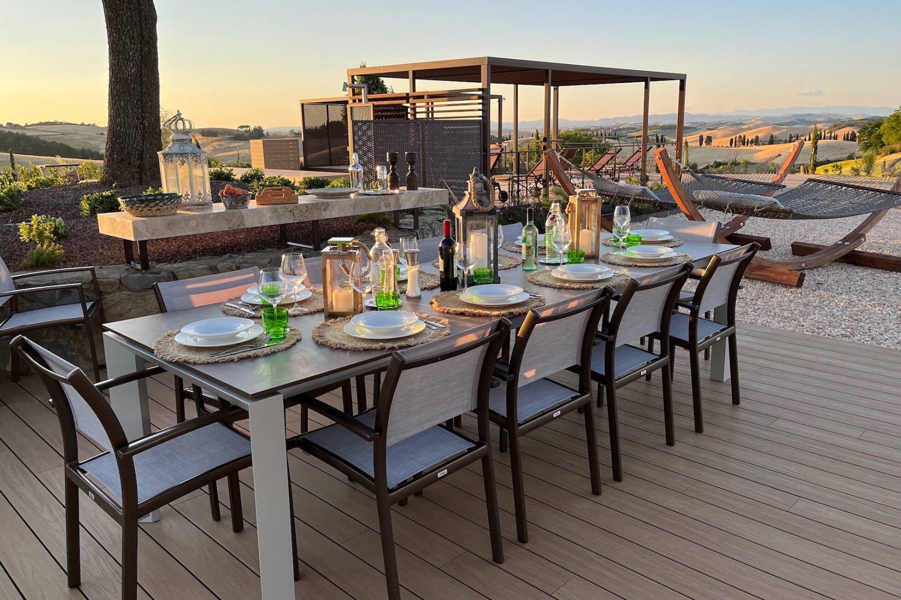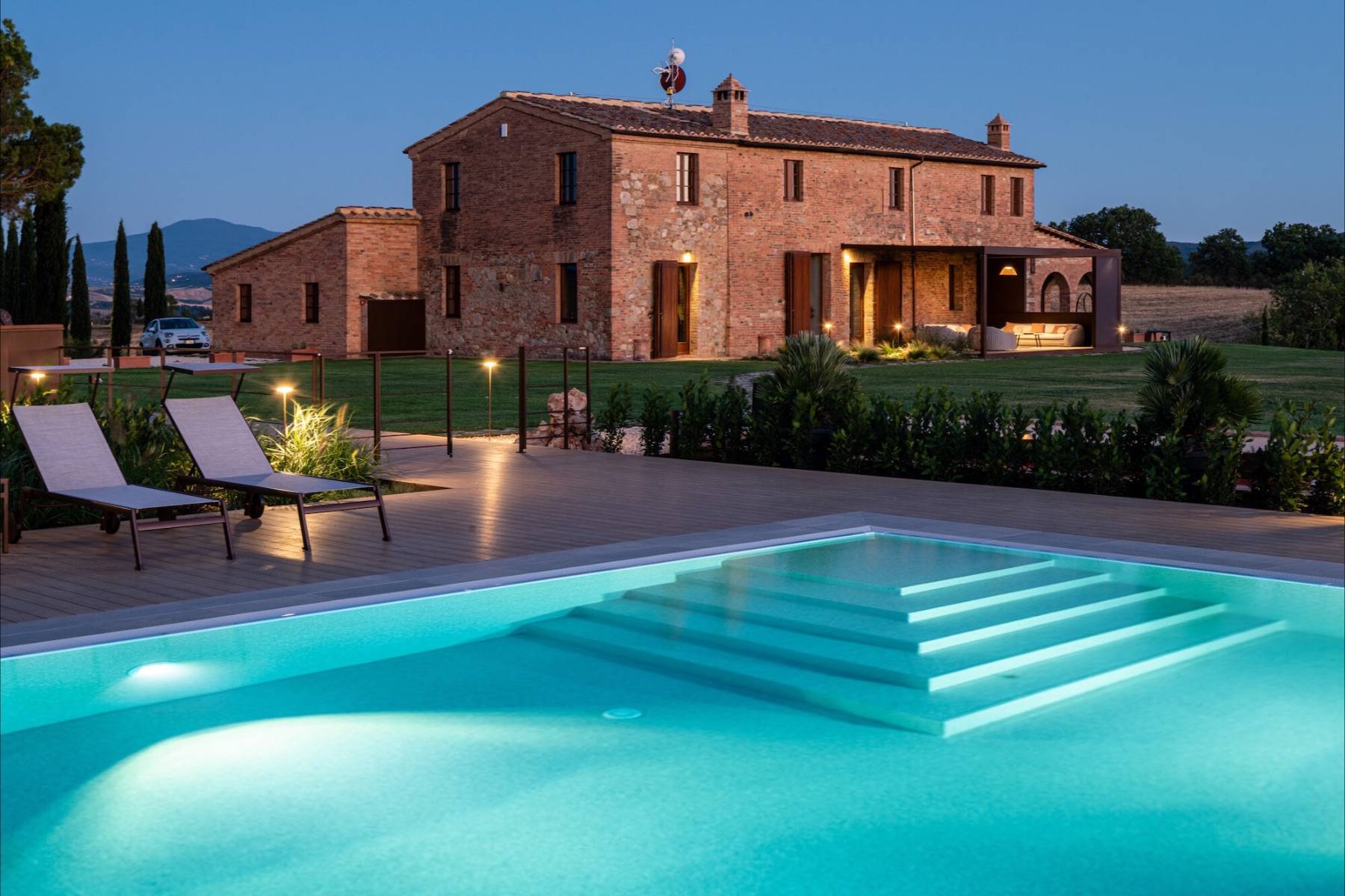 Neben dem bezaubernden Panorama, der Ruhe und der Entspannungsmöglichkeiten in der Villa lädt die Umgebung zu Ausflügen und weiteren Erlebnissen ein. Das Val d'Orcia bietet traumhafte Ausflugsmöglichkeiten zu einigen der charmantesten Orten der Toskana wie Pienza, Montalcino oder Bagno Vignoni.