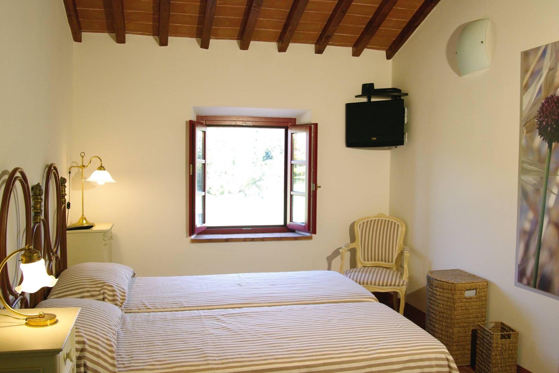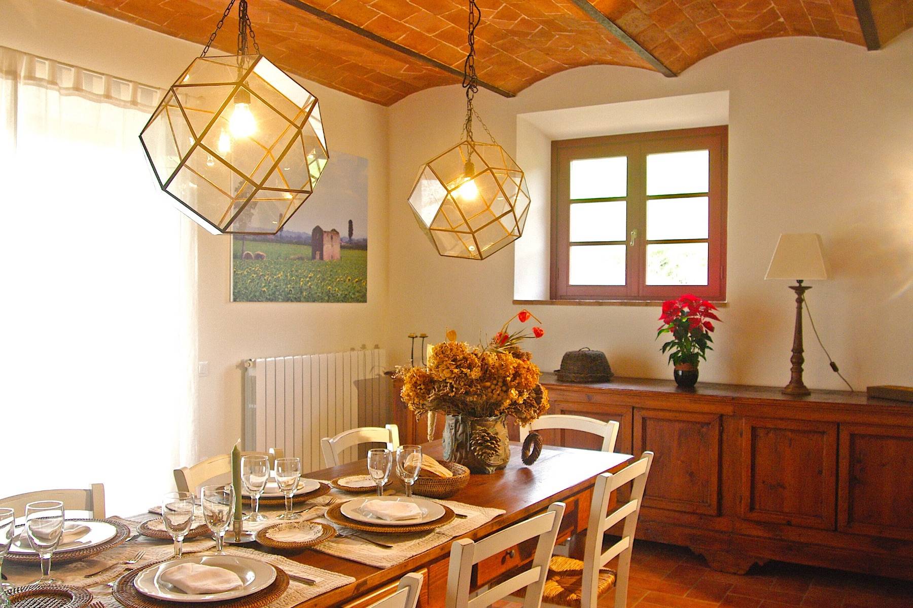 In der wundervollen und hügeligen Landschaft der Toskana, befindet sich die Villa Paganini in Casale Marittimo in einer wunderbaren Alleinlage. Das mit Steinen versehene Haus beherbergt insgesamt vier Schlafzimmer und vier Badezimmer und gewährleistet somit ausreichend Privatsphäre für alle Gäste. Nicht nur das Gebäude ist ein wahrer Hingucker, sondern auch die Gewölbedecke aus Backsteinen in der Küche und im Essbereich.