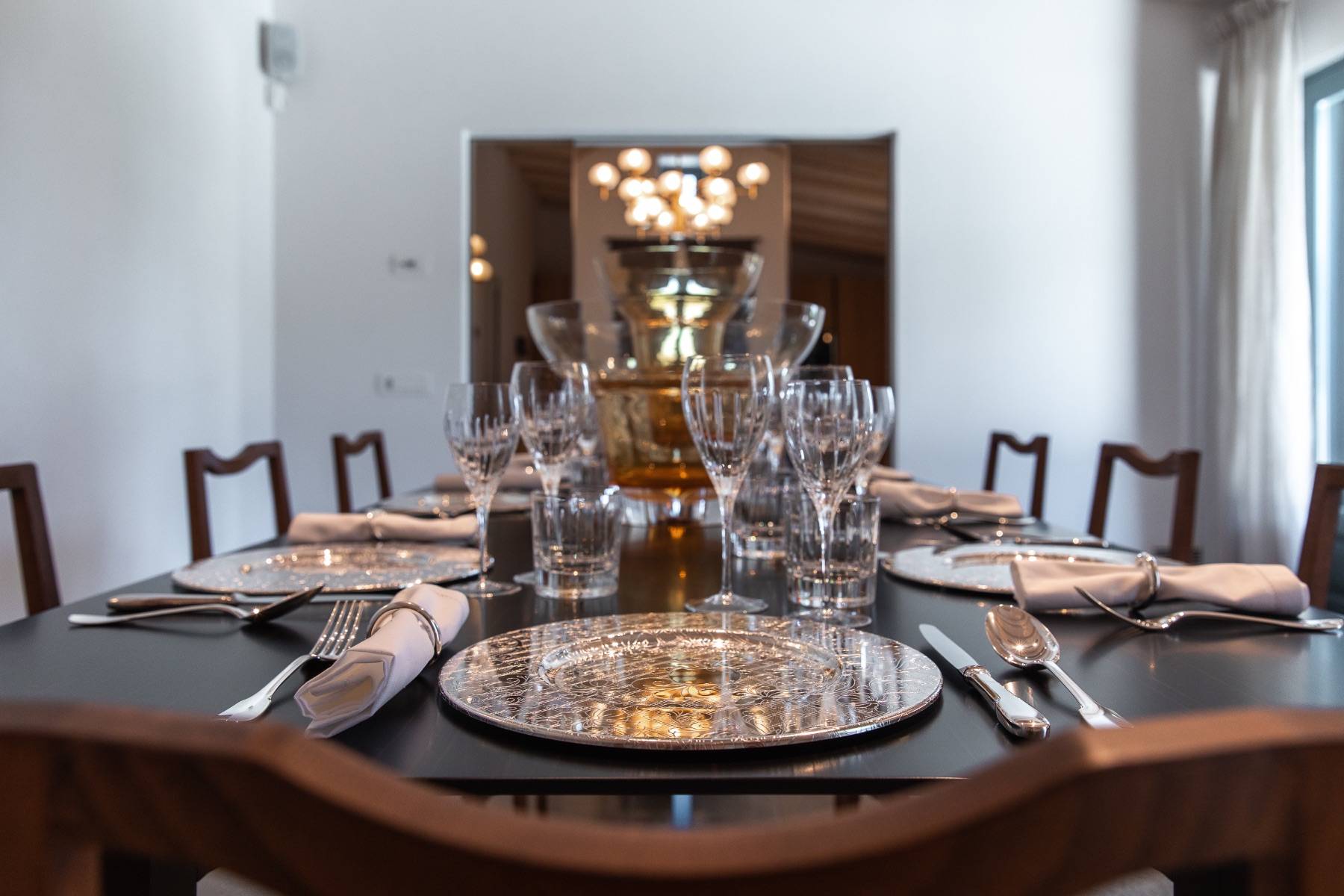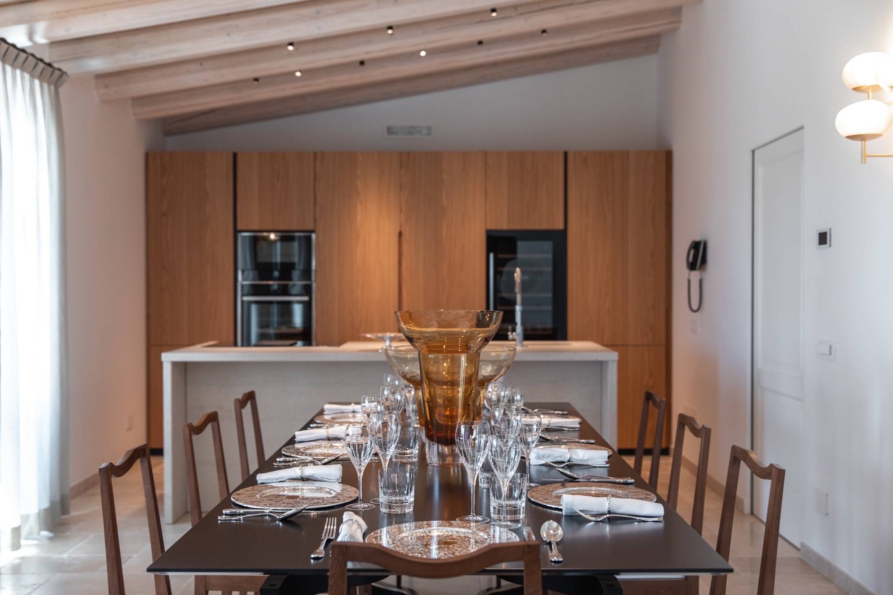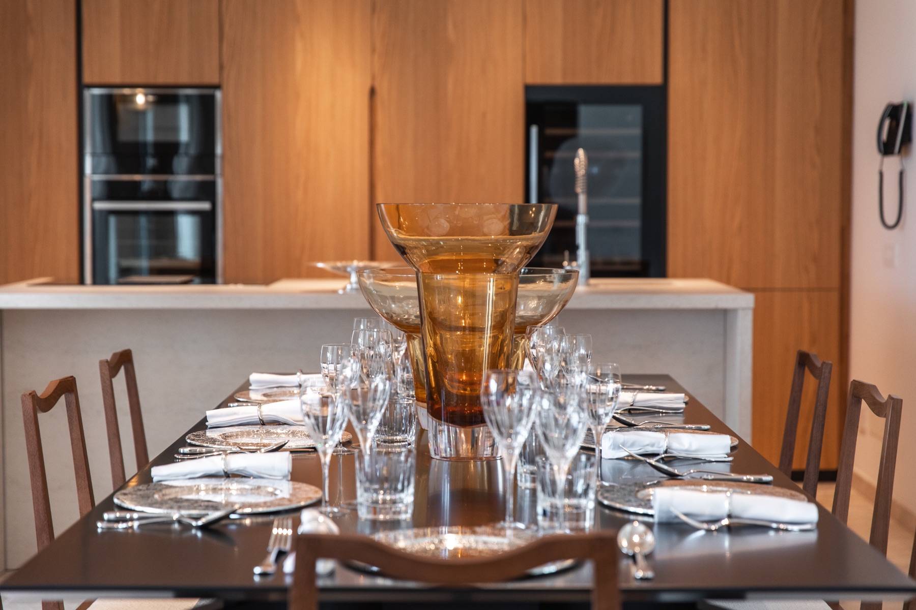 Die Küche ist bestens ausgestattet und lädt zu einem edlen Dinner ein. Hochwertige Elektrogeräte, ein Weinkühlschrank und Besteck von Cristofle untermauern die Wertigkeit dieser extravaganten Villa.
