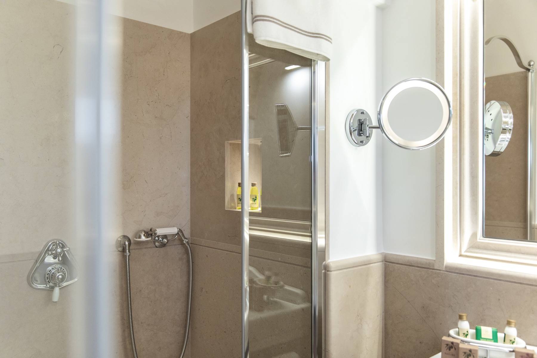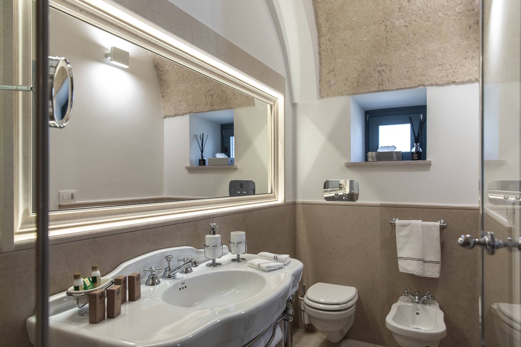 Eine moderne Villa in historischem Gemäuer mit Pool und Meerblick