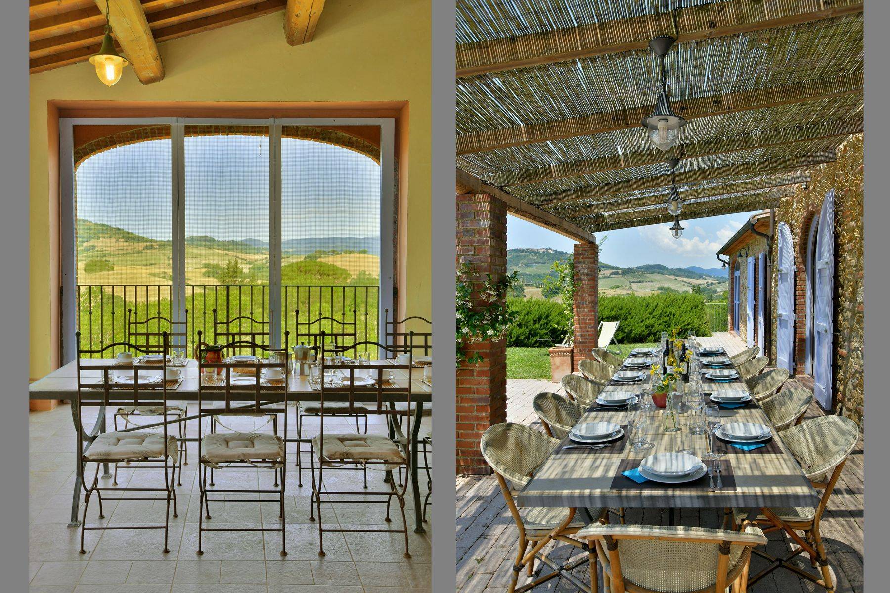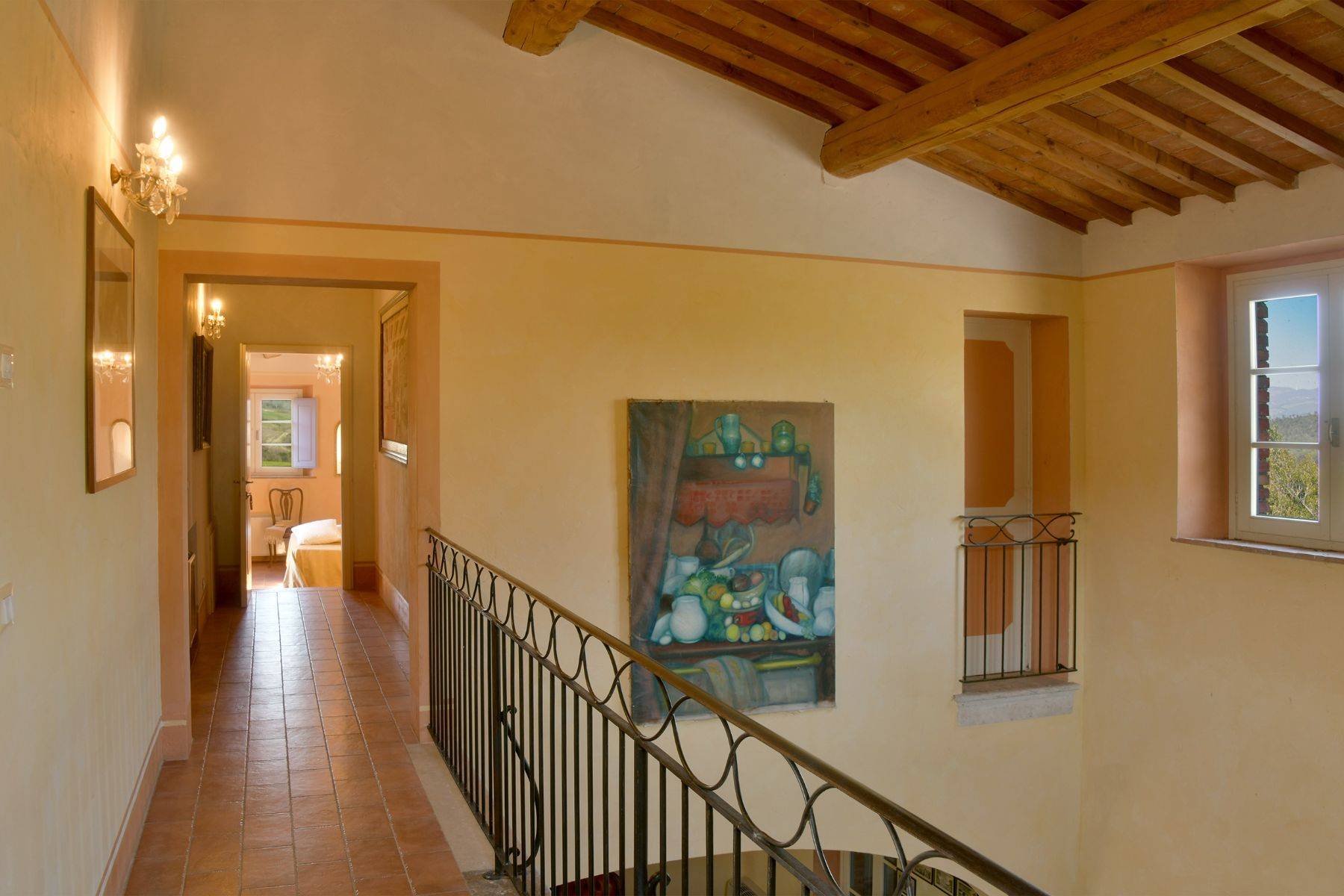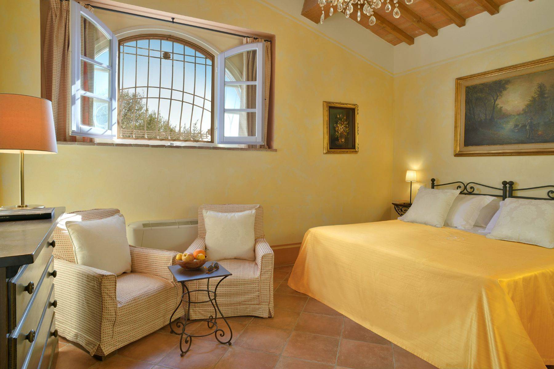 Verteilt auf zwei Wohnebenen mit 6 Schlafzimmern und dazugehörigen Badezimmern, bietet diese schöne toskanische Villa für bis zu 12 Personen Platz. Zwei große Wohnräume, ein Steinkamin, eine sehr gut ausgestattete Küche deren Zugang zur überdachten Terrasse mit großem Esstisch verläuft, Himmelbetten und Waschbecken aus Naturstein charakterisieren diese Villa mit Pool, das für einen traumhaften Urlaub in der Toskana steht.