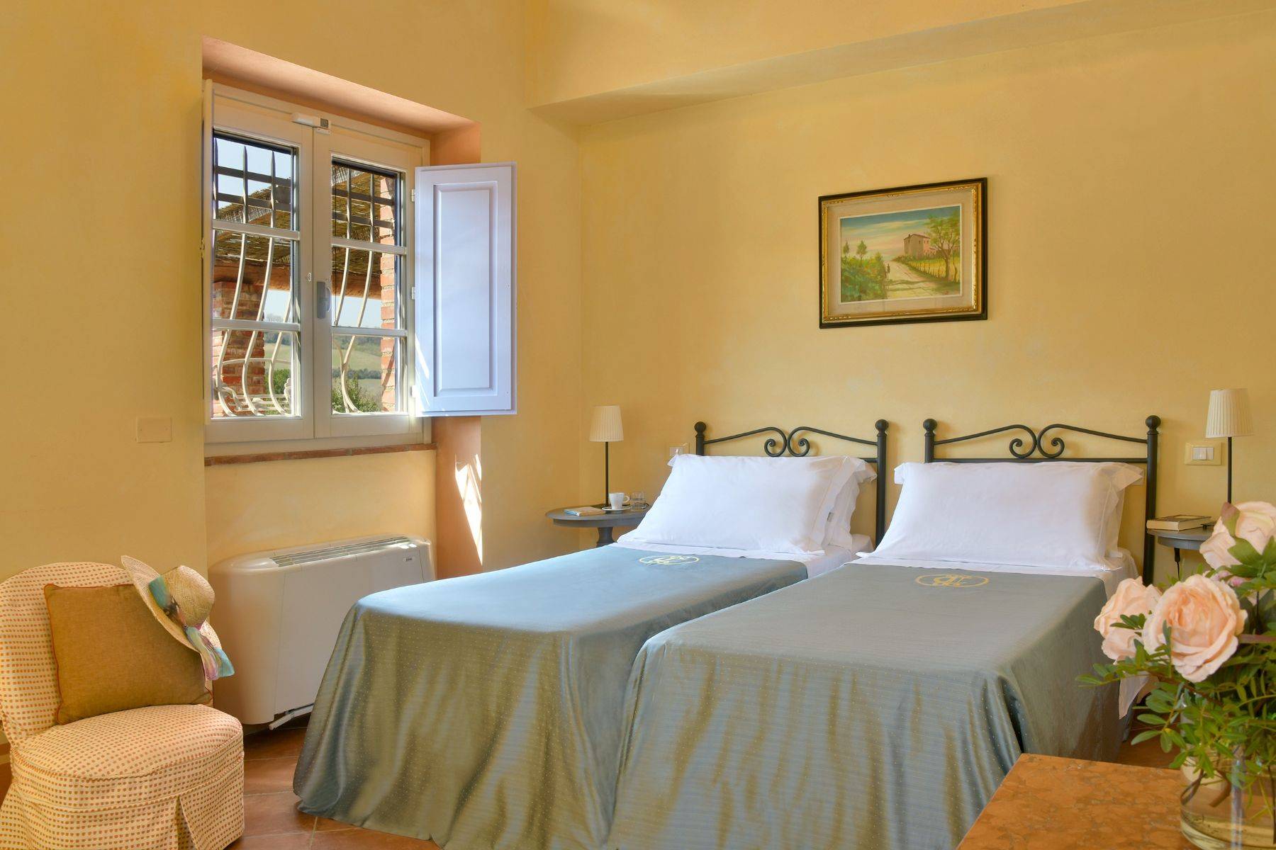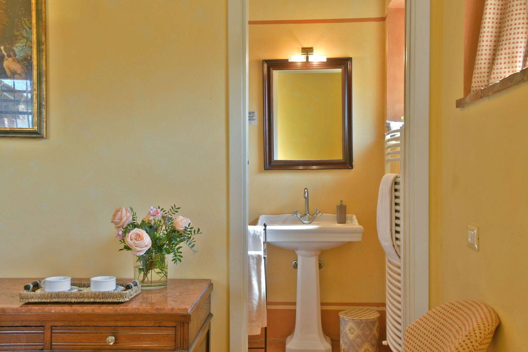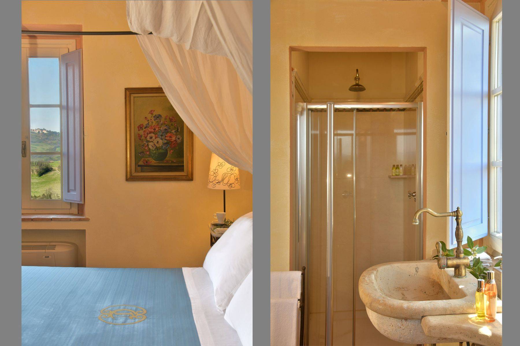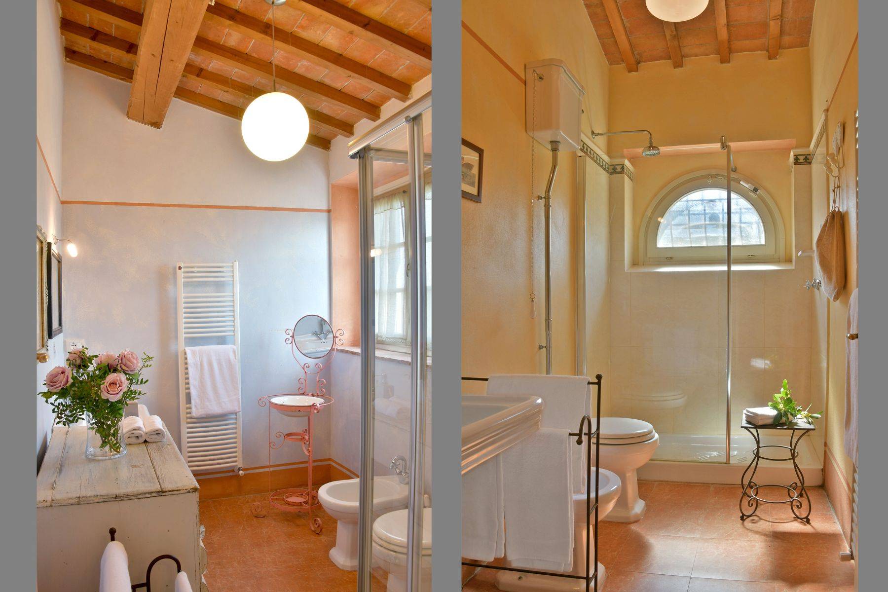 Verteilt auf zwei Wohnebenen mit 6 Schlafzimmern und dazugehörigen Badezimmern, bietet diese schöne toskanische Villa für bis zu 12 Personen Platz. Zwei große Wohnräume, ein Steinkamin, eine sehr gut ausgestattete Küche deren Zugang zur überdachten Terrasse mit großem Esstisch verläuft, Himmelbetten und Waschbecken aus Naturstein charakterisieren diese Villa mit Pool, das für einen traumhaften Urlaub in der Toskana steht.