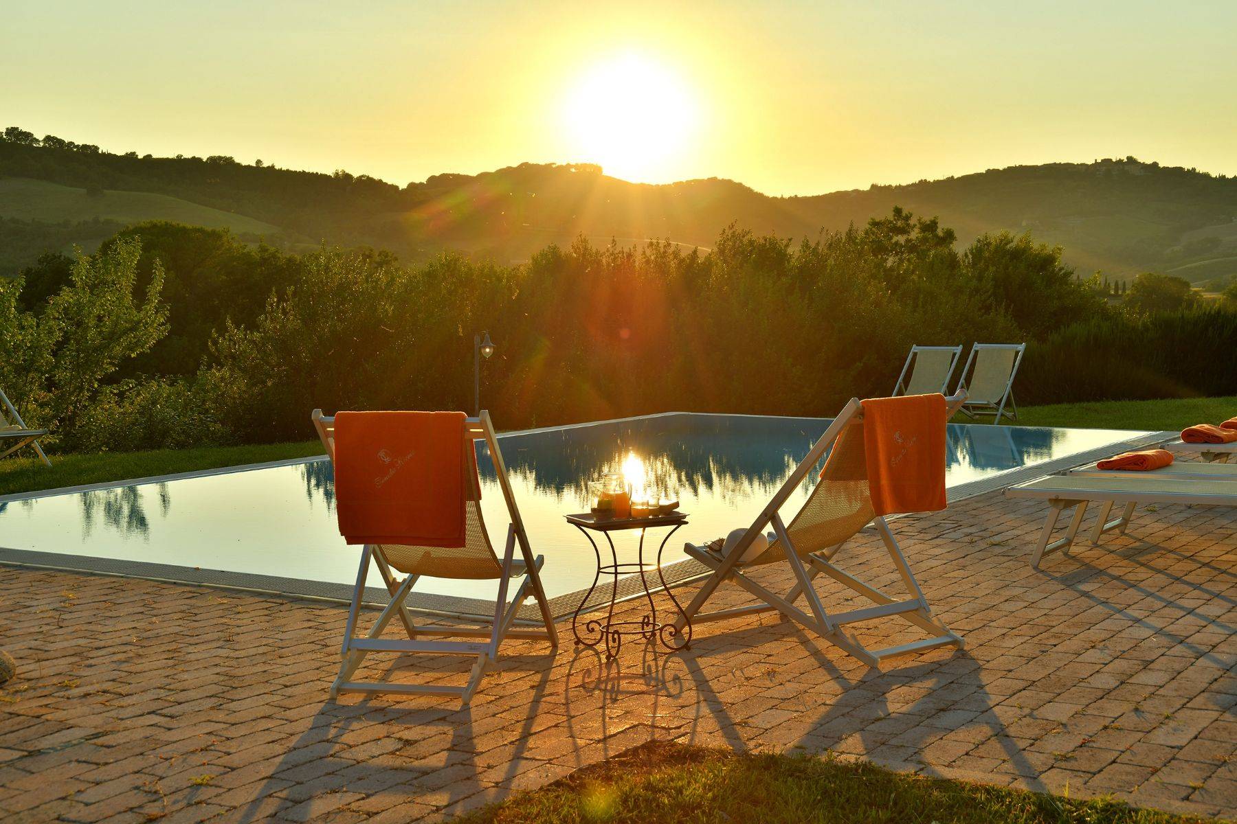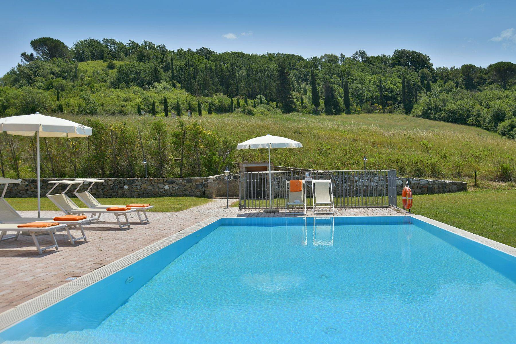 Im Aussenbereich befinden sich ein Aussengrill, ein großer und optional beheizbarer Pool mit Blick auf die zauberhafte toskanische Naturlandschaft, eine Aussendusche, mehrere Sonnenliegen und vieles mehr!