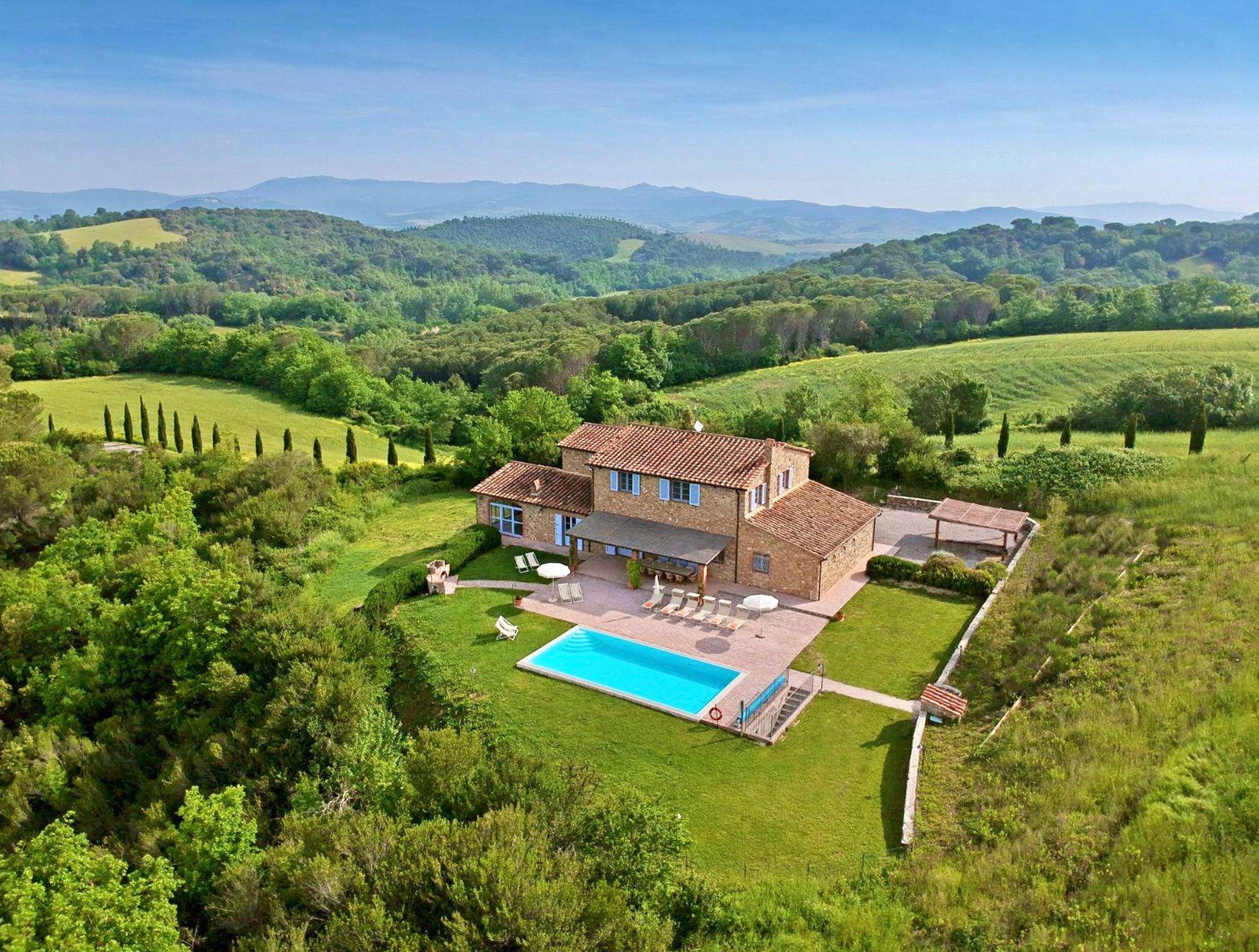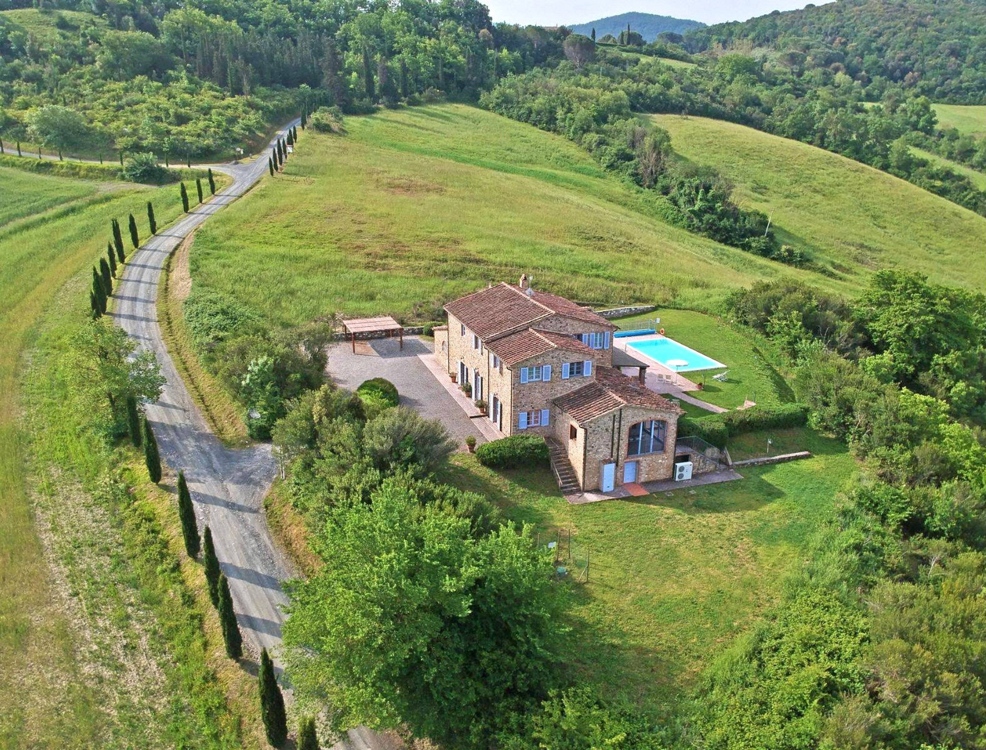 Dieses bezaubernde toskanische Landhaus mit Pool befindet sich auf einem leichten Hügel inmitten eines 650 Hektar großen Grundstücks, auf dem sich noch 15 weitere toskanische Bauernhäuser mit Pool befinden. Dieses Stückchen Erde der Toskana ist reich an Geschichte, Kunst und landschaftlicher Schönheit, wo die Weinreben und Olivenhaine dominieren und die schönen Strände der Etruskischen Küste nur 15 km entfernt liegt.