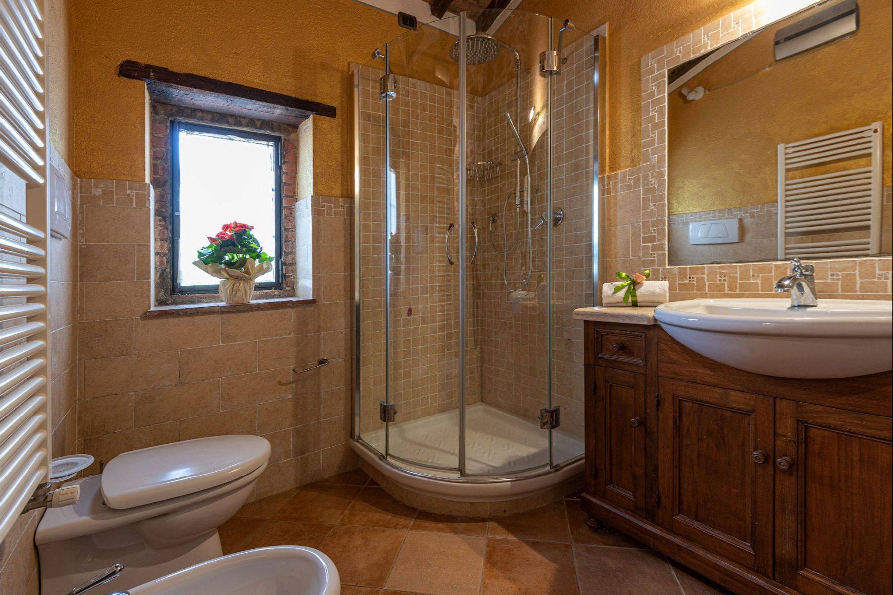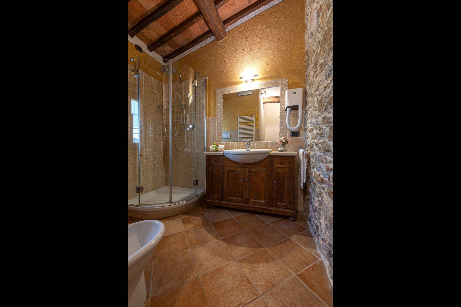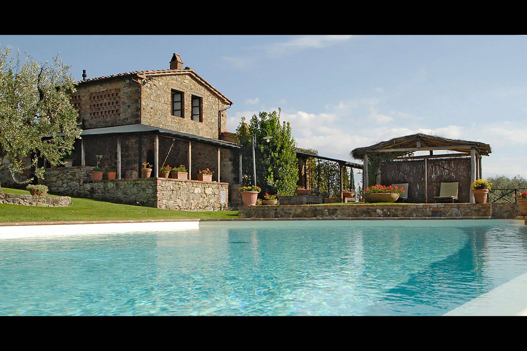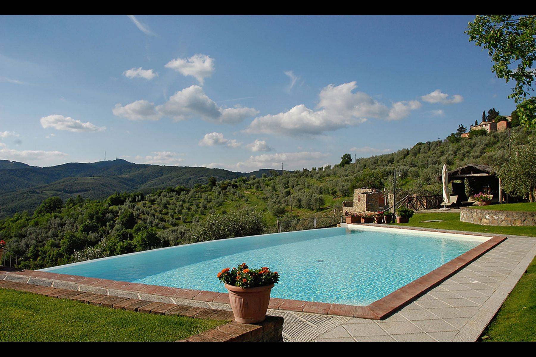 Die Wohnung verfügt über eine große Veranda mit Blick auf den Pool und das Chianti Berge, exklusiver Grill und Solarium am Schwimmbadrand.