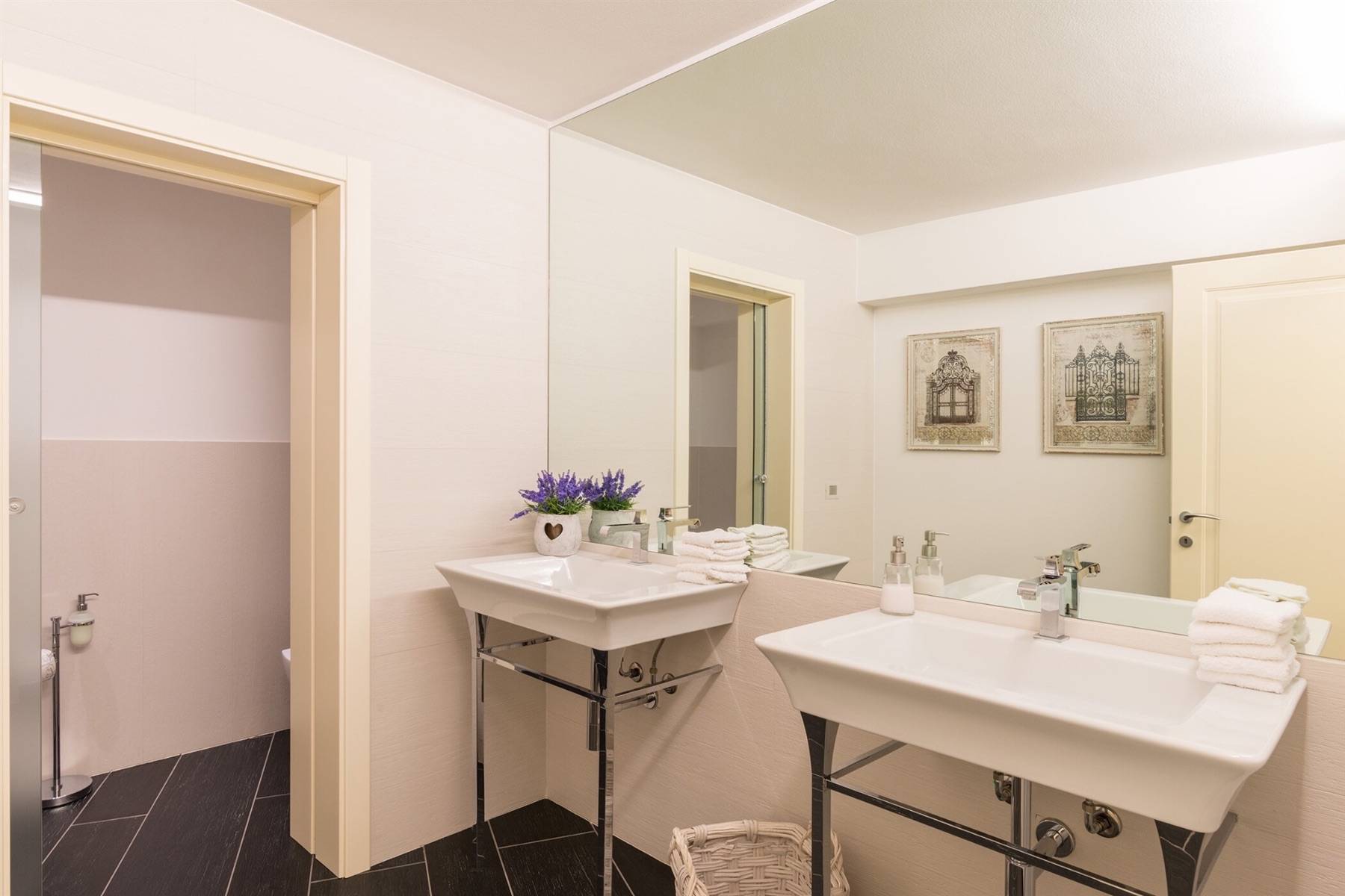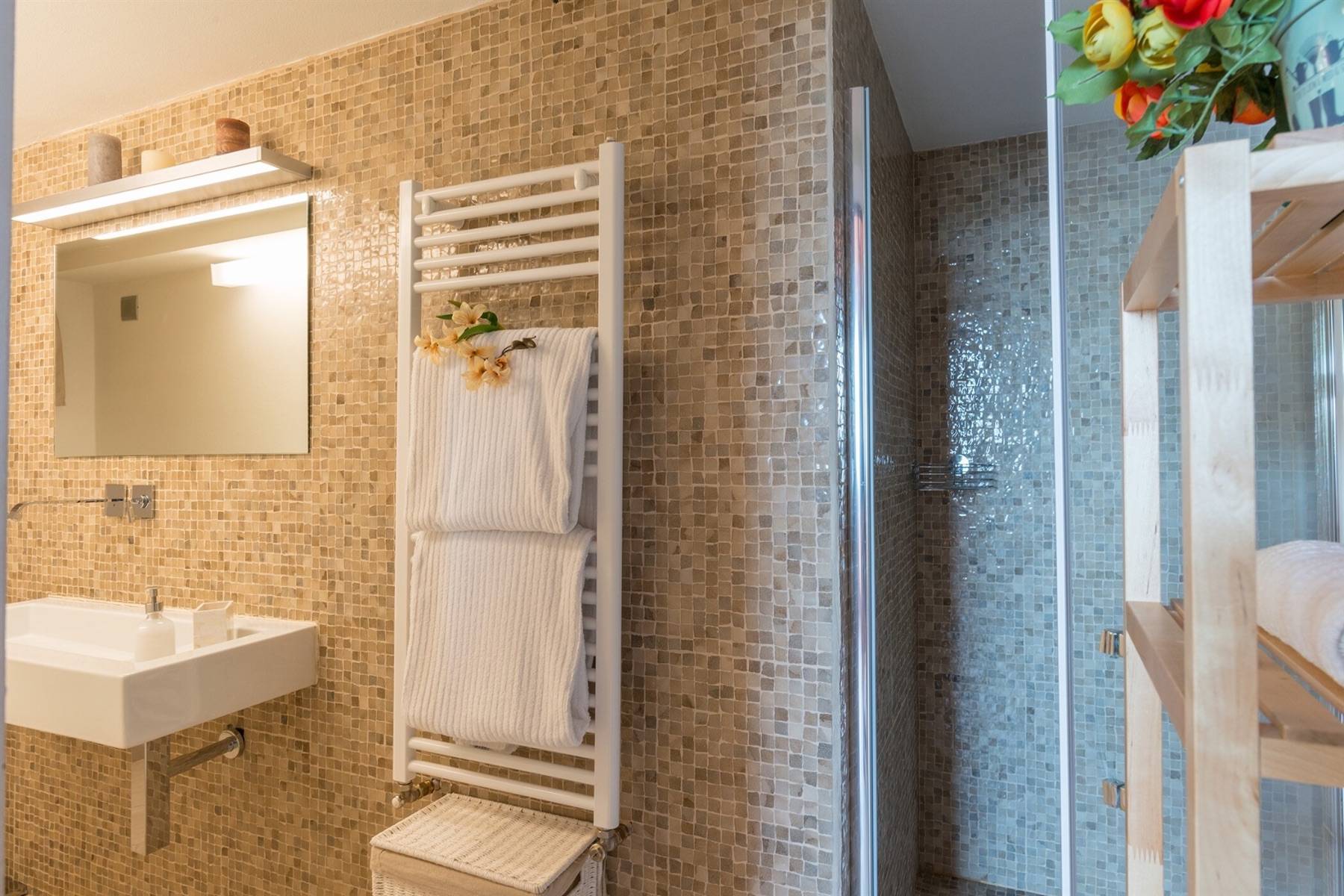 Darüber hinaus gibt es auf der ersten Etage zwei Doppelzimmer, beide mit eigenem Bad, eines mit Dusche und eines mit Whirlpool. Die Treppe führt weiter in den zweiten Stock mit einem Doppelzimmer mit Panoramabalkon und eigenem Bad mit Dusche und türkischem Bad und einem Zweibettzimmer - mit zusammenstellbaren Betten - mit eigenem Bad mit Dusche.