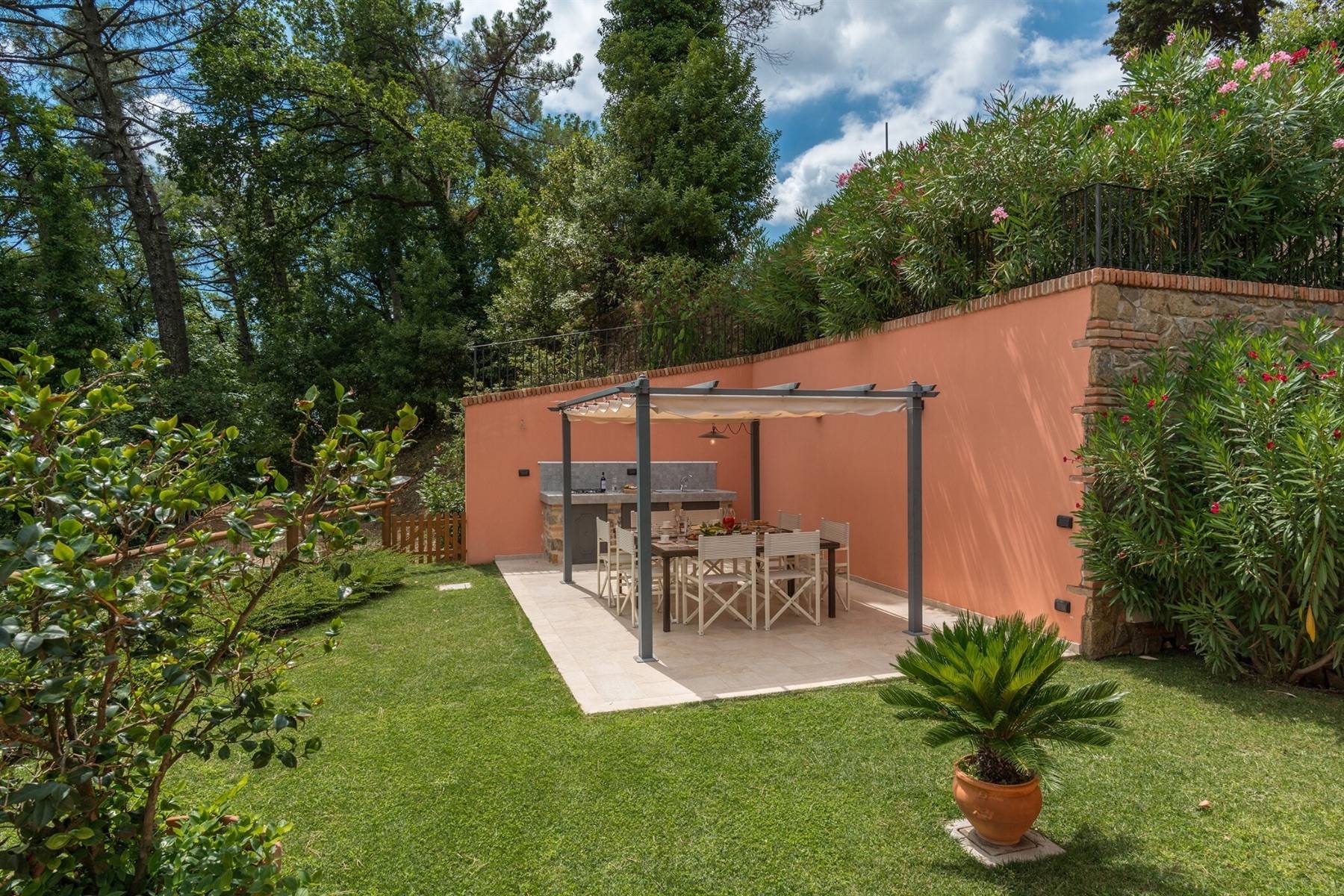 Der Park, der die Villa umgibt, erstreckt sich über die als Terrassen angelegten Bereiche am Hang, mit einem großen Parkplatz auf der untersten Ebene und erstreckt sich im oberen Bereich des Hangs bis zum Olivenhain und zum Waldgebiet - beide ideal für Spaziergänge