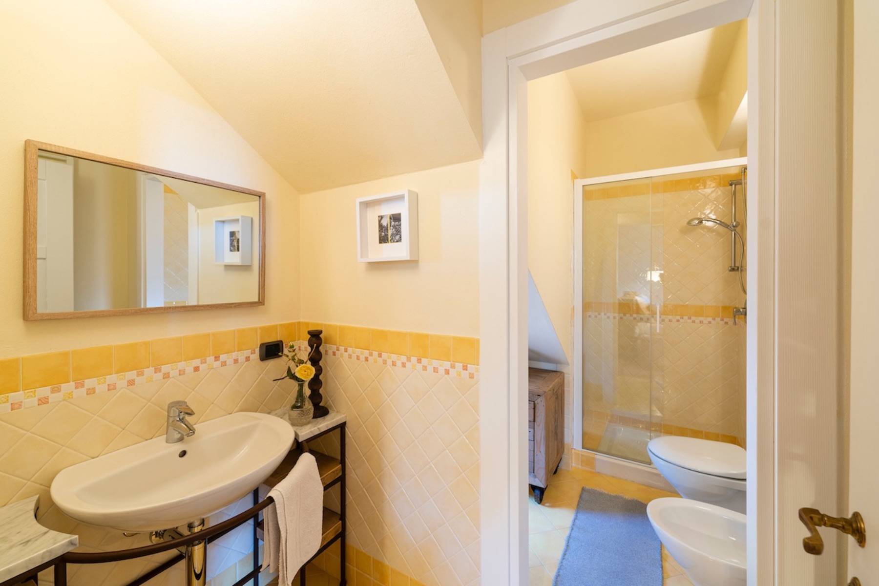 Im zweiten Stock gibt es einen weiteren Wohnbereich, ein Doppelchlafzimmer mit Doppelbett und ein Bad mit Dusche.