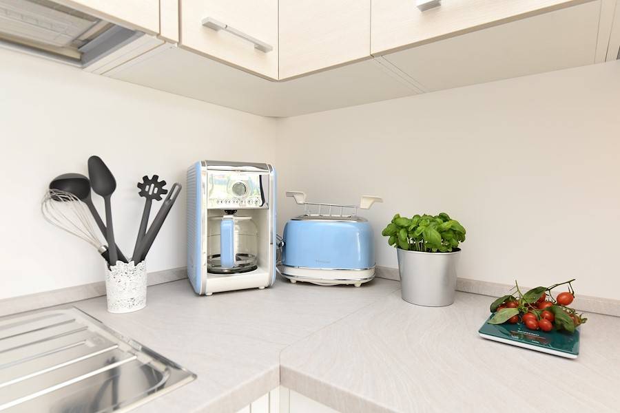 Die 4 Wohnungen Typ Lake liegen im Erdgeschoss des Hauses und bieten ausreichend Platz für bis zu 4 Personen. Die zwei separaten Schlafzimmer verfügen über jeweils ein gemütliches Doppelbett. Bettwäsche, fertig bezogen, ist pro gebuchter Personenanzahl für Sie im Preis inbegriffen. Die komplett ausgestattete Küche lässt der Kreativität beim Kochen keine Grenzen setzen. Die Wohnungen verfügen über eine überdachte private Terrasse: hier lassen die Feriengäste den Tag entspannt mit einer Tasse Kaffee beginnen oder abends bei einem Glas Rotwein passieren, Gartenmöbel sind vorhanden.