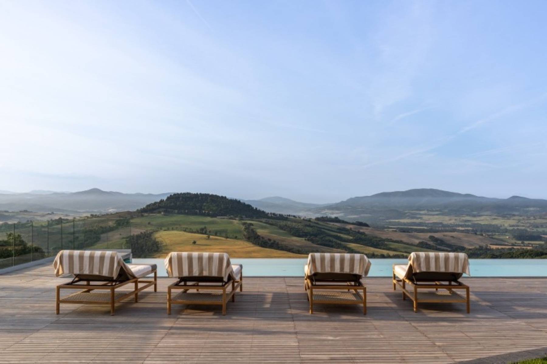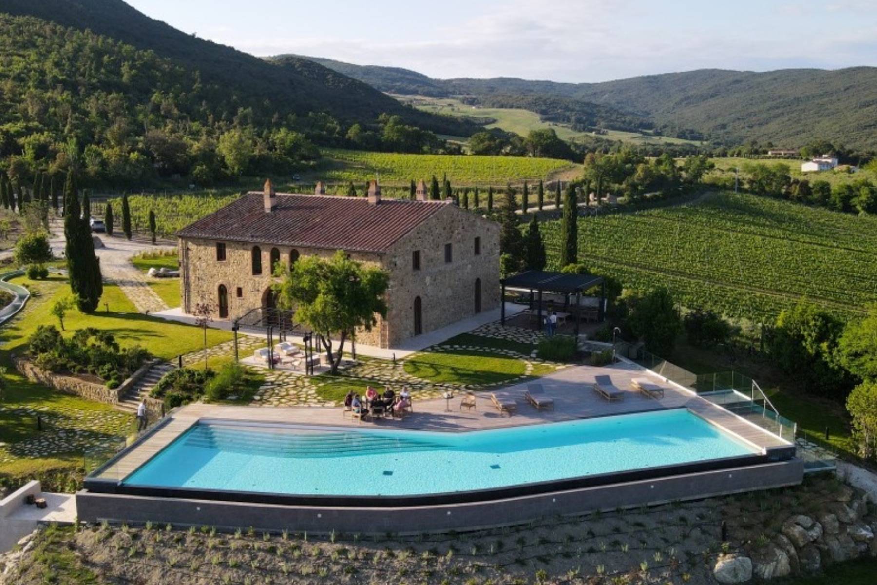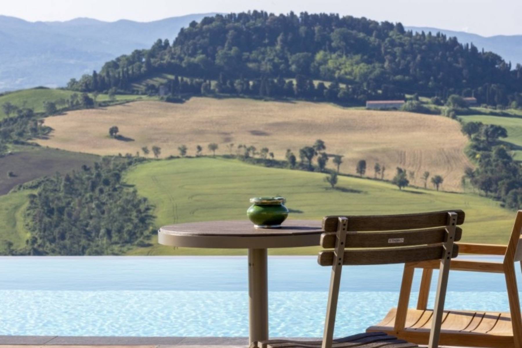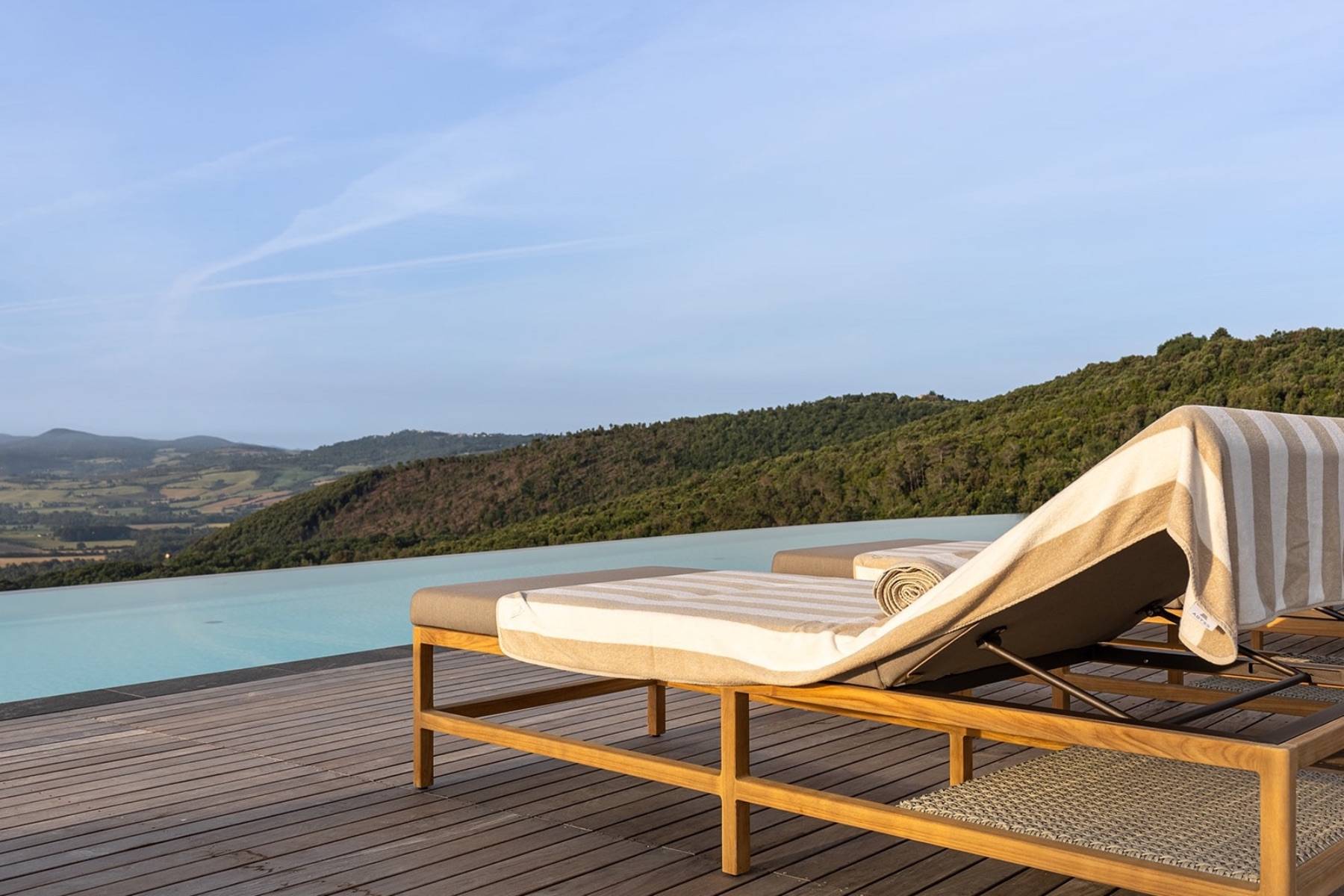 Die Villa besticht durch die Liebe zum Detail, die hochwertige Ausstattung sowie die ausserordentlich schöne Lage in typische Toskanischer Hügellandschaft und die noch gute Nähe zur Küste auf einem 18 Hektar grossen Grundstück mit Wald und Wein.