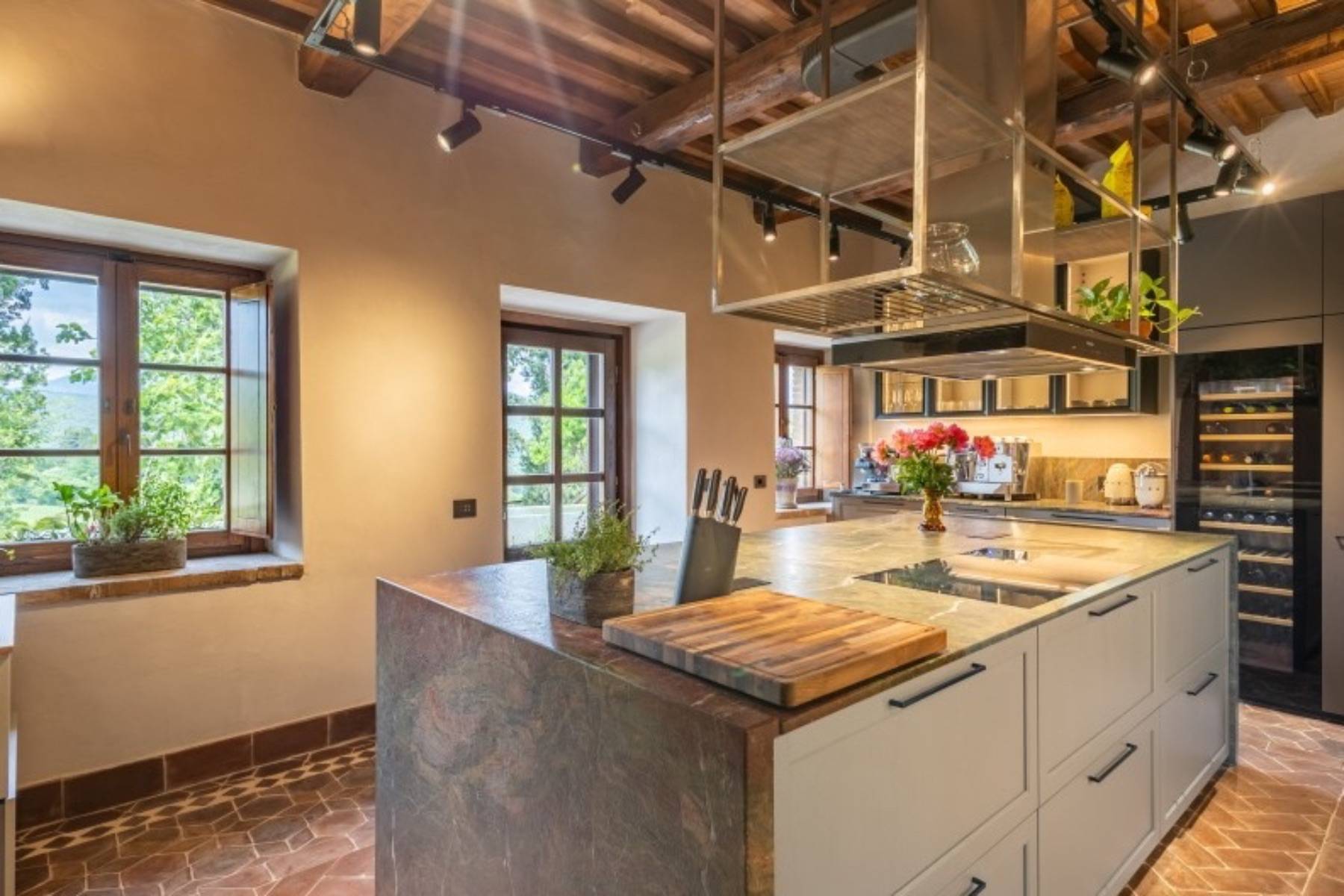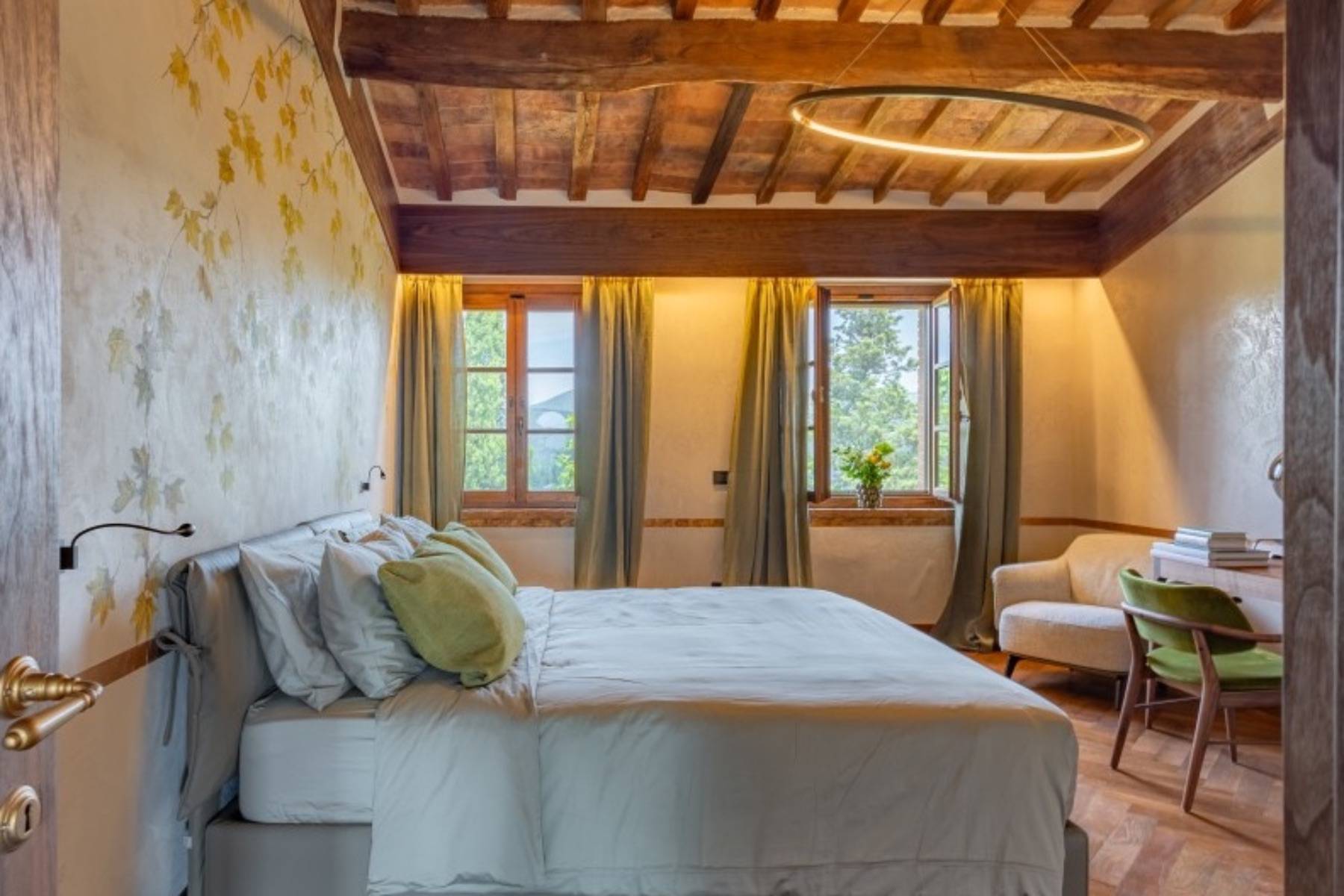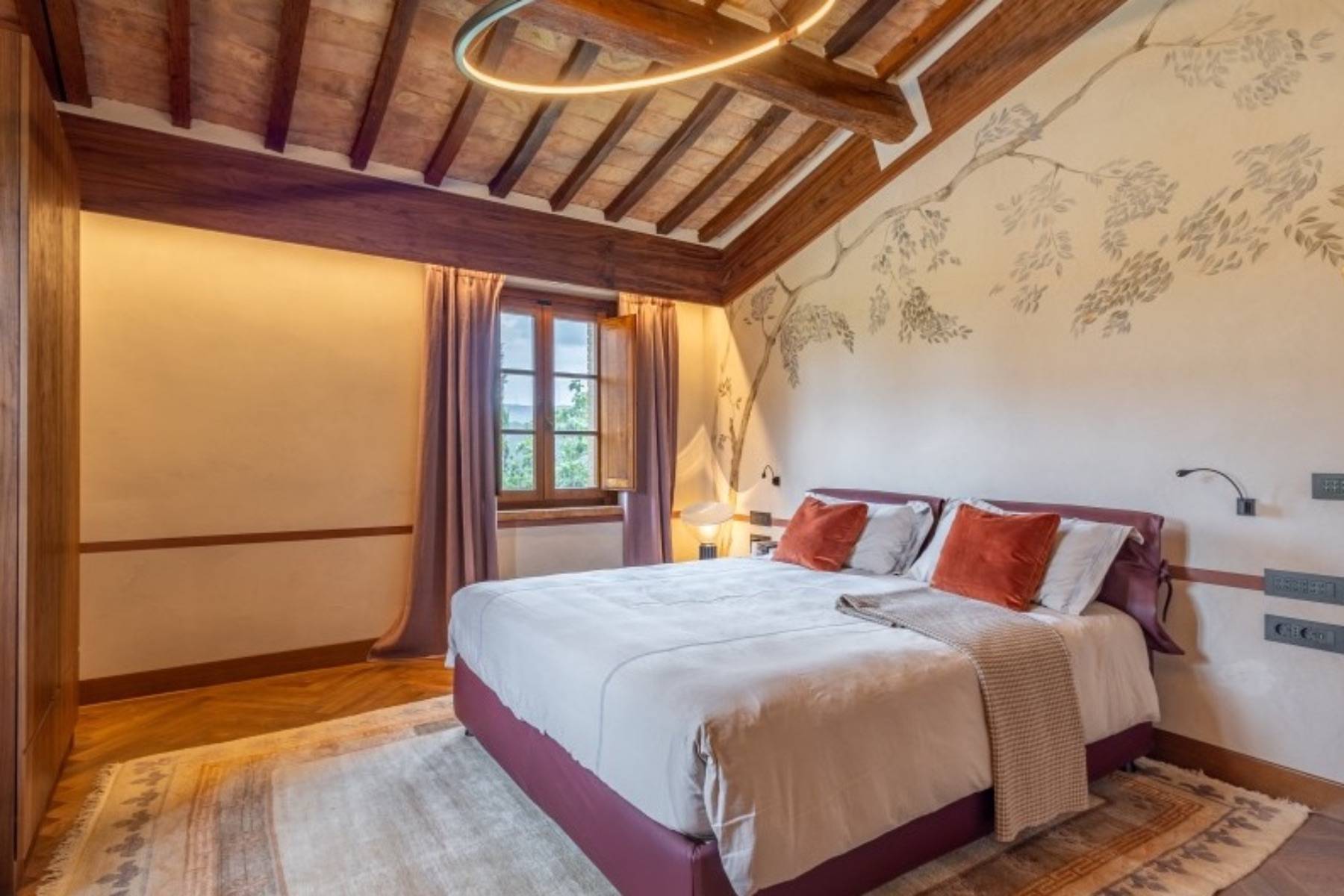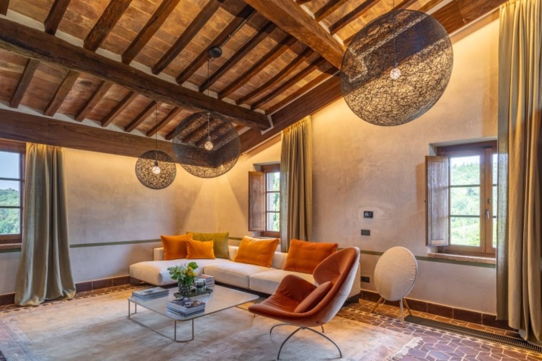 Dieser über 300 Jahre alte Palazzo wurde aufwendig und sorgfältig restauriert. Das Ergebnis ist die Luxus Villa Cardinale in Riparbella, die in einer Alleinlage in der hügeligen Landschaft der Toskana thront.