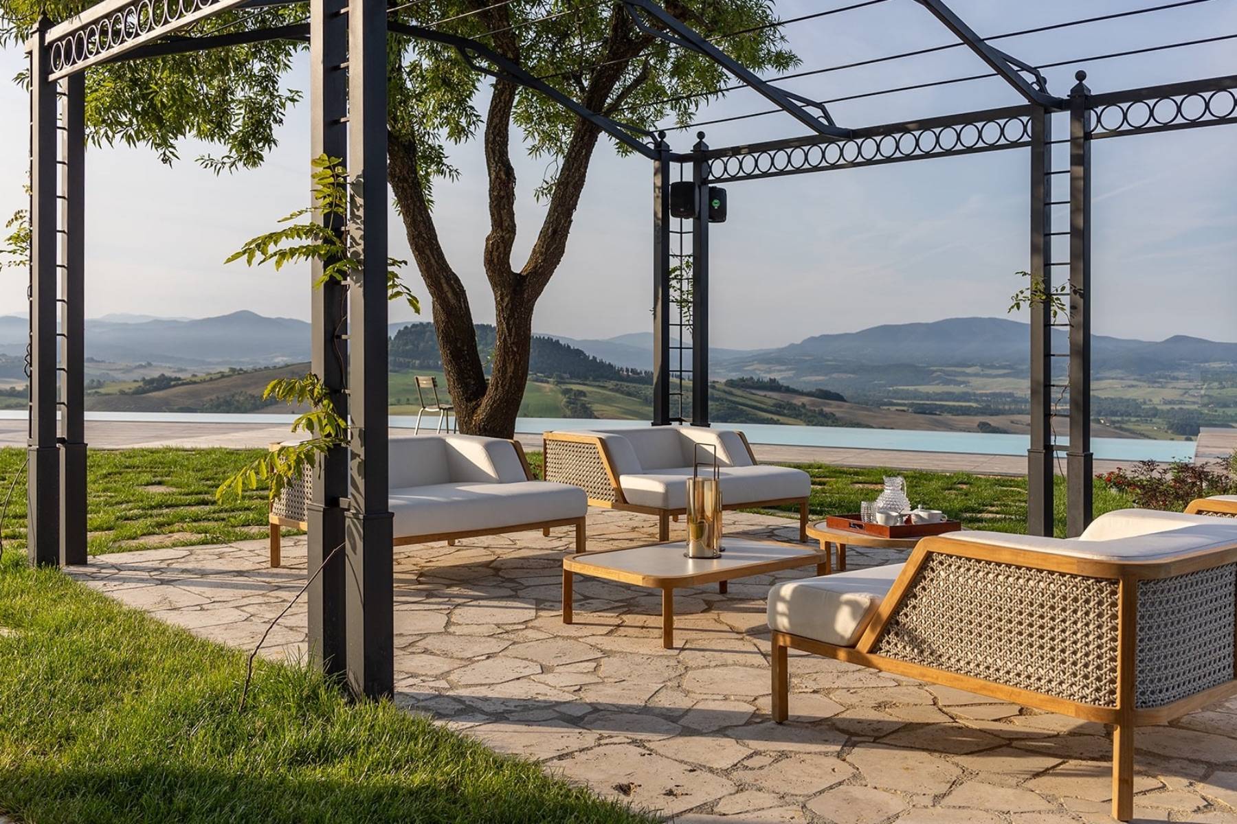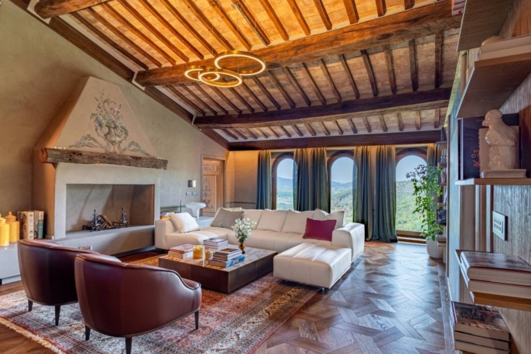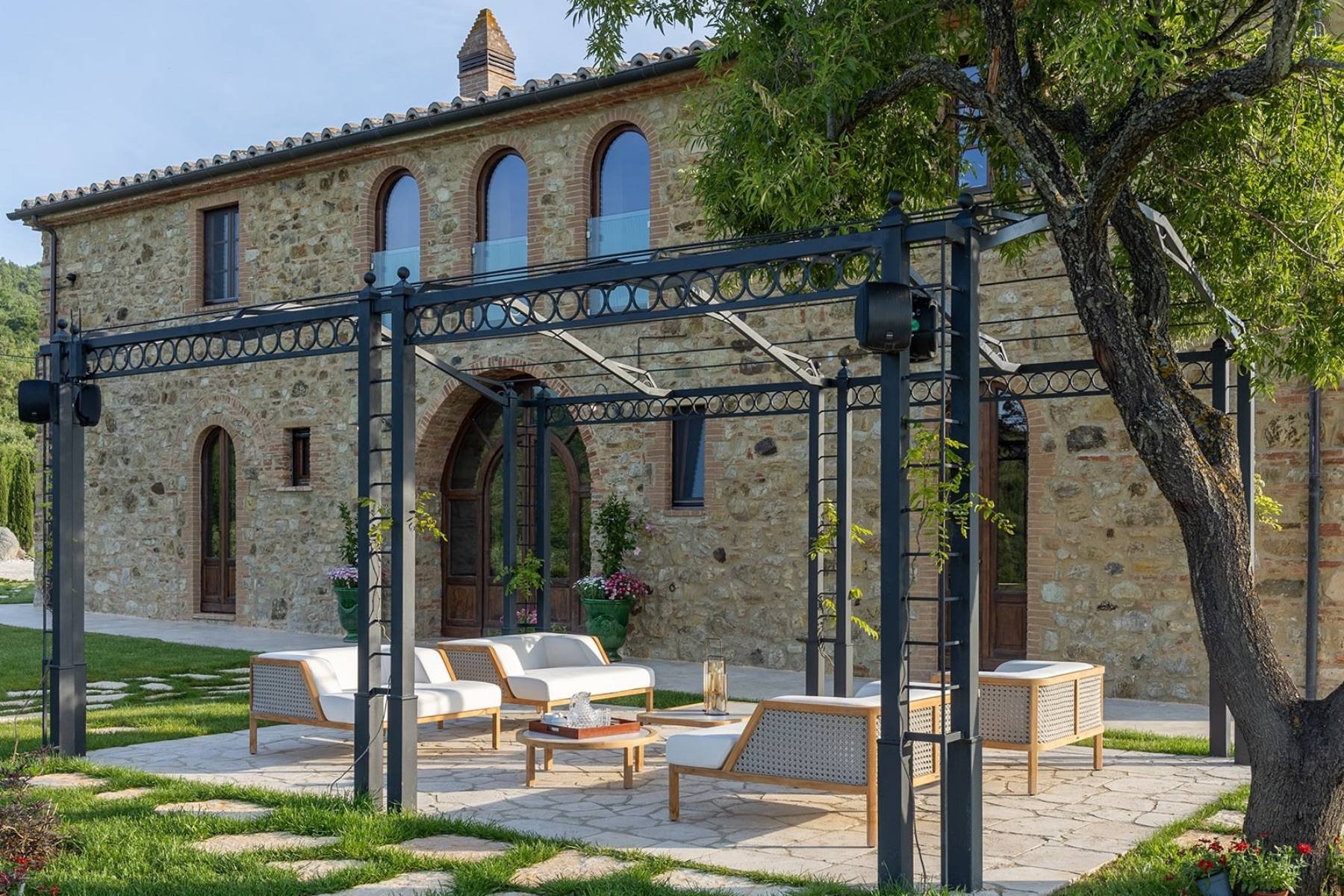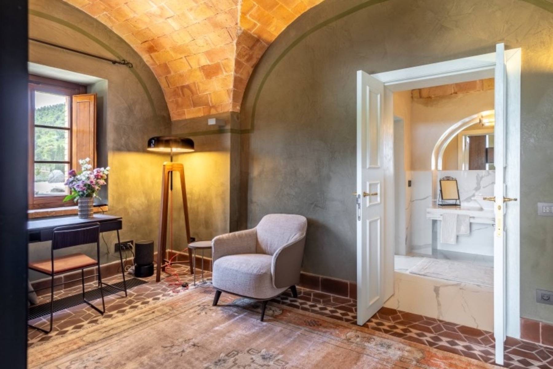 Dieser über 300 Jahre alte Palazzo wurde aufwendig und sorgfältig restauriert. Das Ergebnis ist die Luxus Villa Cardinale in Riparbella, die in einer Alleinlage in der hügeligen Landschaft der Toskana thront.