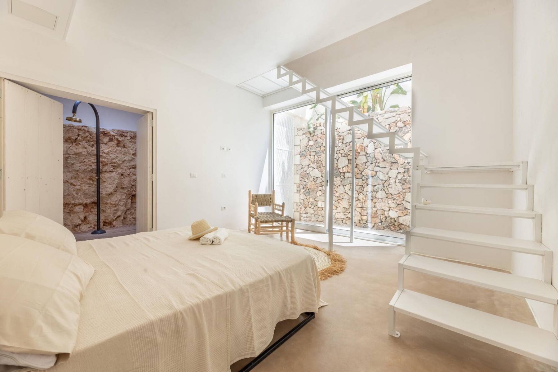 Im Schlafzimmer führt eine Treppe auf die Dachterrasse, auf der man auf den Loungemöbel unter dem Sonnensegel relaxen kann, oder den erlebnisreichen Urlaubstag im Whirlpool und einem Glas köstlichen italienischen Wein ausklingen lassen kann. Genießen Sie dabei ,wie die Sonne im Meer versinkt und den Himmel in faszinierende Farben verfärbt.