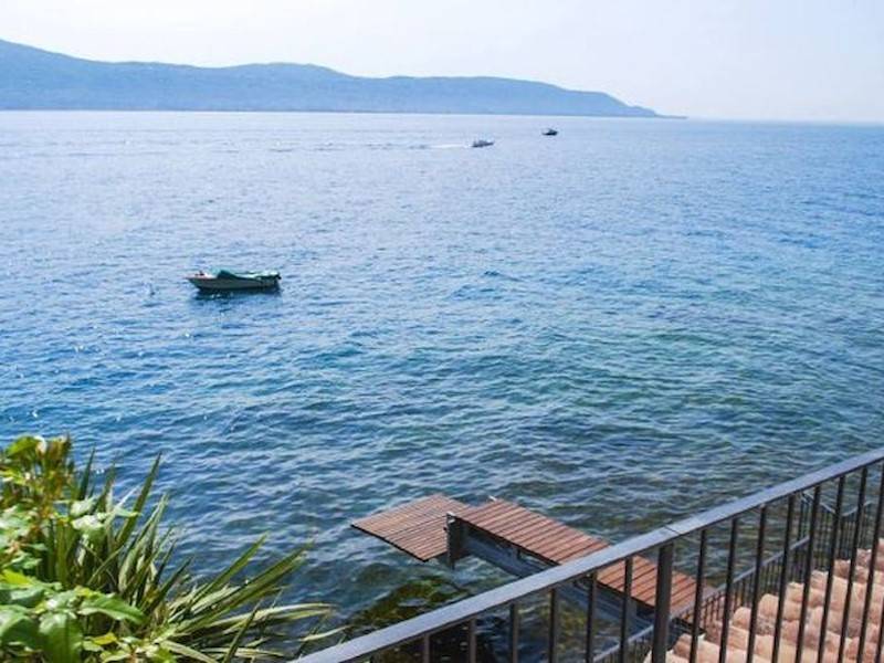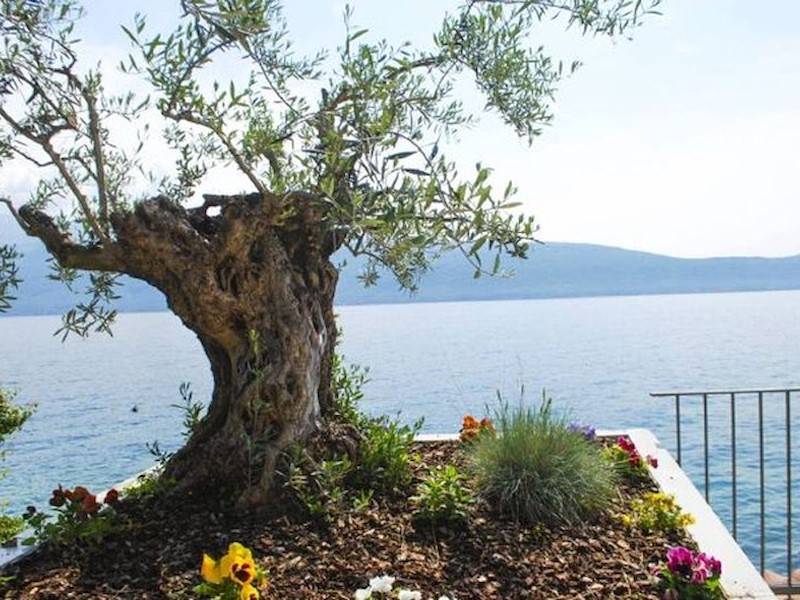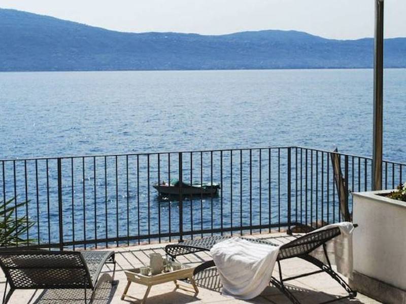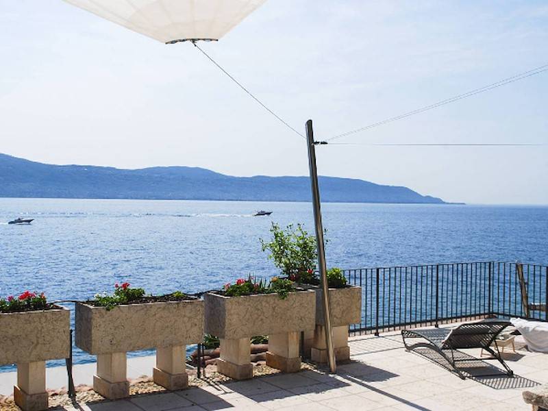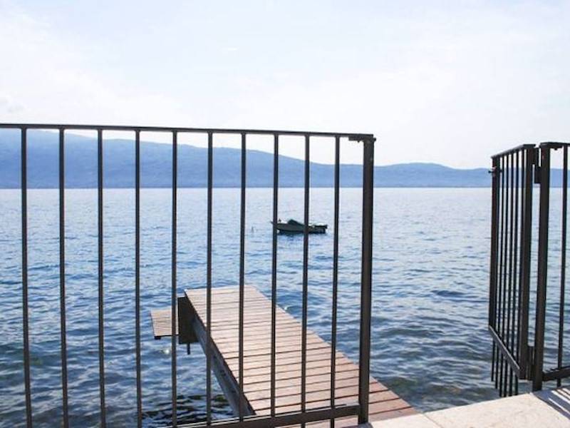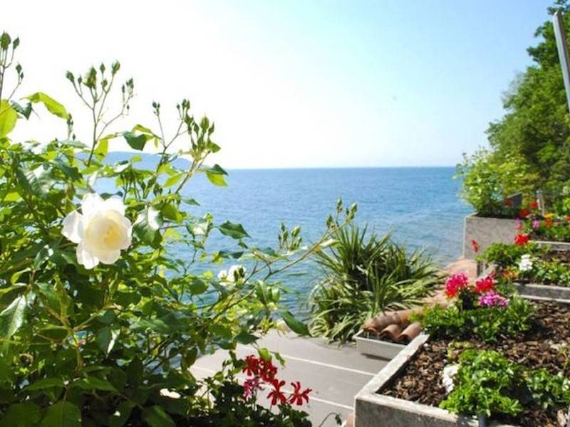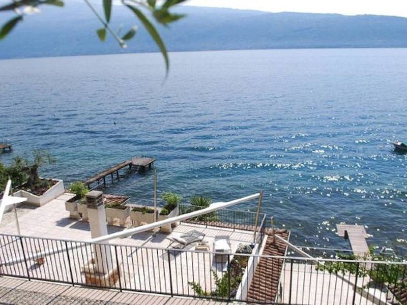 Exklusive Villa mit direktem Steg auf den Gardasee in Italien mit atemberaubendem Seeblick und wunderschöner großer Terrasse mit Außendusche