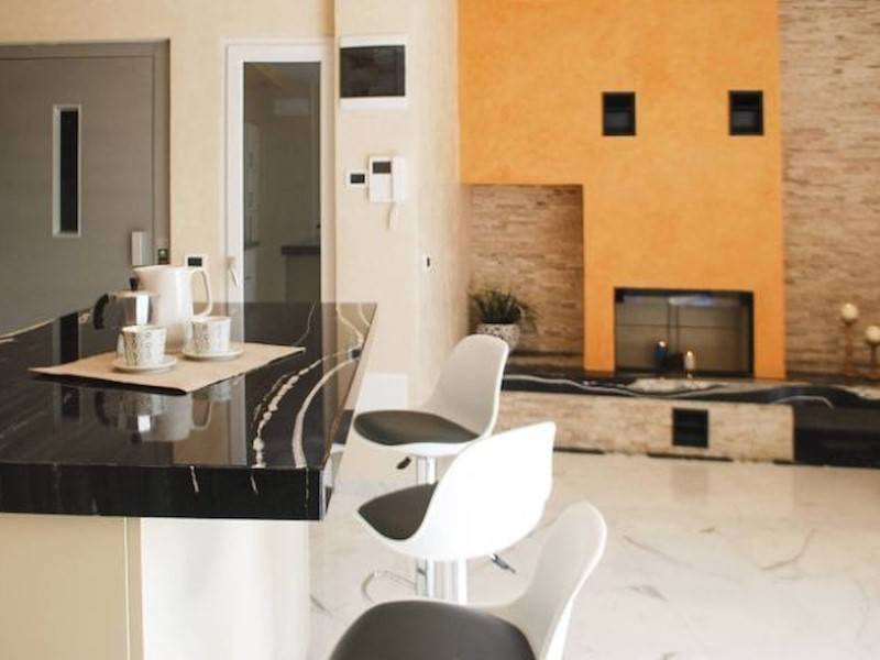 Zu den Annehmlichkeiten zählen 4-Flammen-Induktionsherd und Dunstabzugshaube, Mikrowelle, Backofen, Kühlschrank mit Gefrierfach, deutsche Kaffeemaschine, Wasserkocher, Toaster, Geschirrspüler, Waschmaschine, Heizung und Klimaanlage, Kamin, Sat-TV, WLAN, privater Zugang zu Pier, Lift, Bootsanlegemöglichkeit, Solarium mit Whirlpool.