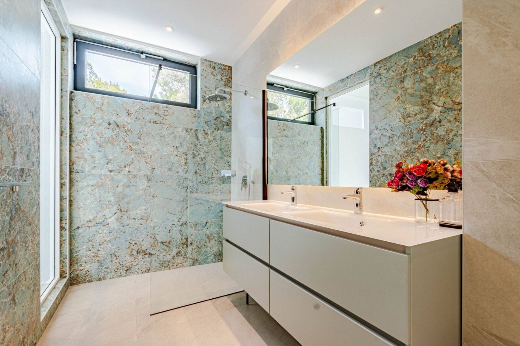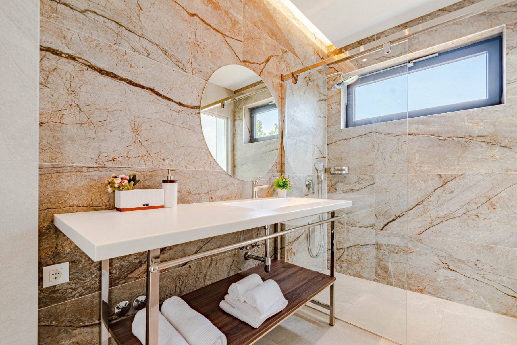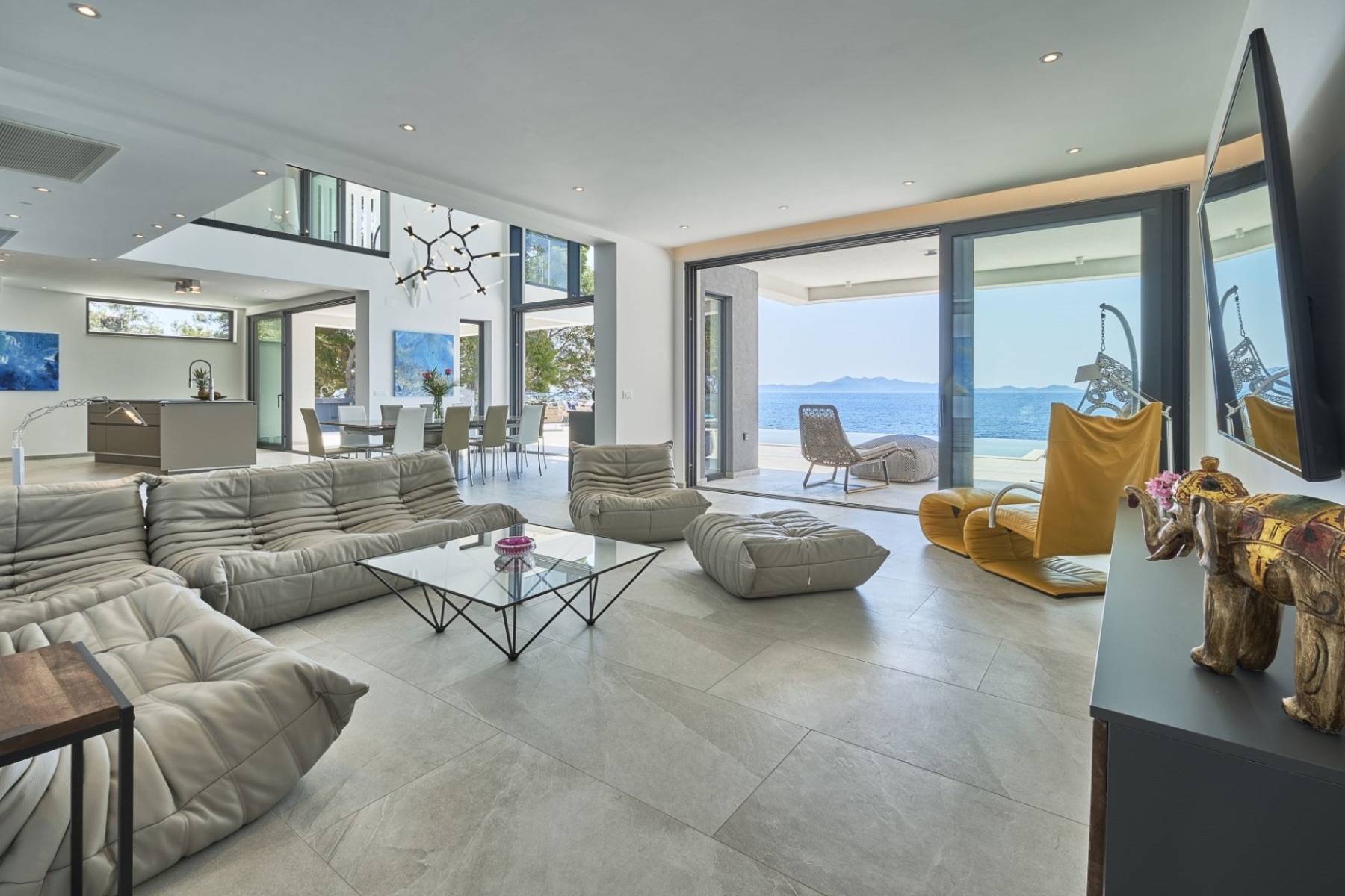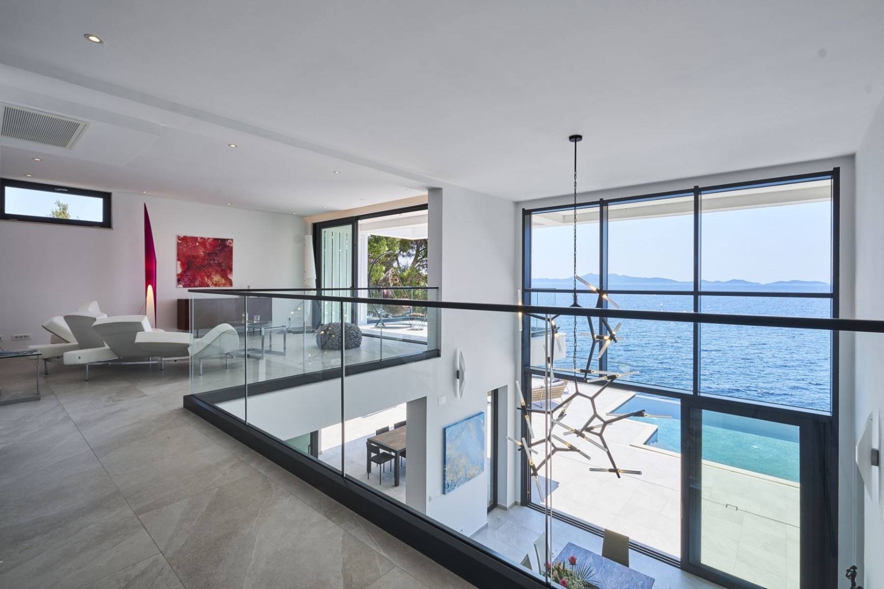 Die moderne Villa liegt inmitten von mediterranen Gärten und Pinienwäldern auf einem 1.000 qm großen Grundstück. Von der großen Terrasse mit Pool gelangt man über eine Treppe direkt an das Meer zum Privatstrand.