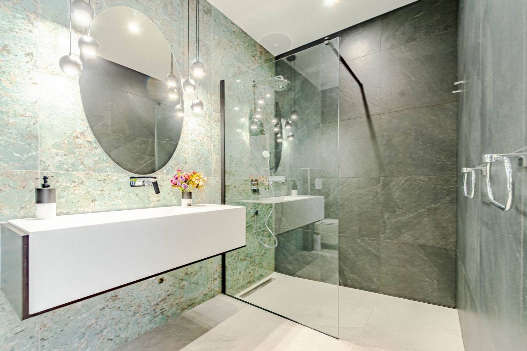 Fenster Fußbodenheizung Haartrockner Spiegel Walk- In- Dusche Waschbecken WC