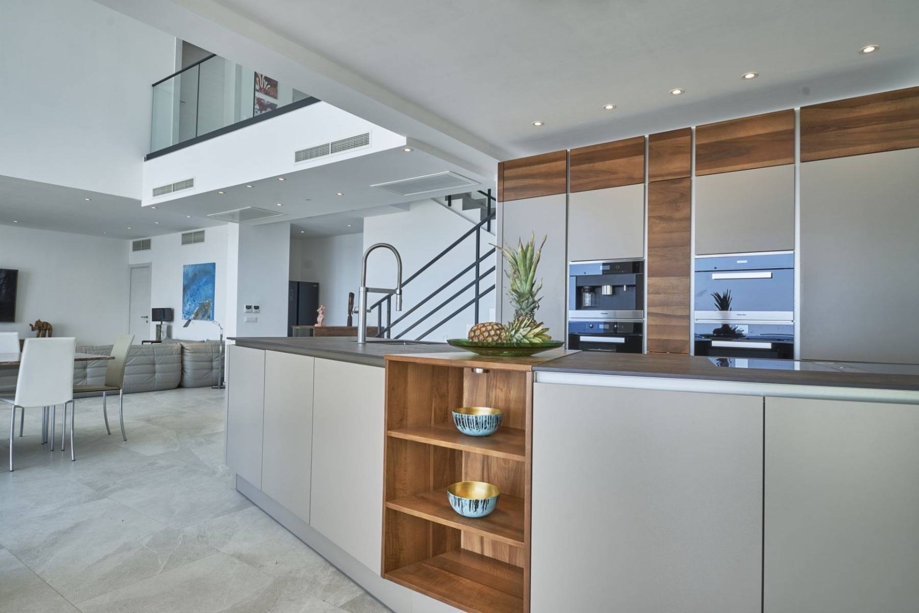 Backofen Dampfgarer Dunstabzug Ecksofa Esstisch Fenster Flatscreen Fußbodenheizung Geschirr & Besteck Geschirrspülmaschine Hifi- Anlage Hocker Induktionskochfeld Kaffeeautomat Klimaanlage Kochinsel Küchenutensilien Kühl- / Gefrierschrank Luxusküche Meerblick Mikrowelle Pfannen Sessel Stühle Terrassenzugang Toaster Töpfe